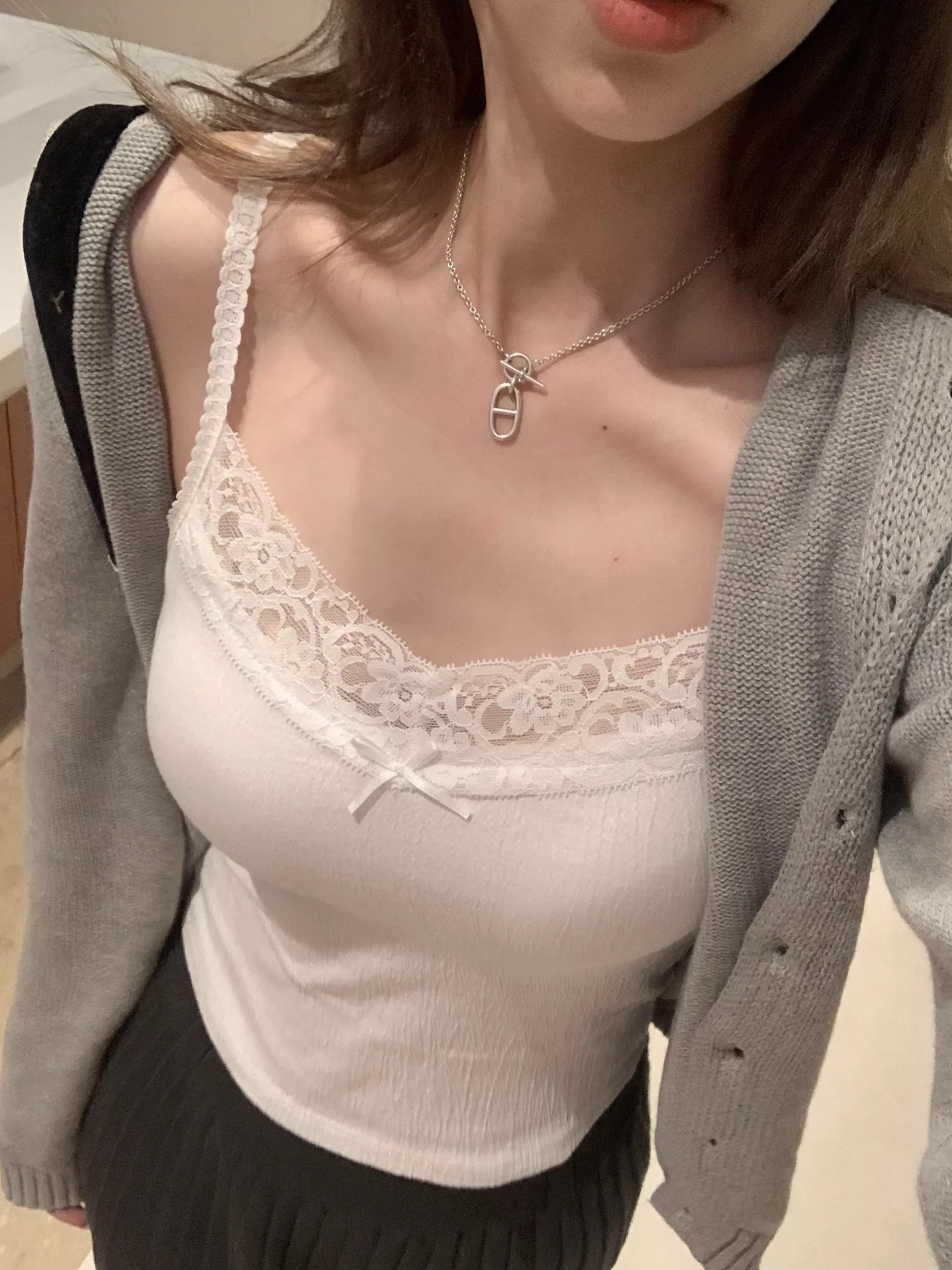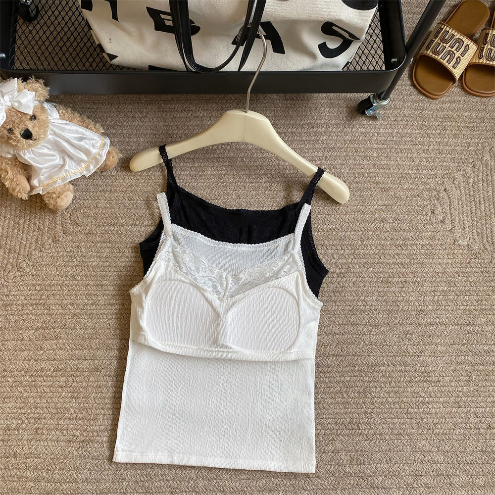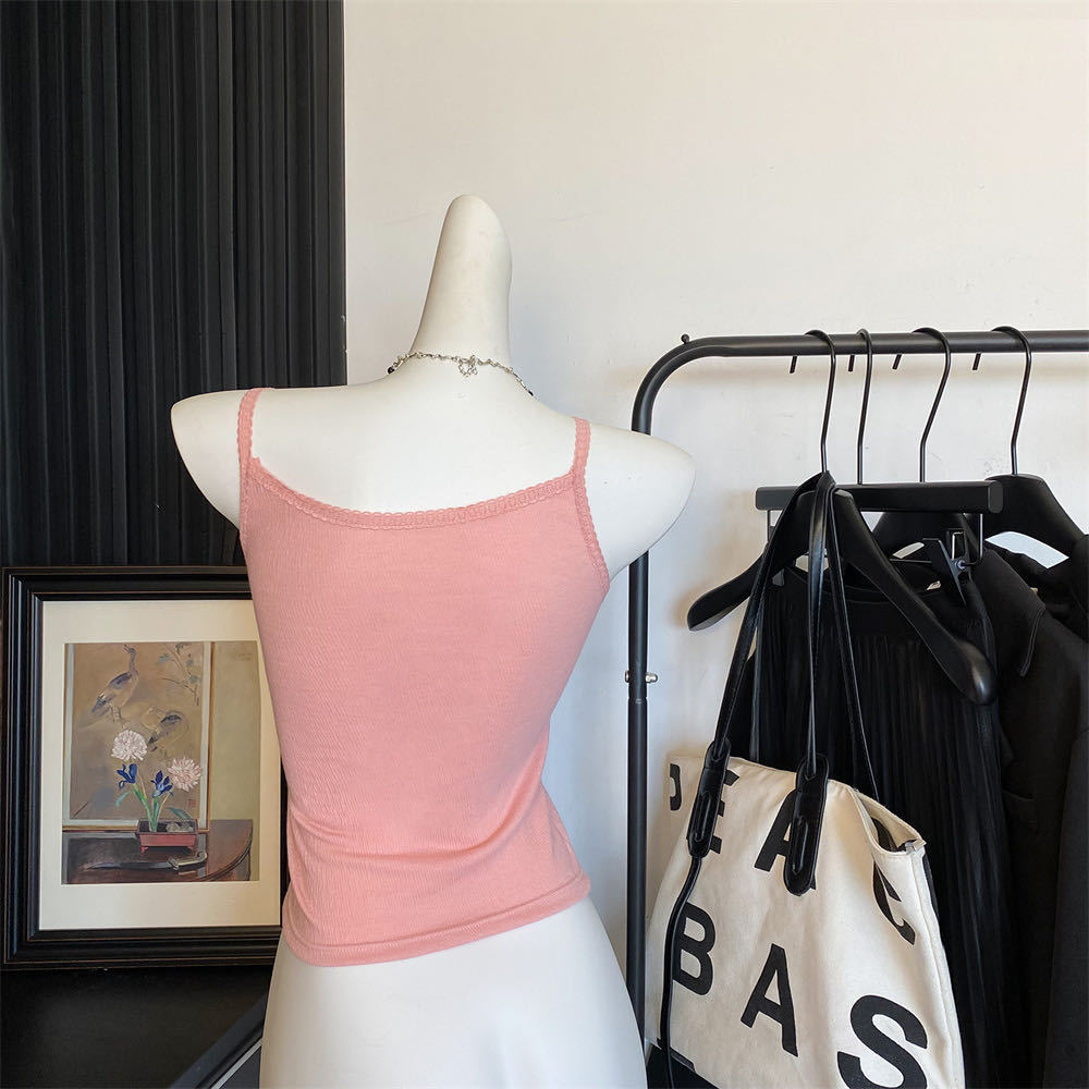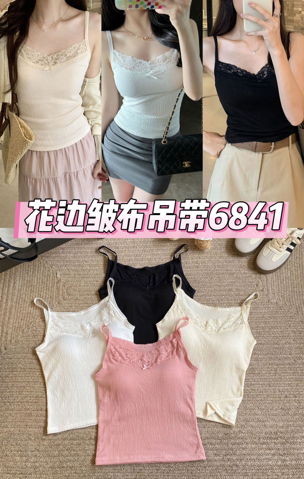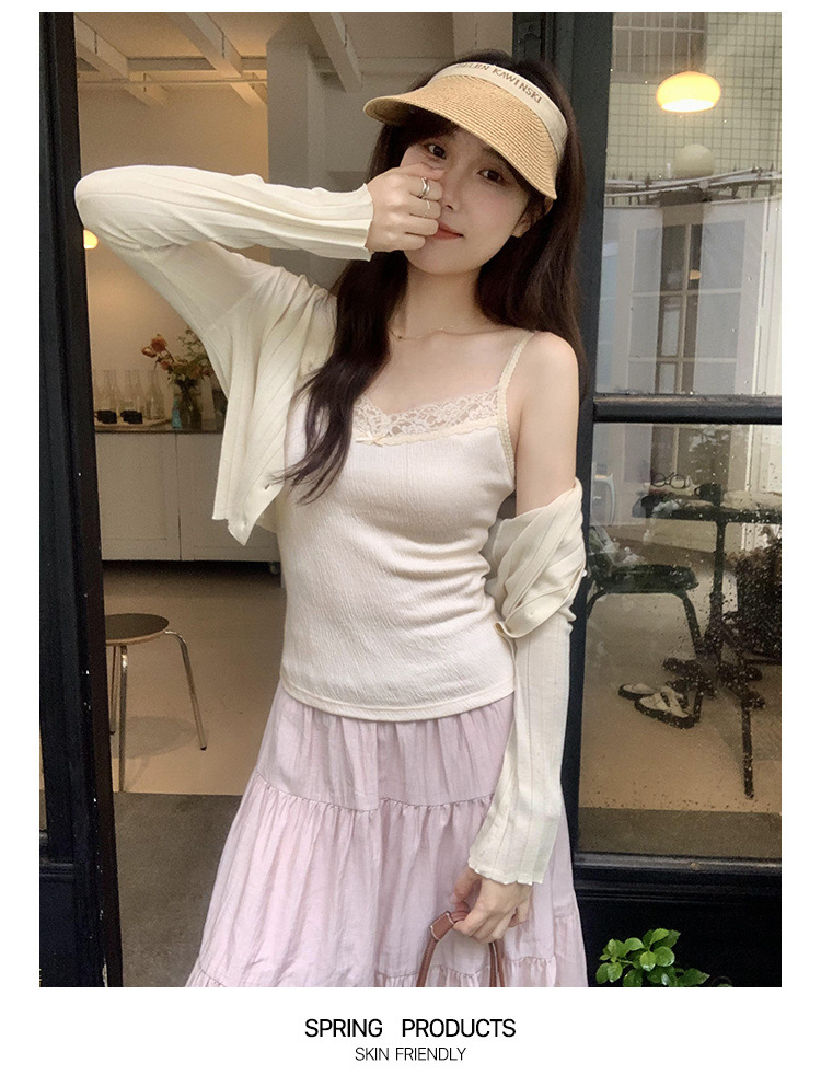 6841 # 프렌치 보우 레이스 카미 솔 퓨어 스위트 슬림 아우터 아름다운 뒷면 내부 쇼트 탑스토어 가기