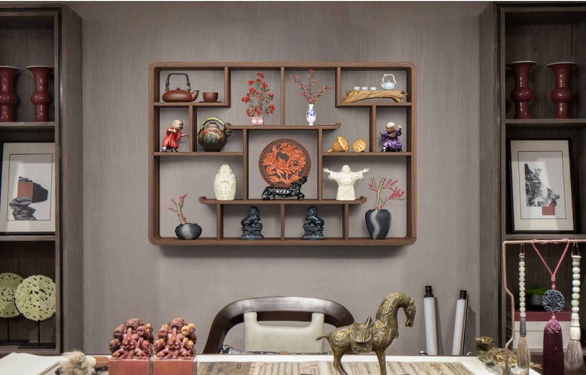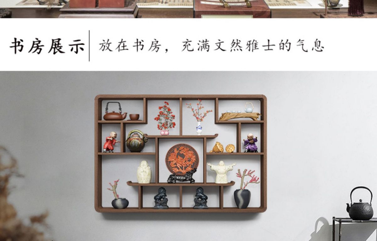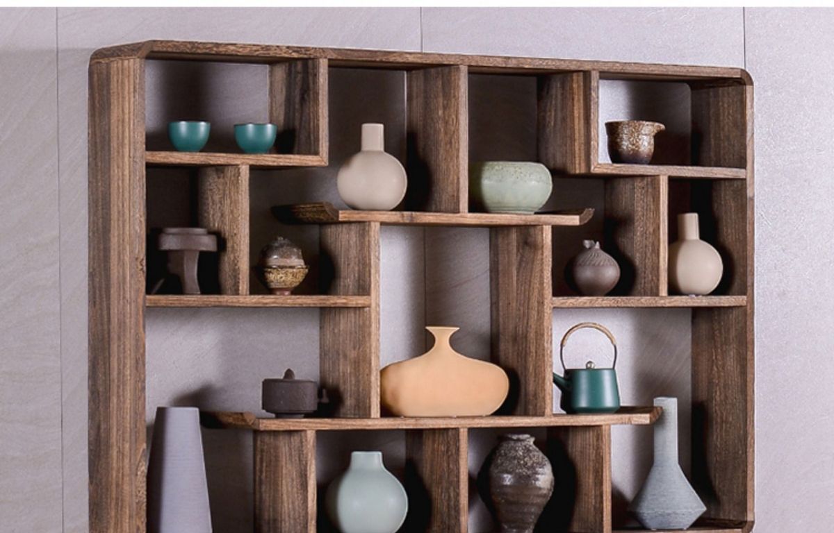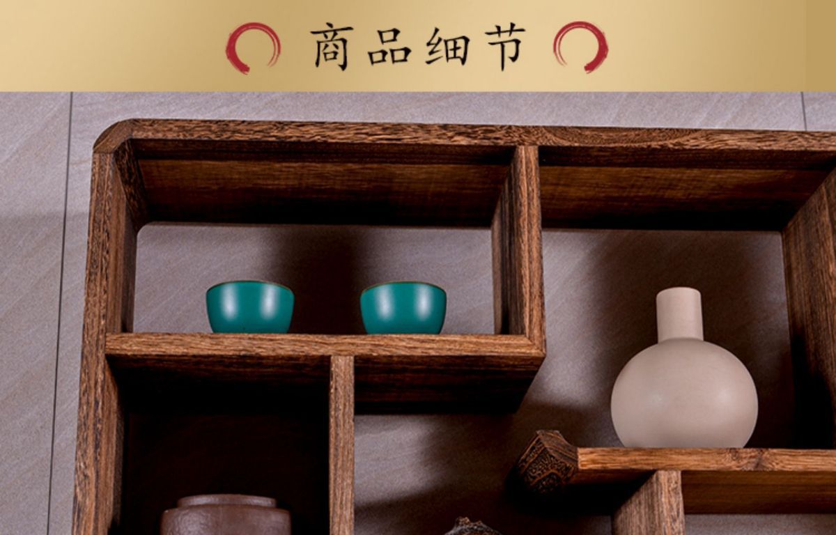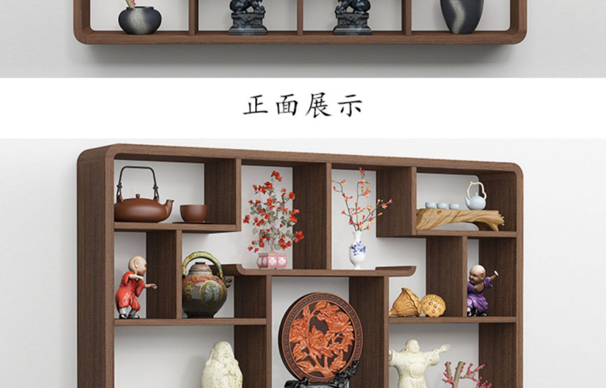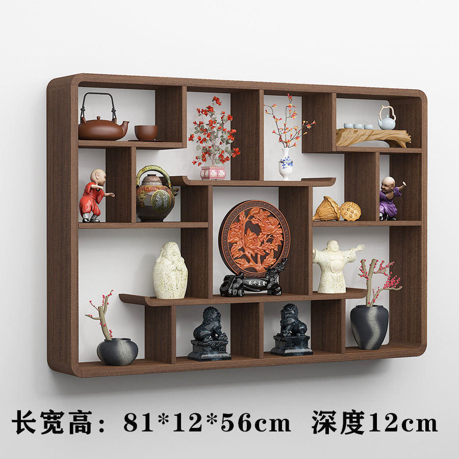 골동품 랙 솔리드 우드 새로운 중국 스타일 거실 파티션 벽 교수형 Duobao Pavilion 스토리지 랙 장식품 현대 벽 장착 차 랙