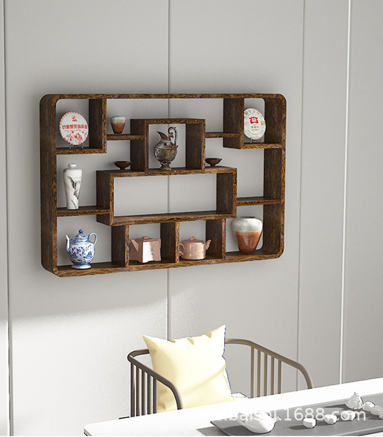 새로운 중국 스타일 순수 솔리드 우드 골동품 랙 벽걸이 형 Duobao Pavilion 스토리지 랙 연구 다방 골동품 디스플레이 랙 골동품 랙