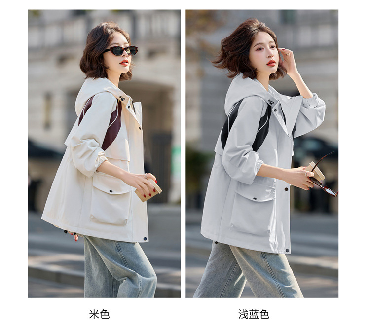 봄과 가을 2025 새로운 허리 후드 스톰 트루퍼 여성의 겨울 새로운 느슨한 중간 길이의 재킷 코트