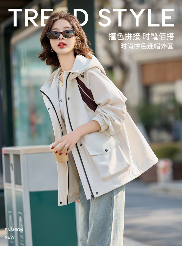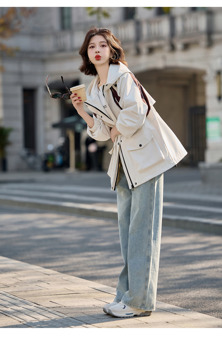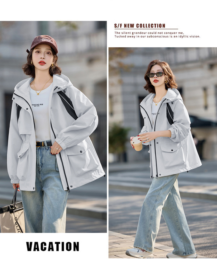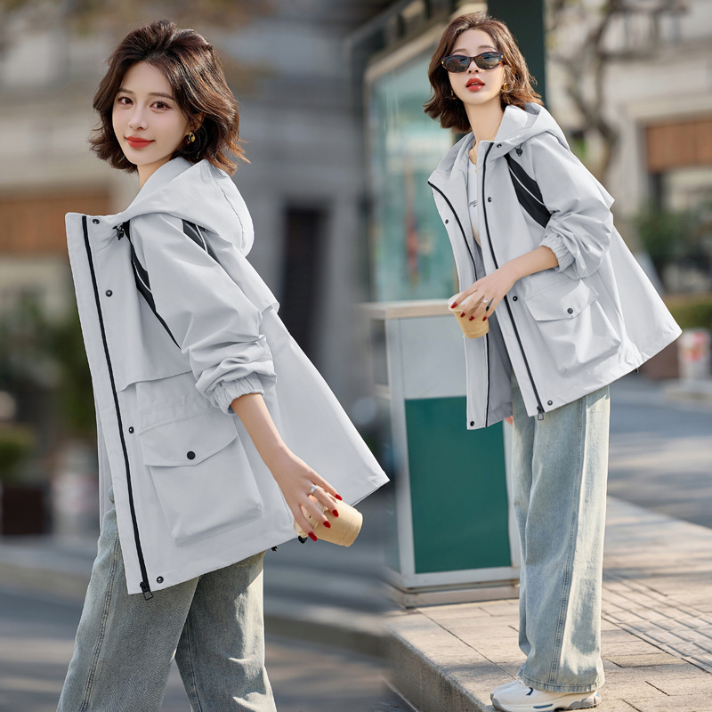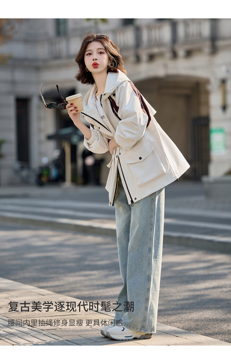 봄과 가을 2025 새로운 허리 후드 스톰 트루퍼 여성의 겨울 새로운 느슨한 중간 길이의 재킷 코트스토어 가기