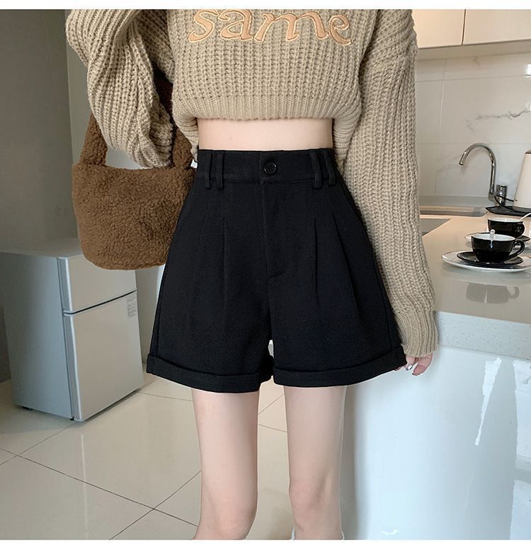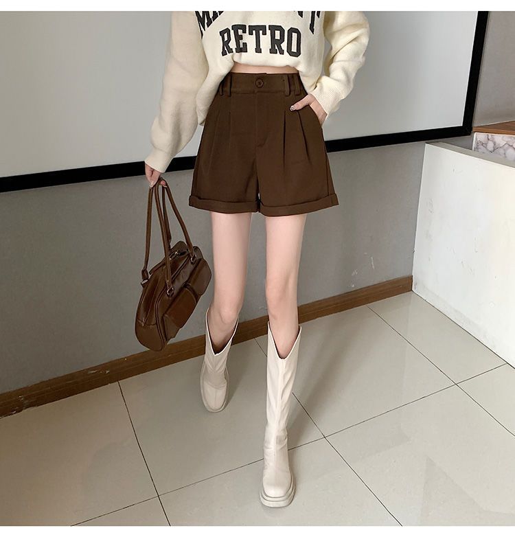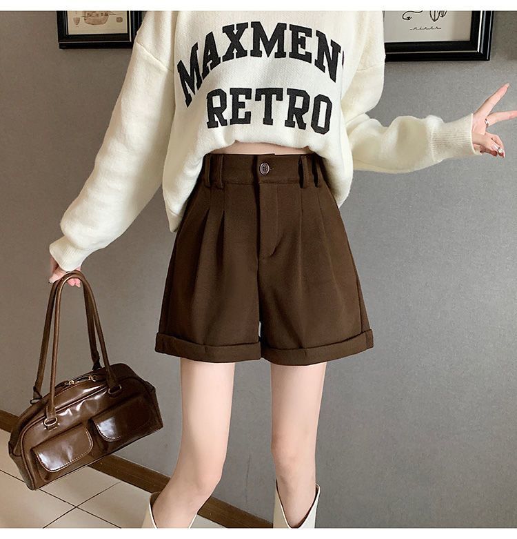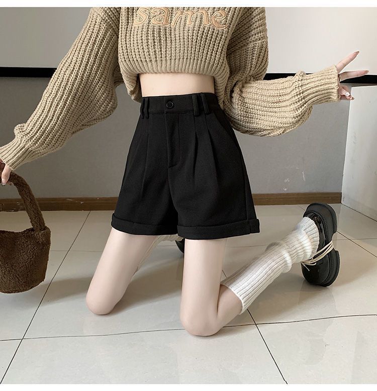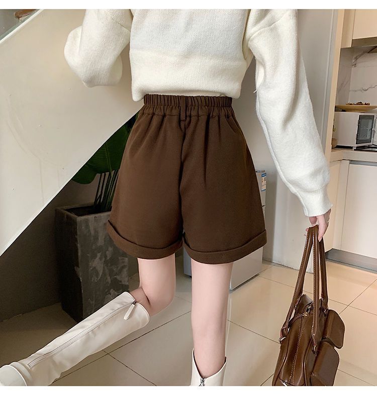 가을과 겨울 두꺼운 캐주얼 컬 반바지 여성 2025 일본 새로운 슬림 A 라인 와이드 레그 바지 학생 올 매치 부츠 바지