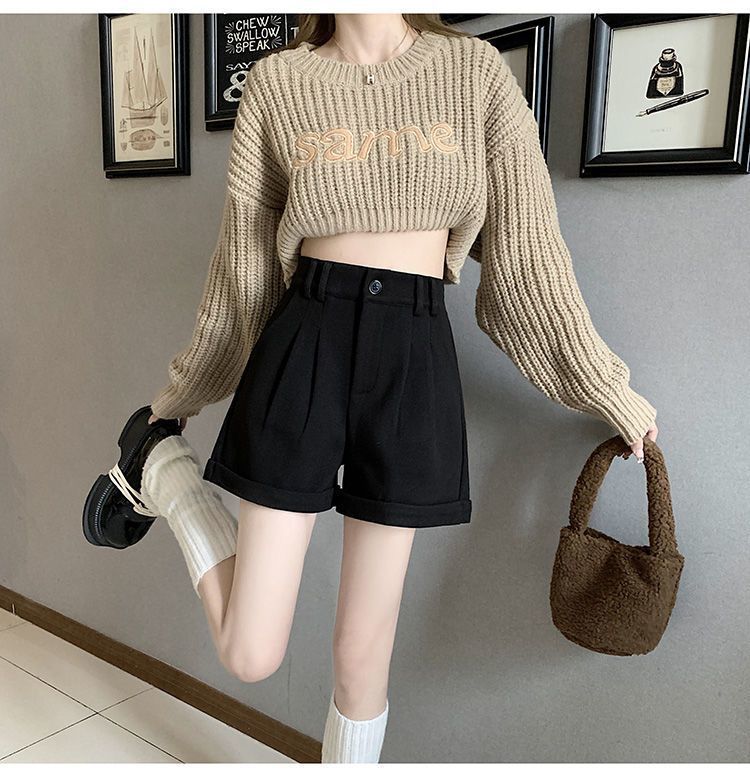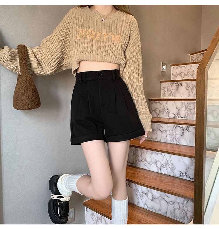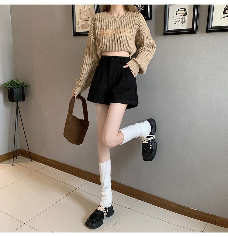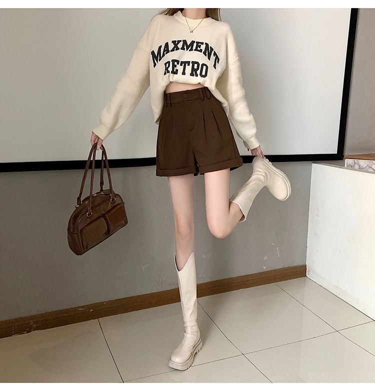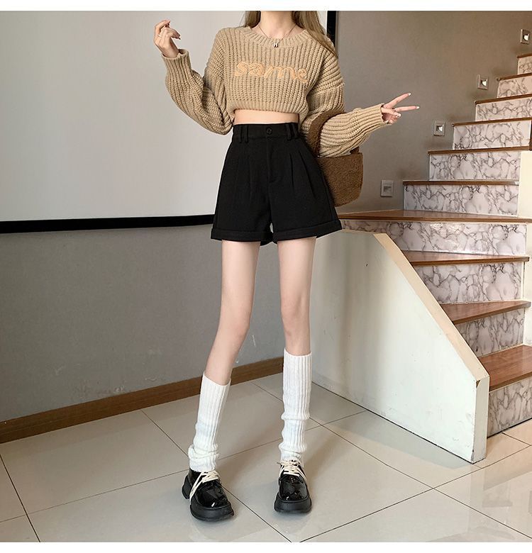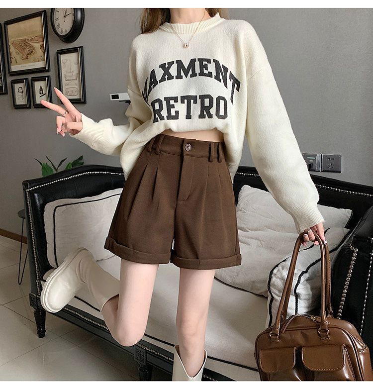 가을과 겨울 두꺼운 캐주얼 컬 반바지 여성 2025 일본 새로운 슬림 A 라인 와이드 레그 바지 학생 올 매치 부츠 바지