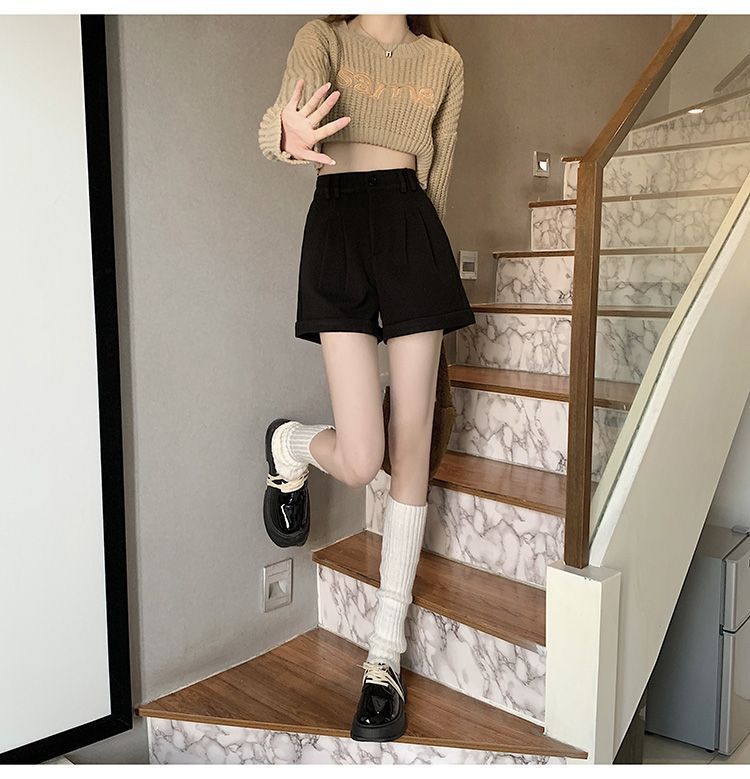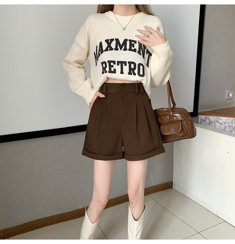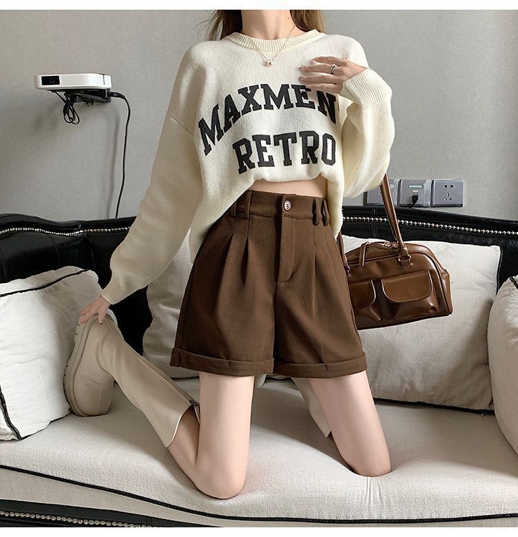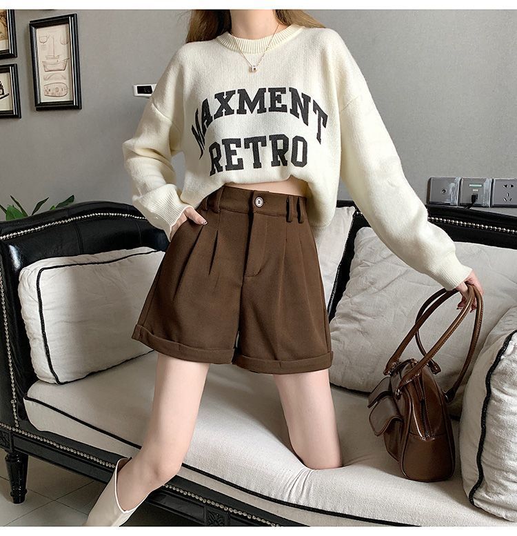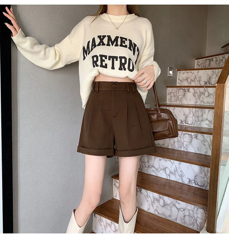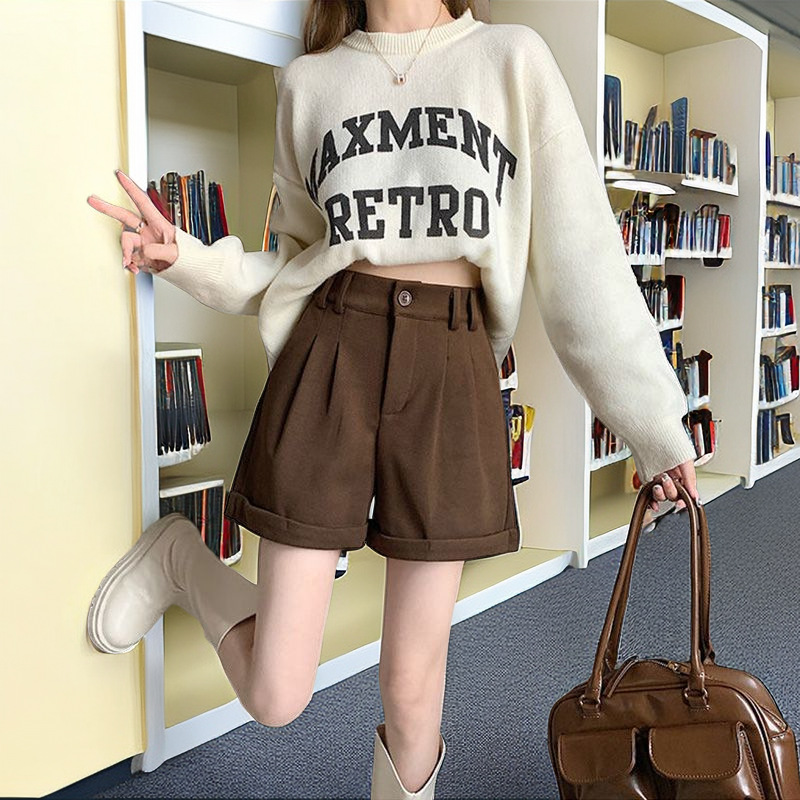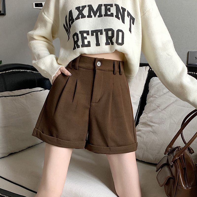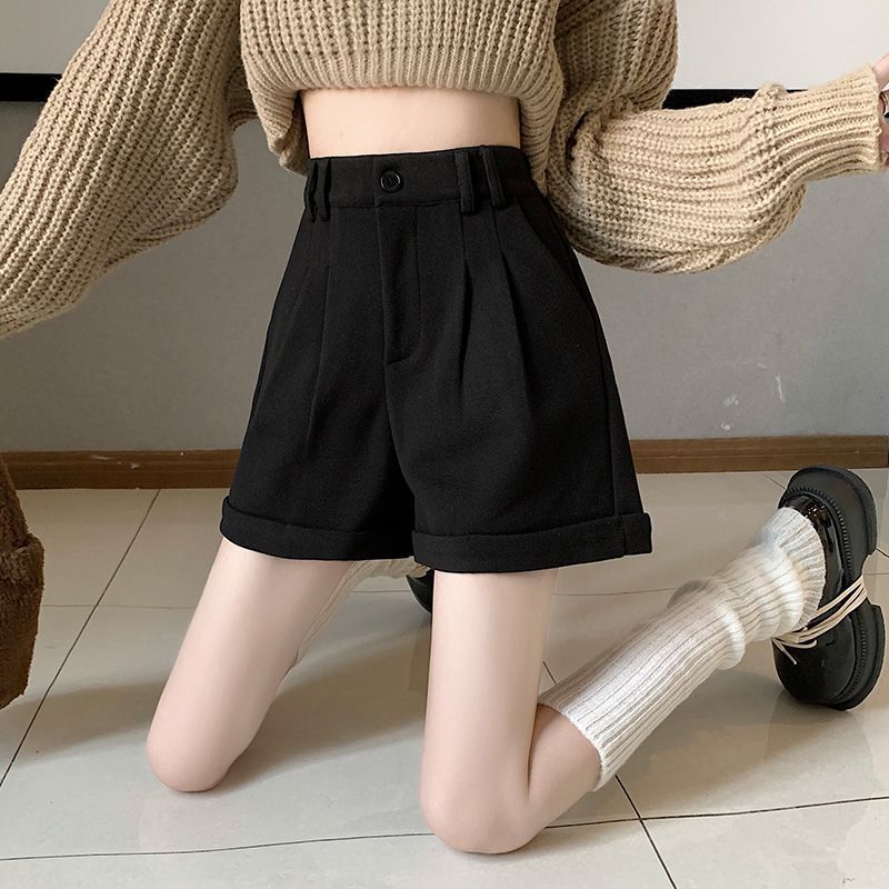 가을과 겨울 두꺼운 캐주얼 컬 반바지 여성 2025 일본 새로운 슬림 A 라인 와이드 레그 바지 학생 올 매치 부츠 바지스토어 가기