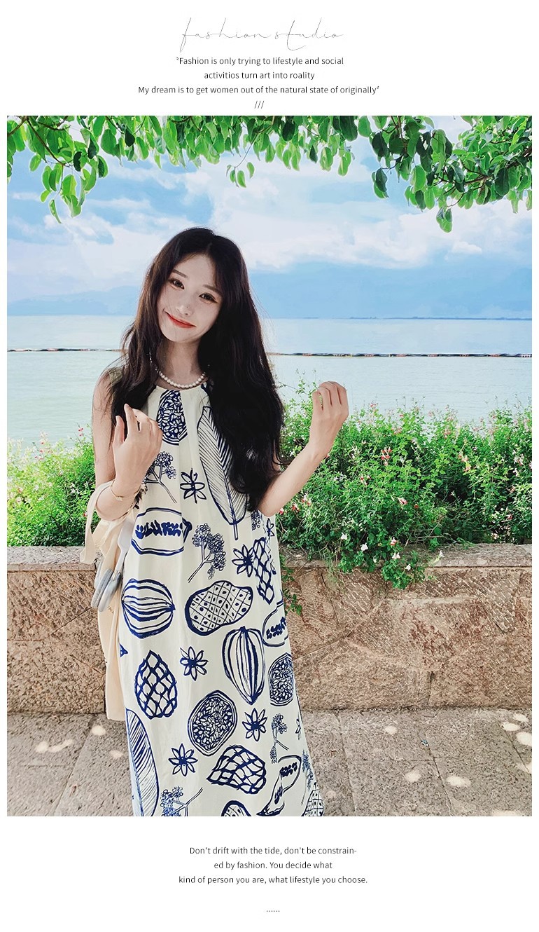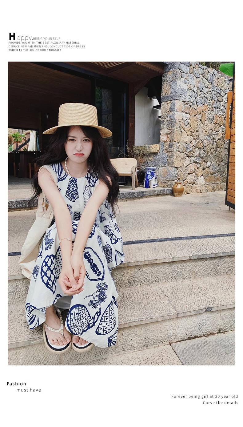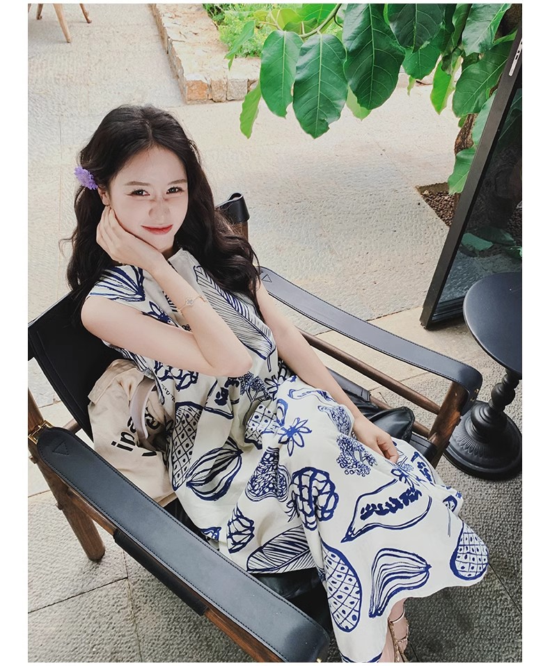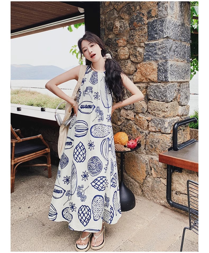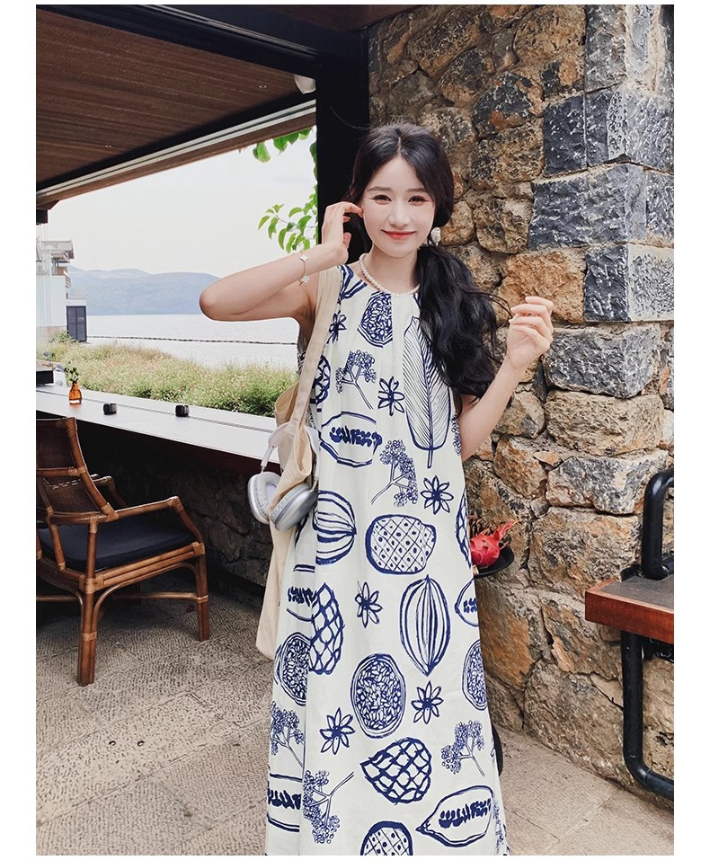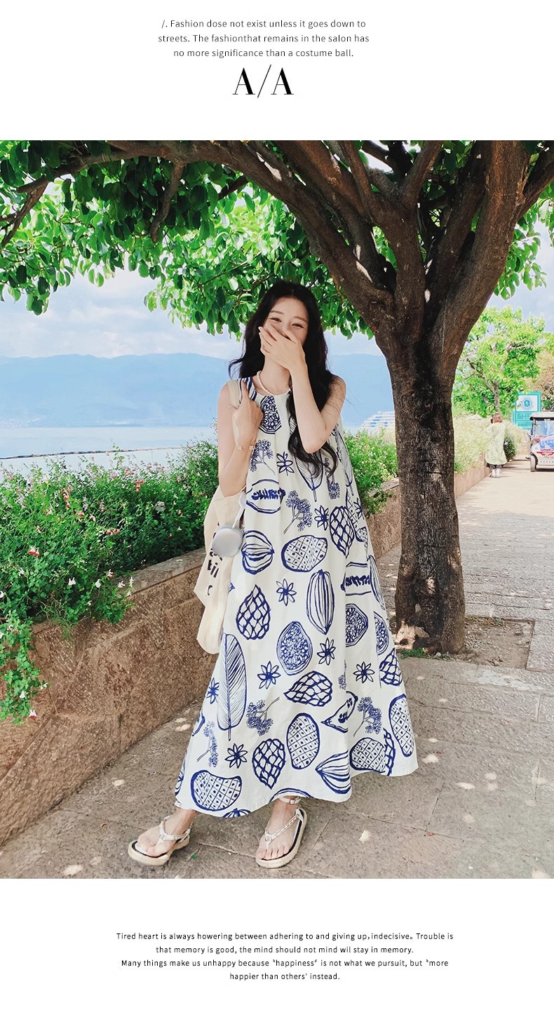 디자인 센스 인쇄 조끼 원피스 여성 여름 2025 새로운 해변 휴가 느슨한 슬리밍 우아한 긴 원피스스토어 가기