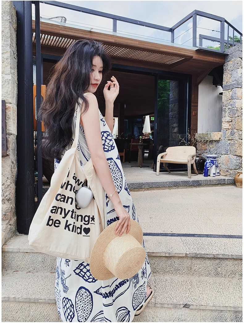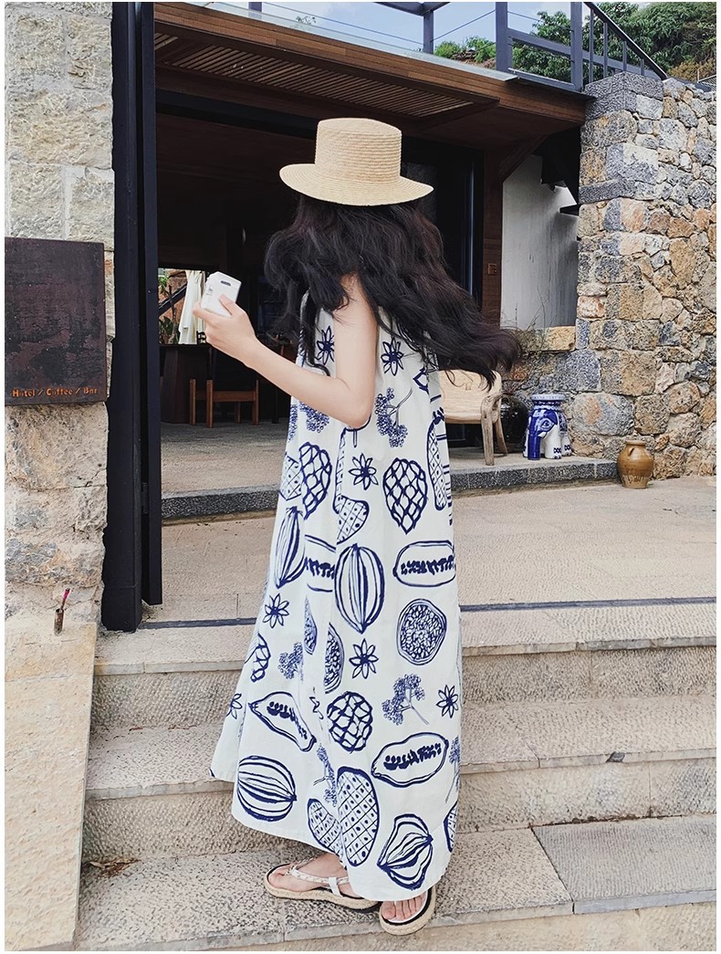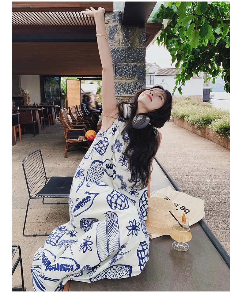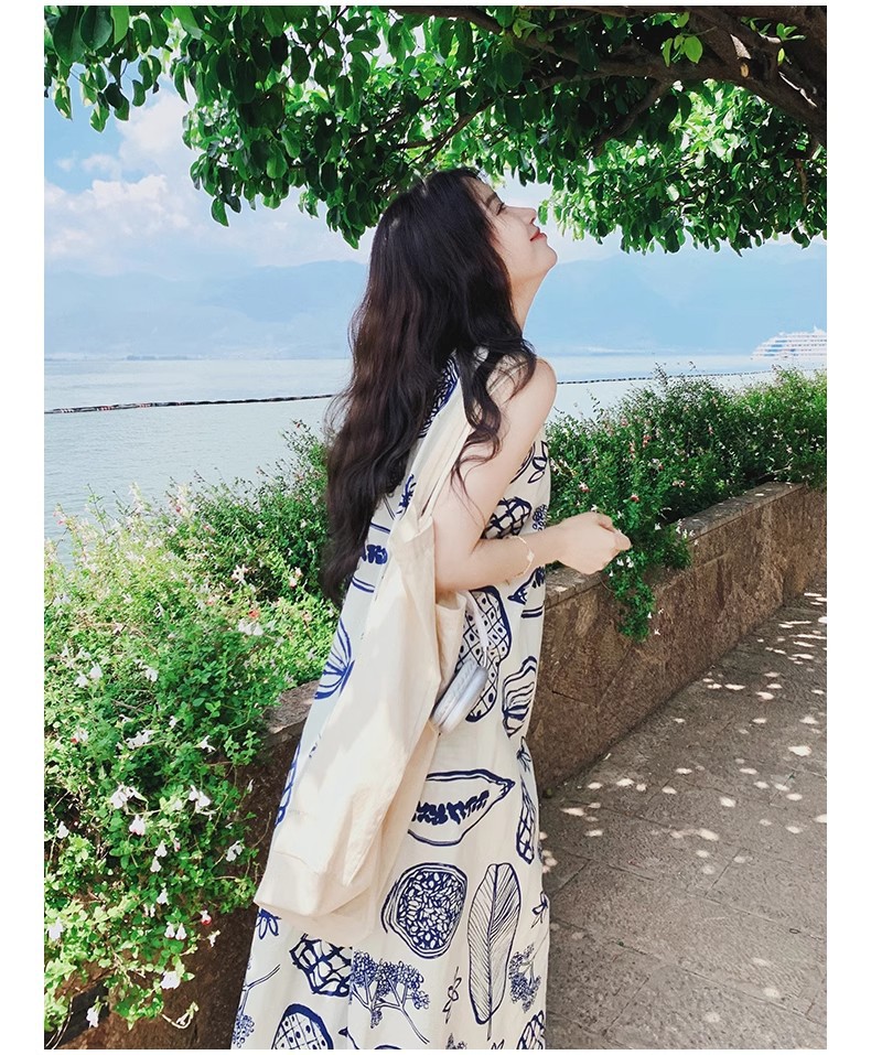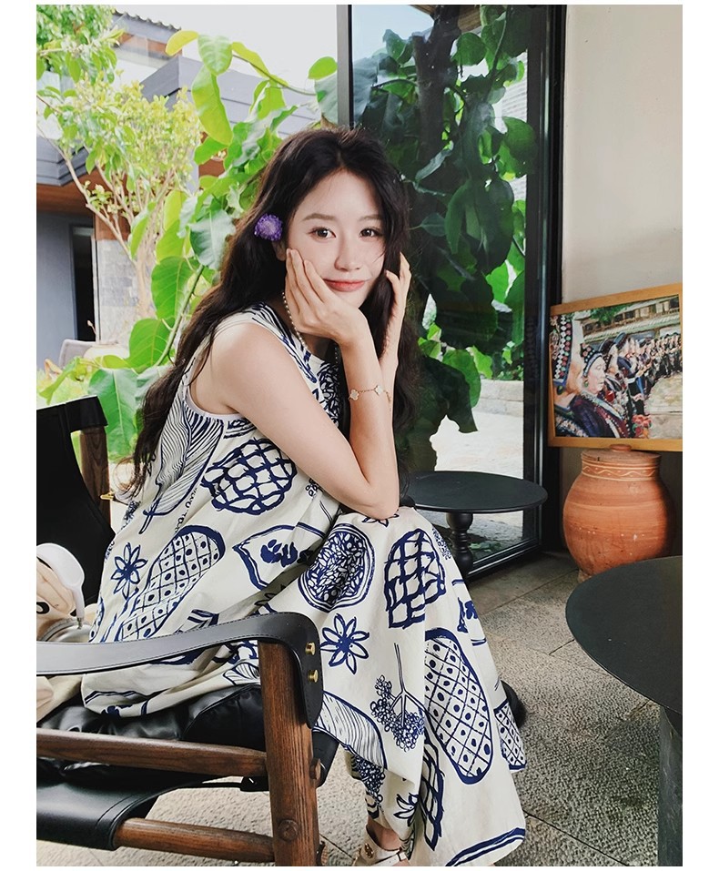 디자인 센스 인쇄 조끼 원피스 여성 여름 2025 새로운 해변 휴가 느슨한 슬리밍 우아한 긴 원피스