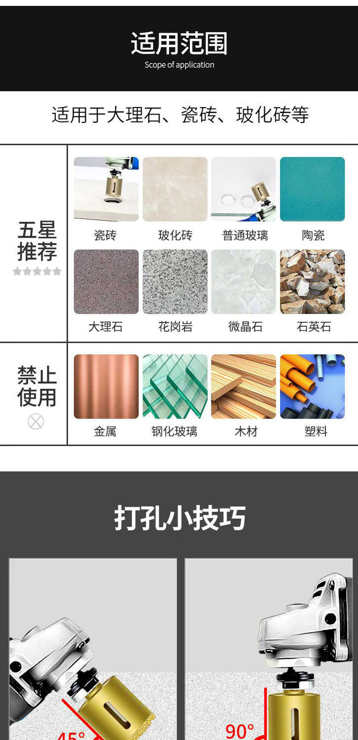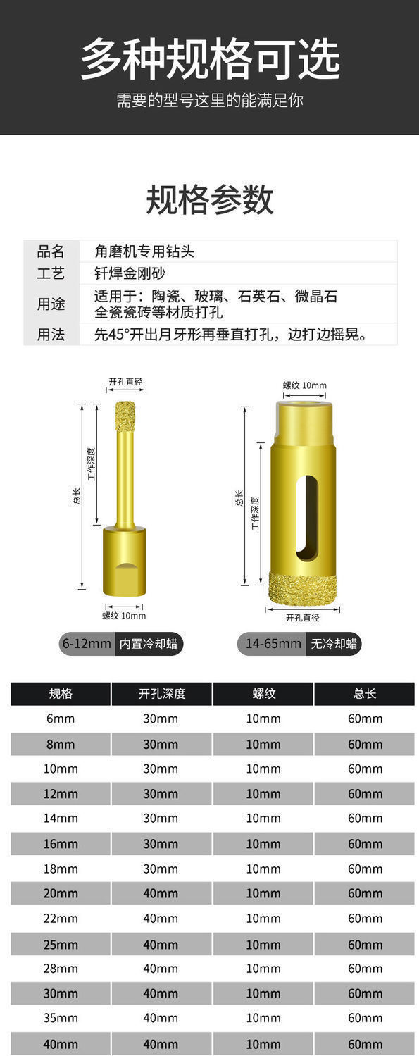 앵글 그라인더 드라이 드릴 비트 모든 세라믹 타일 유리화 벽돌 화강암 돌 구멍 드릴링 다이아몬드 납땜 구멍 오프너