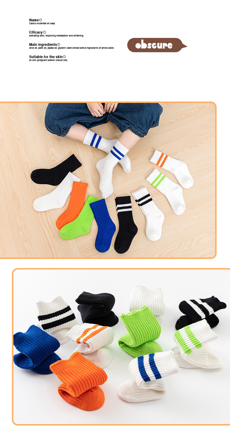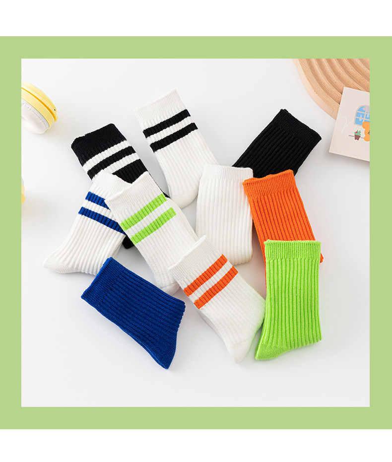 어린이 양말 봄과 가을 캔디 컬러 튜브 양말 대학 스타일 2 바 통기성 면 양말 소년과 소녀 스포츠 스타킹스토어 가기