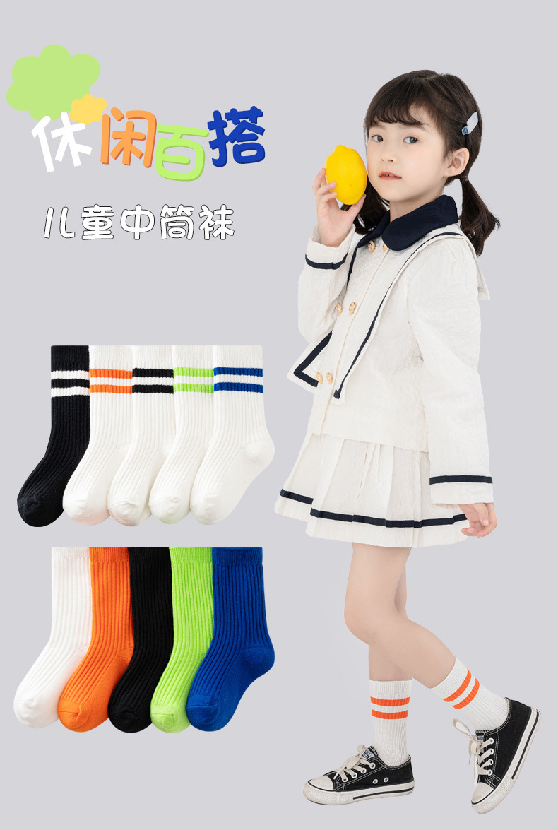 어린이 양말 봄과 가을 캔디 컬러 튜브 양말 대학 스타일 2 바 통기성 면 양말 소년과 소녀 스포츠 스타킹