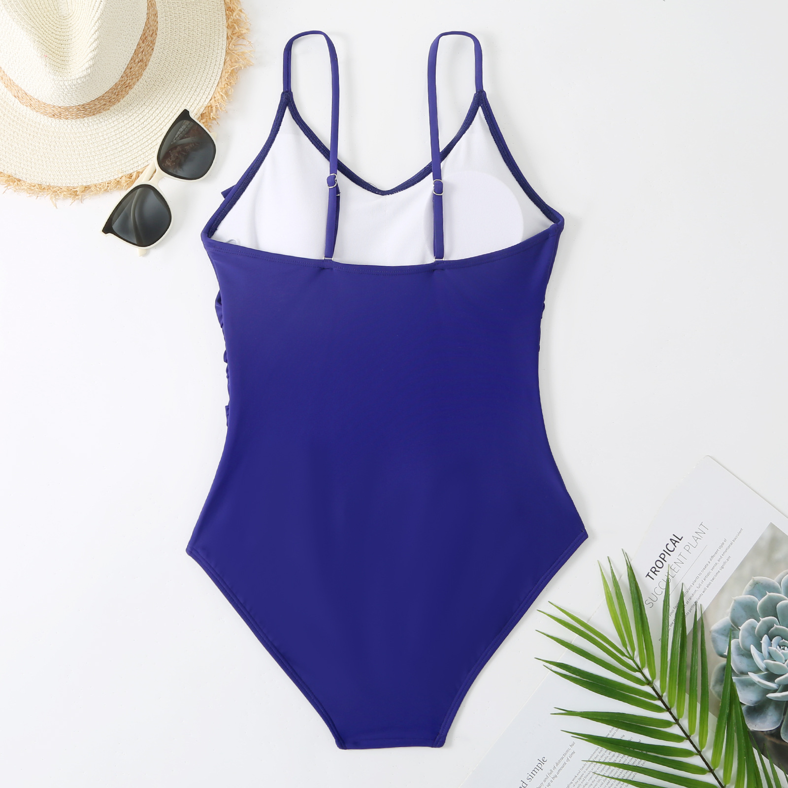 2025 새로운 패션 유럽과 미국의 대외 무역 수영복 주름 한 조각 그물 붉은 단색 보수적 인 수영복 재고 도매스토어 가기