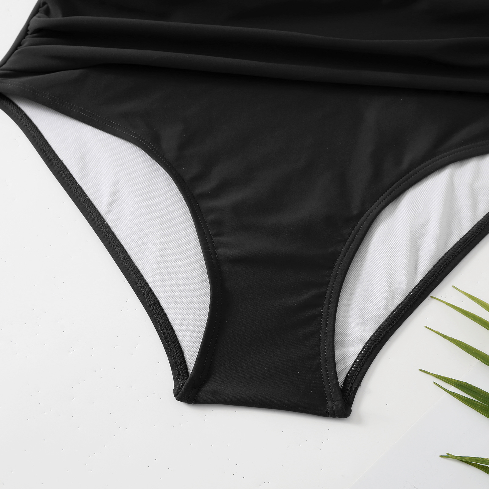 2025 새로운 패션 유럽과 미국의 대외 무역 수영복 주름 한 조각 그물 붉은 단색 보수적 인 수영복 재고 도매