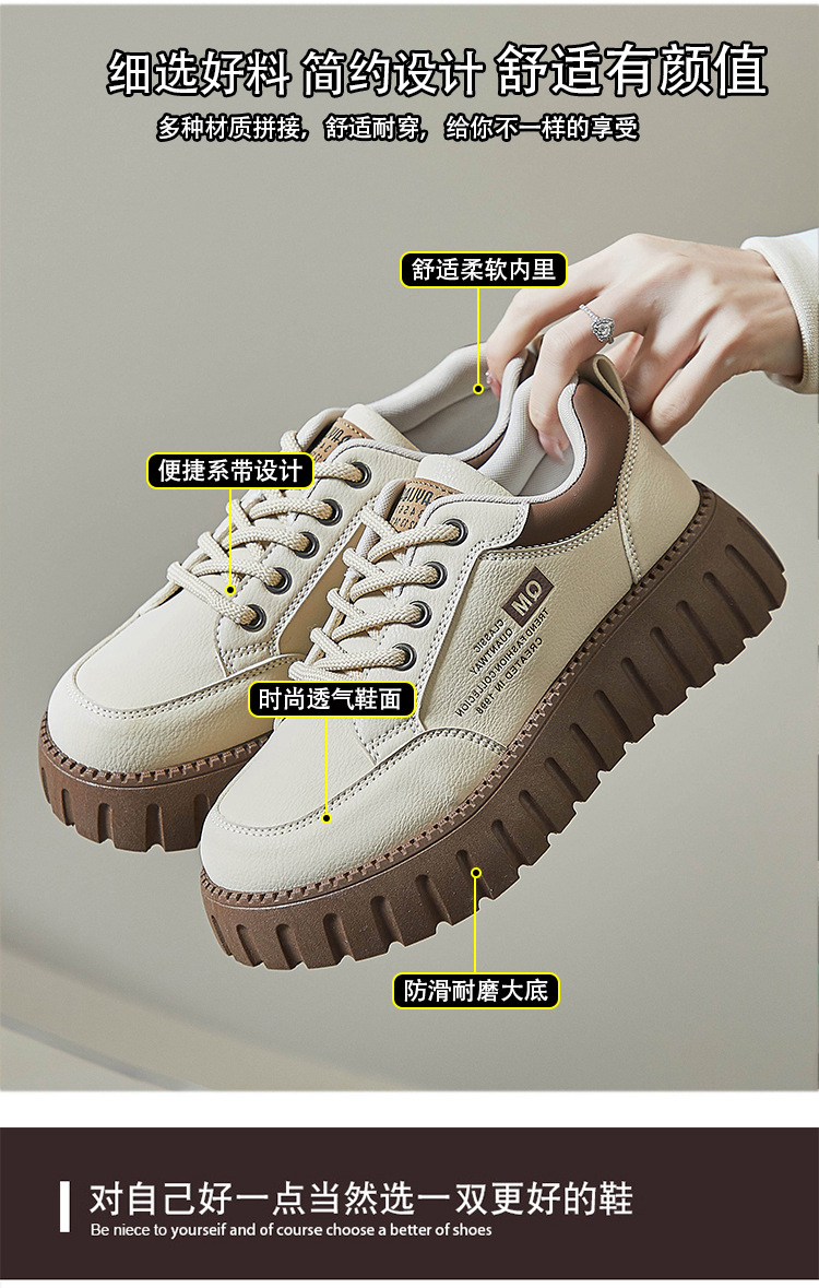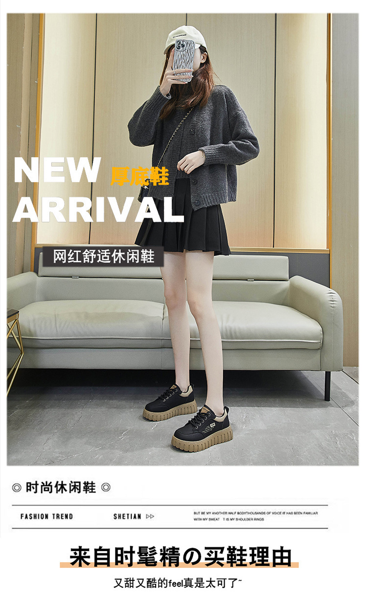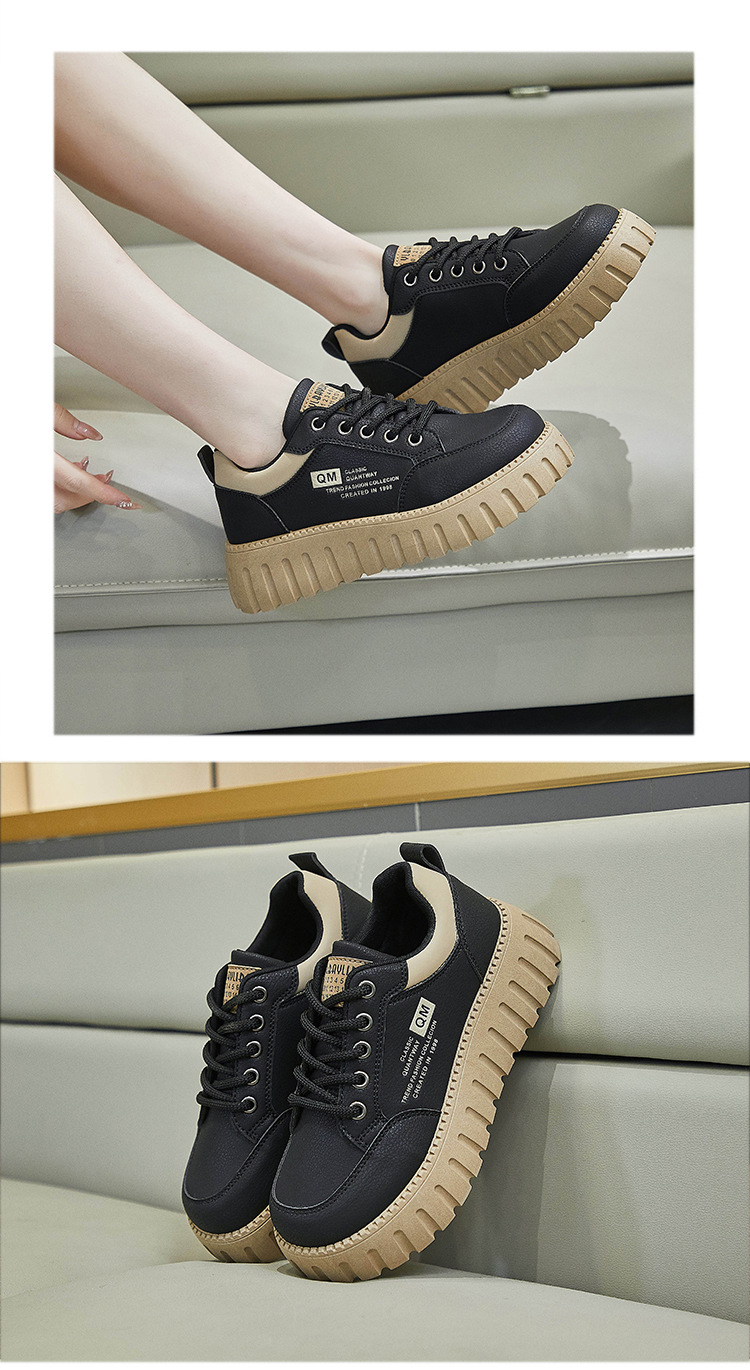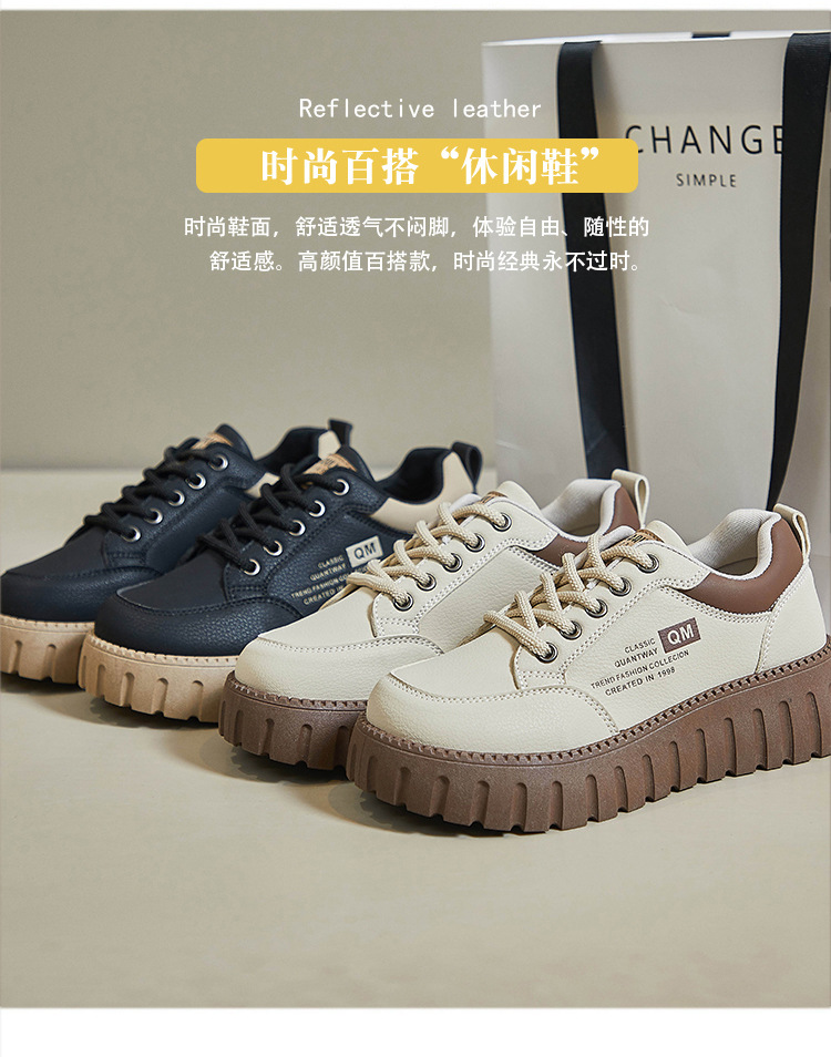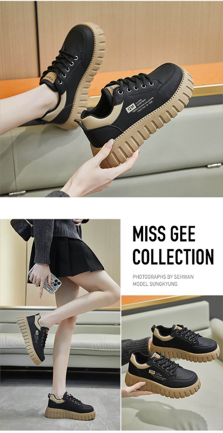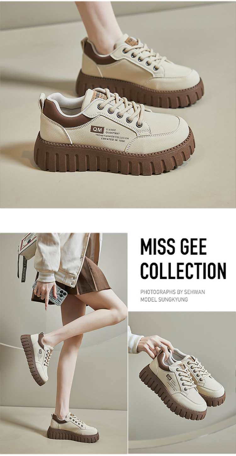 2025 봄 작은 흰색 신발 새로운 한국 스타일 여학생 두꺼운 밑창 높이 증가 스포츠 스케이트 신발 캐주얼 신발 XX-229