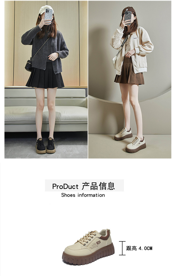 2025 봄 작은 흰색 신발 새로운 한국 스타일 여학생 두꺼운 밑창 높이 증가 스포츠 스케이트 신발 캐주얼 신발 XX-229스토어 가기