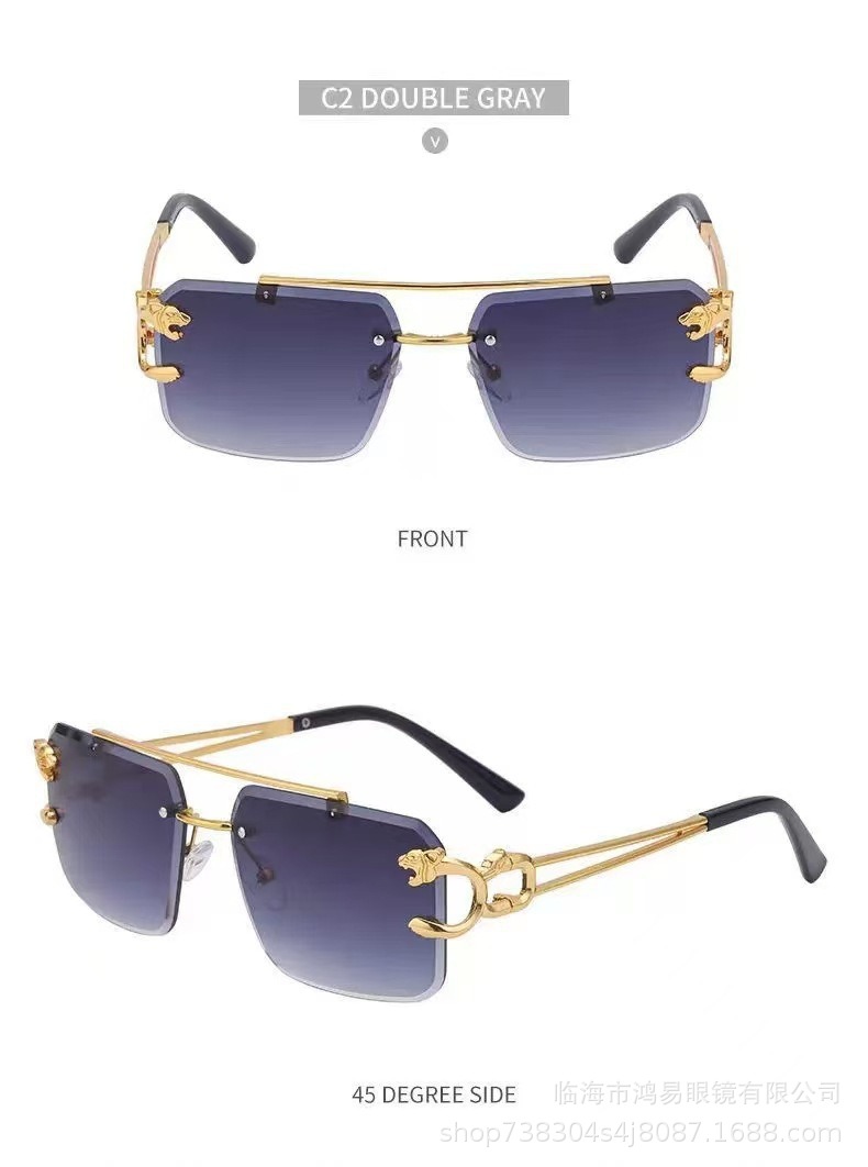 남성과 여성을위한 스퀘어 컷 엣지 더블 빔 레오파드 헤드 선글라스 자외선 보호 선글라스 유행 선글라스 남성의 고급 감각스토어 가기
