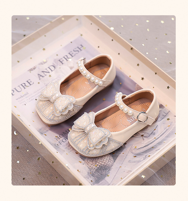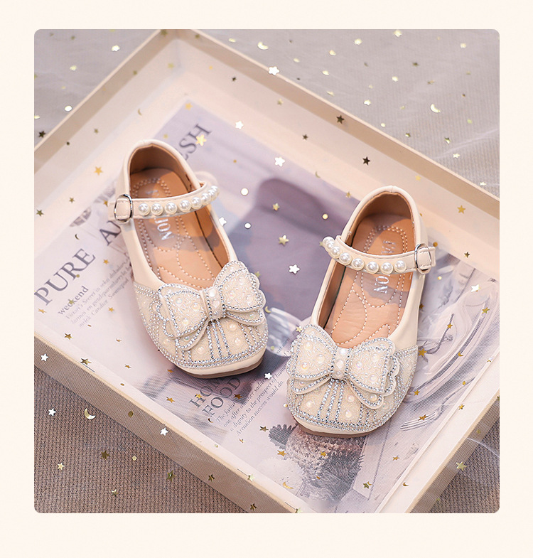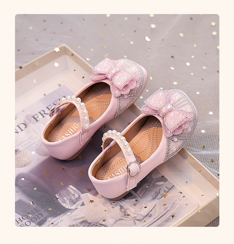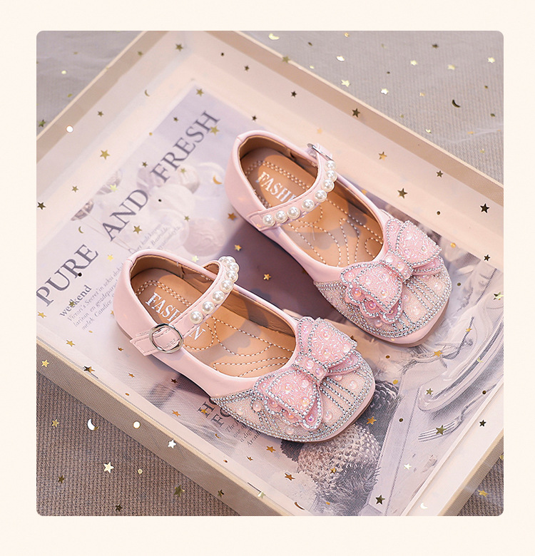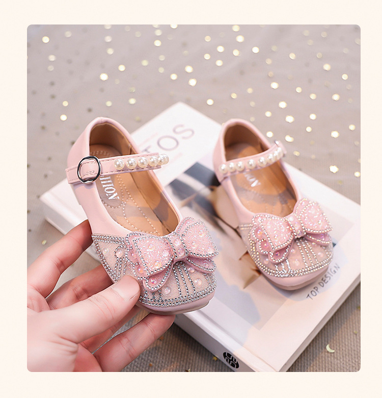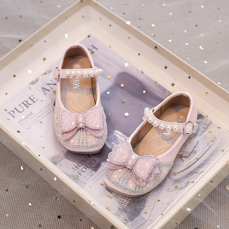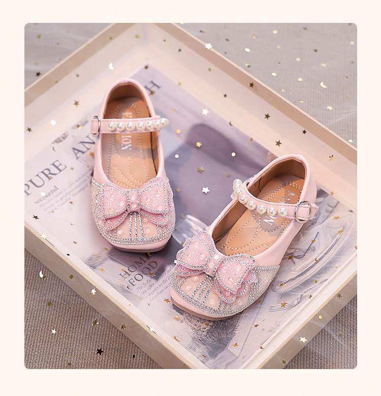 소녀 작은 가죽 신발 2025 봄과 여름 어린이 라인석 크리스탈 진주 활 공주 신발 어린 소녀 신발스토어 가기