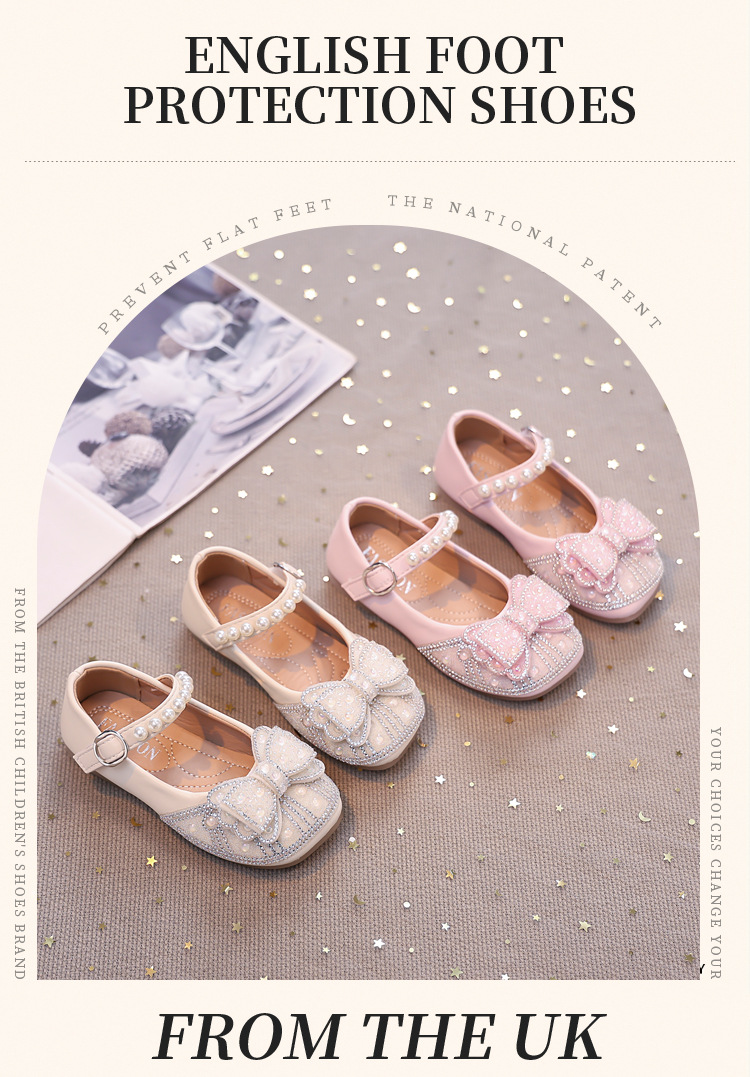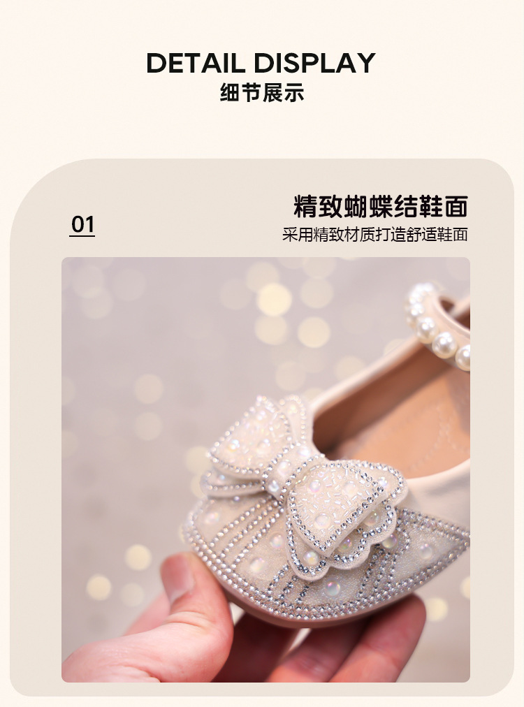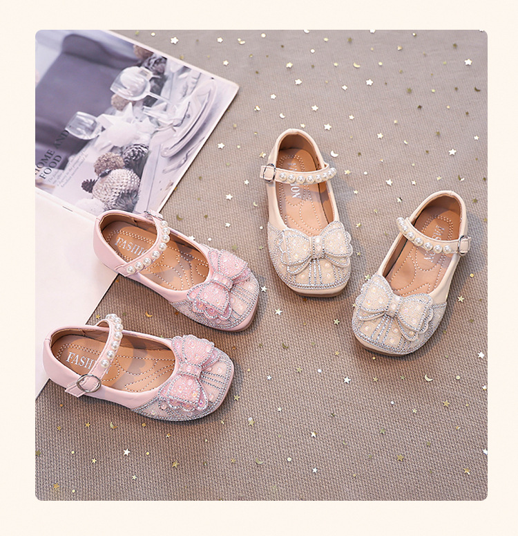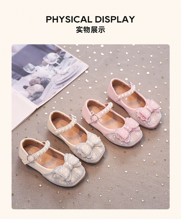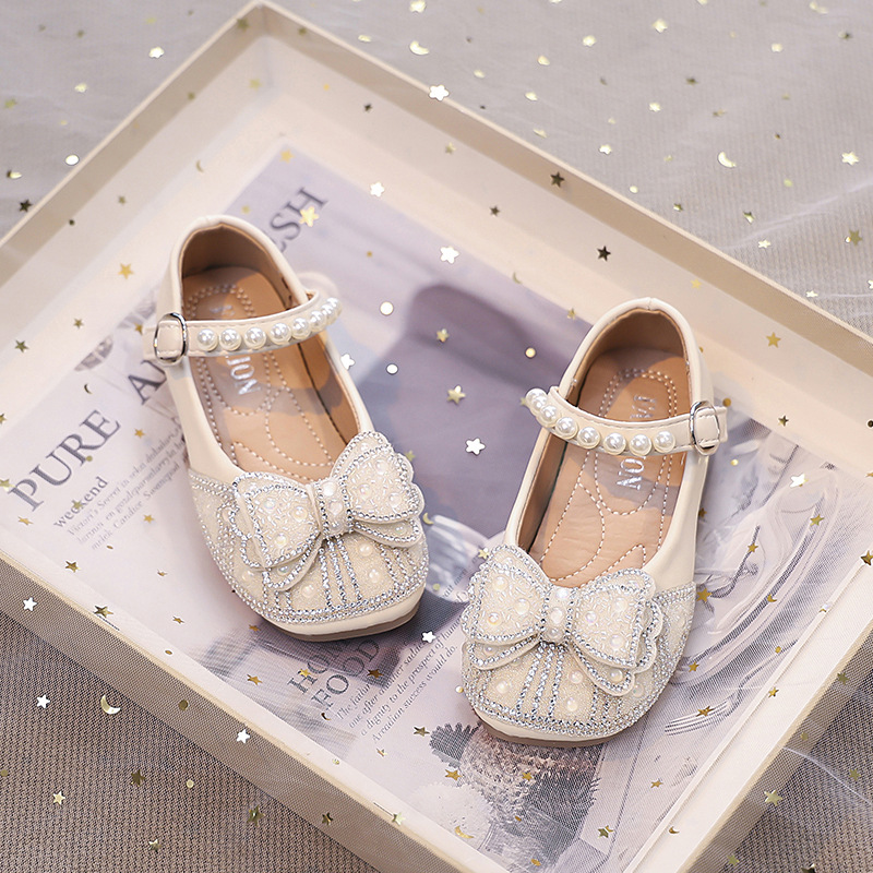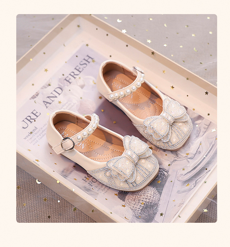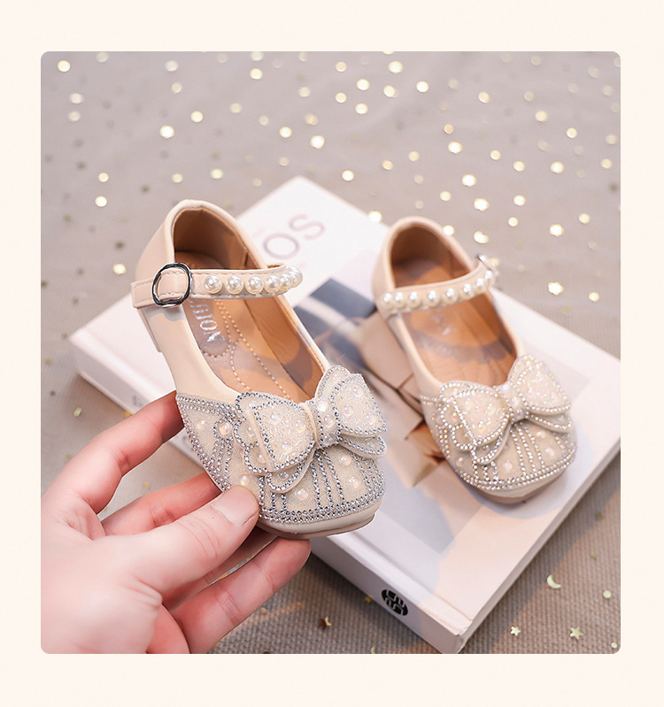 소녀 작은 가죽 신발 2025 봄과 여름 어린이 라인석 크리스탈 진주 활 공주 신발 어린 소녀 신발스토어 가기