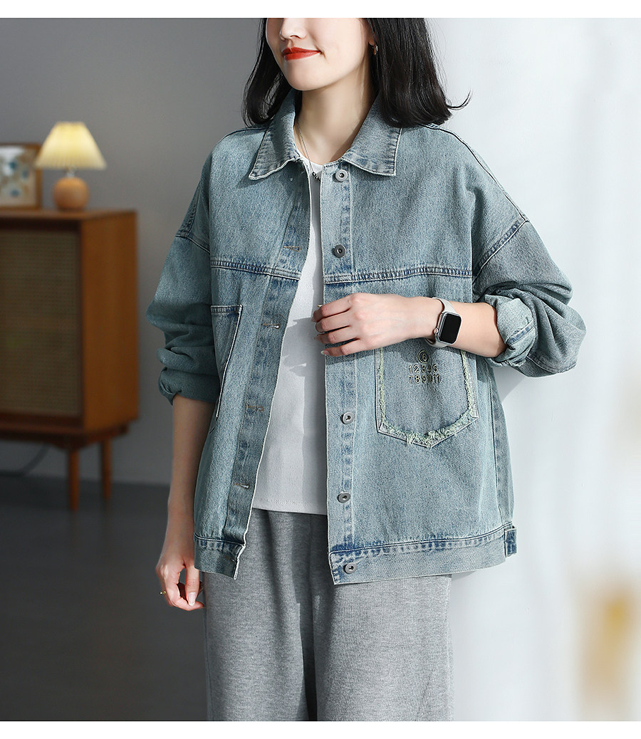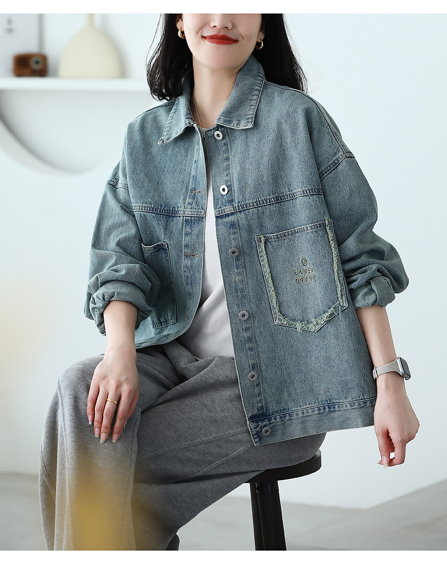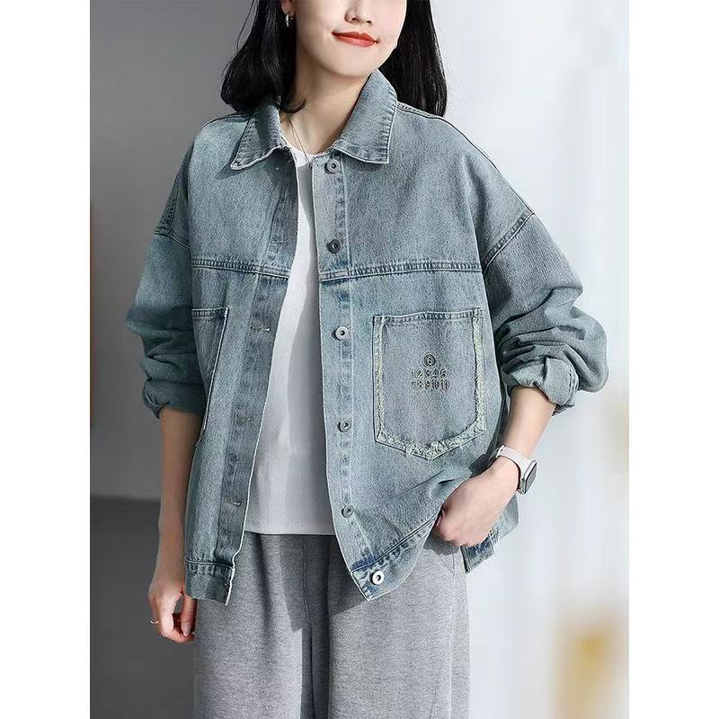 봄 새 데님 재킷 여성 랩 캐주얼 루즈 슬리밍 한국 빈티지 재킷 여자 6895