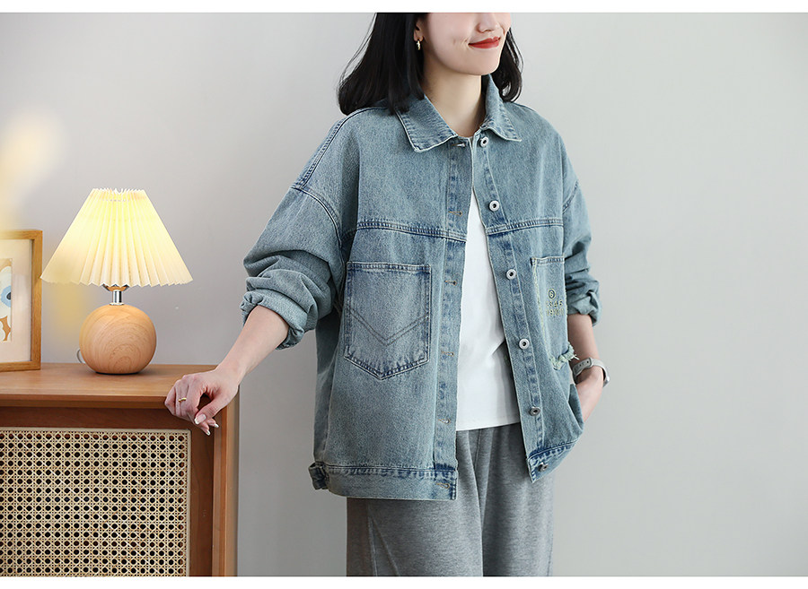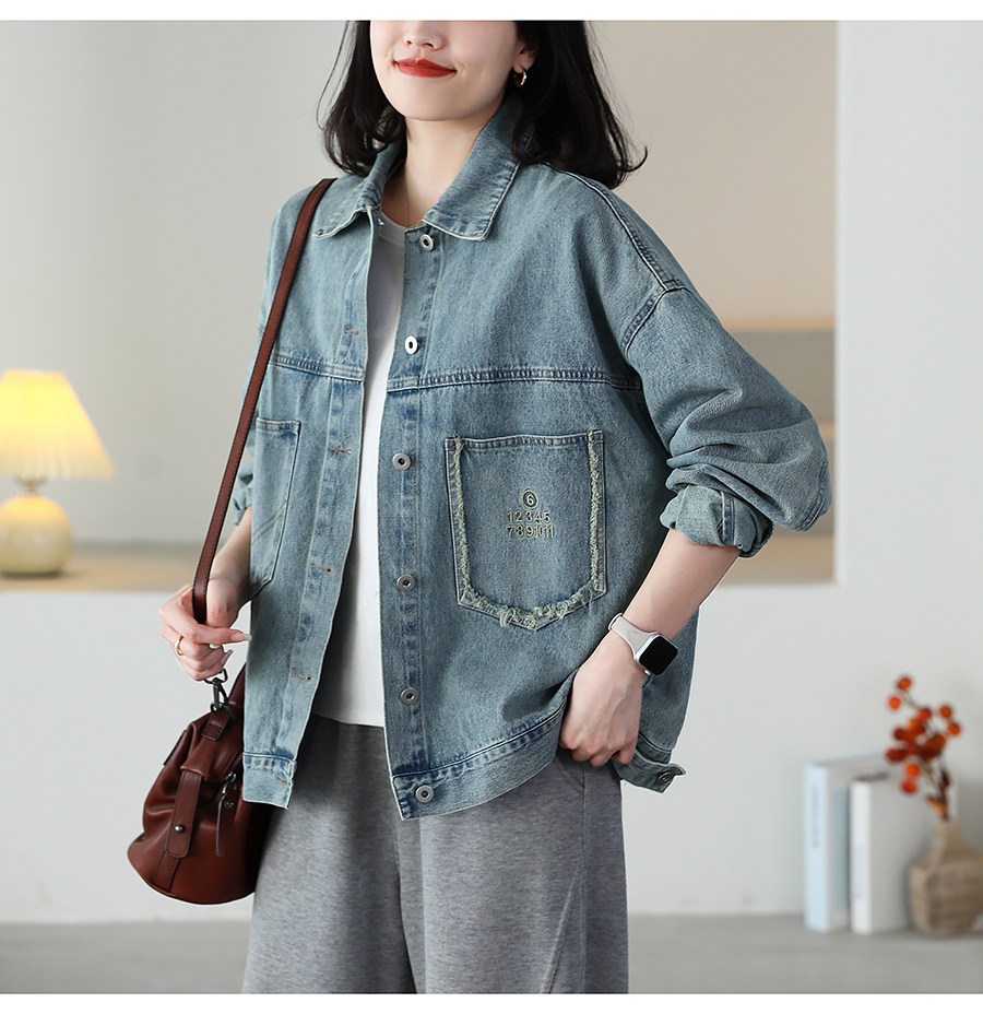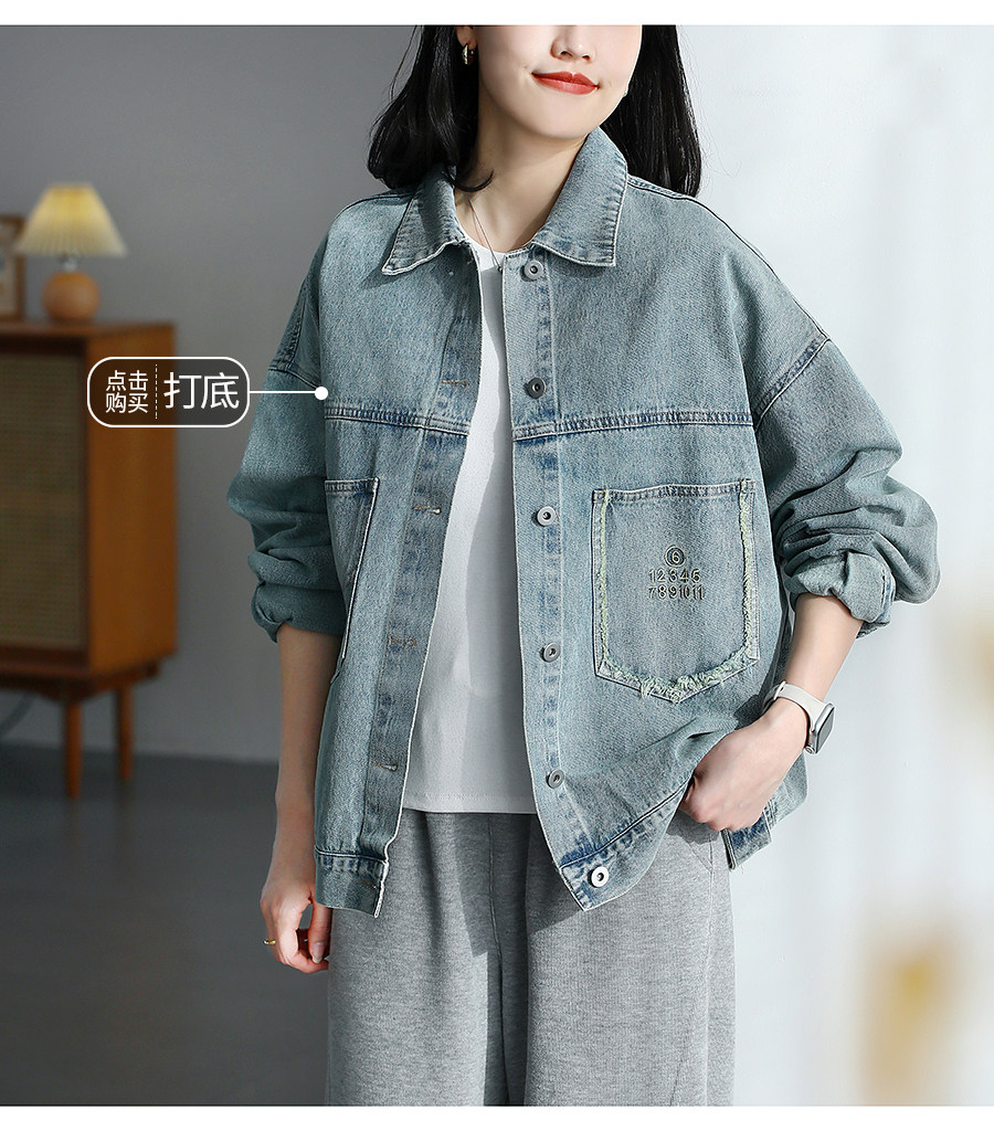 봄 새 데님 재킷 여성 랩 캐주얼 루즈 슬리밍 한국 빈티지 재킷 여자 6895스토어 가기