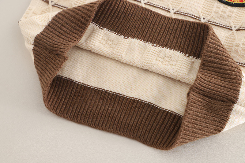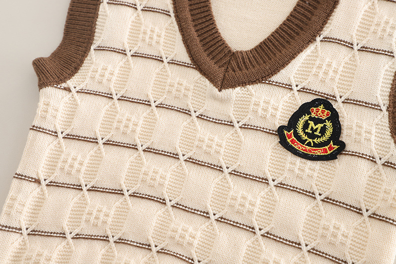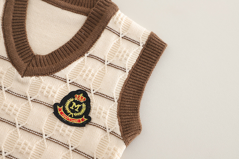 남자들의 봄웨어 아카데미 스타일 세트 2025 새로운 아기 어린이 서양식 아기 봄과 가을 스웨터 조끼 3 피스 세트스토어 가기