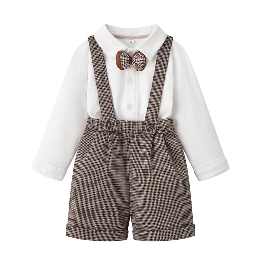 소년의 봄과 가을 신사의 원피스 Houndstooth 긴팔 영국식 아기 소년의 세트 생일 원피스스토어 가기