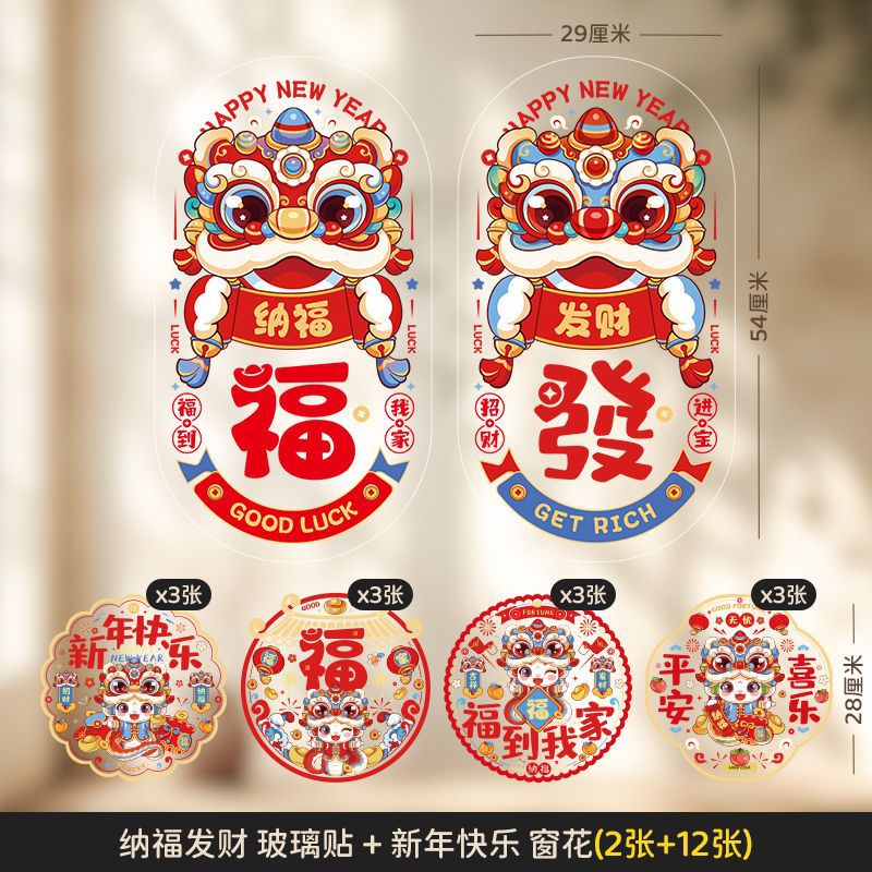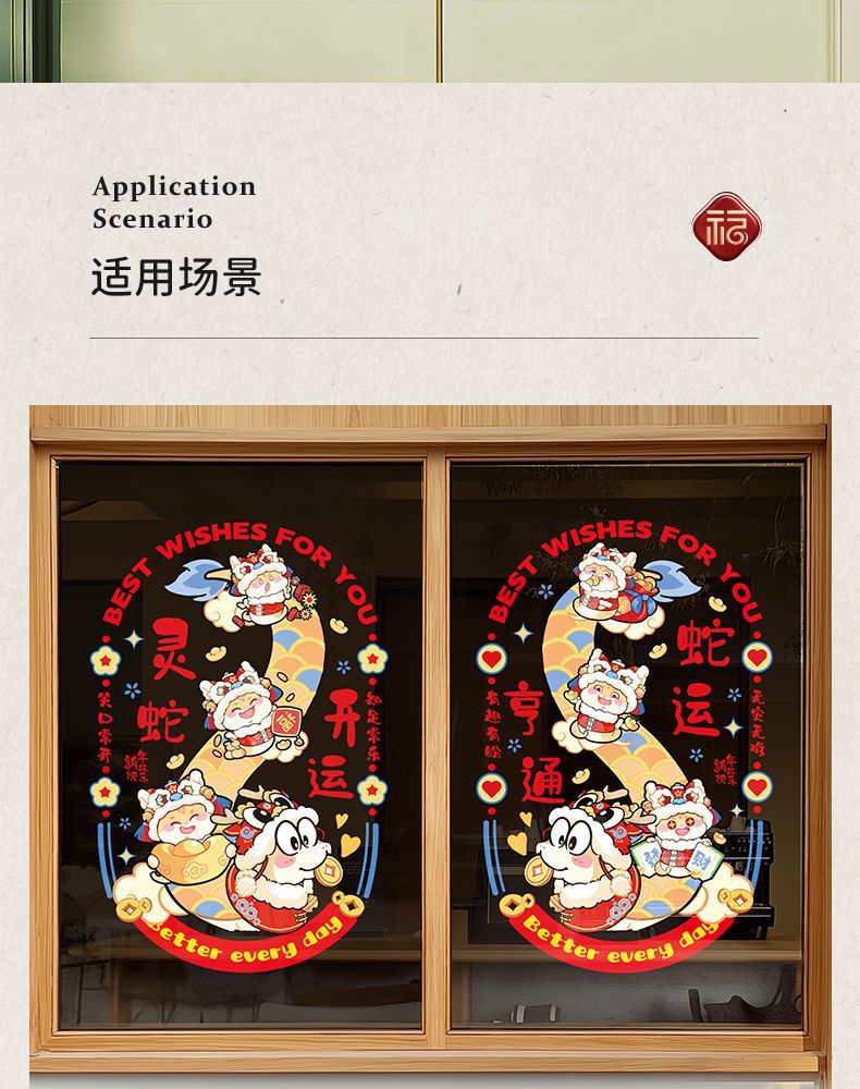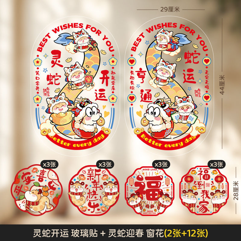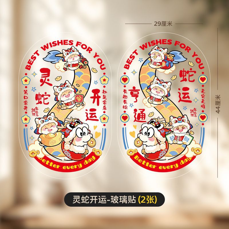 새해 정전기 스티커 2025 뱀 장식 봄 축제 푸 워드 도어 스티커 주방 유리 스티커 유치원 레이아웃의 새해스토어 가기