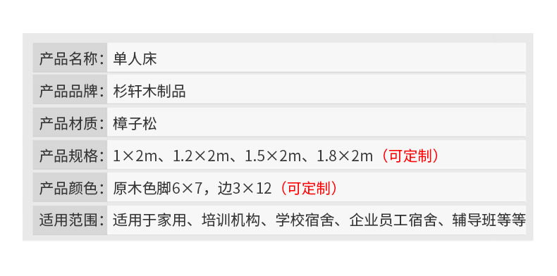 Pinus sylvestris 싱글 침대 단단한 나무 침대 1.2 침실 침대 작은 아파트 더블 침대 기숙사 임대 룸 침대 단단한 나무