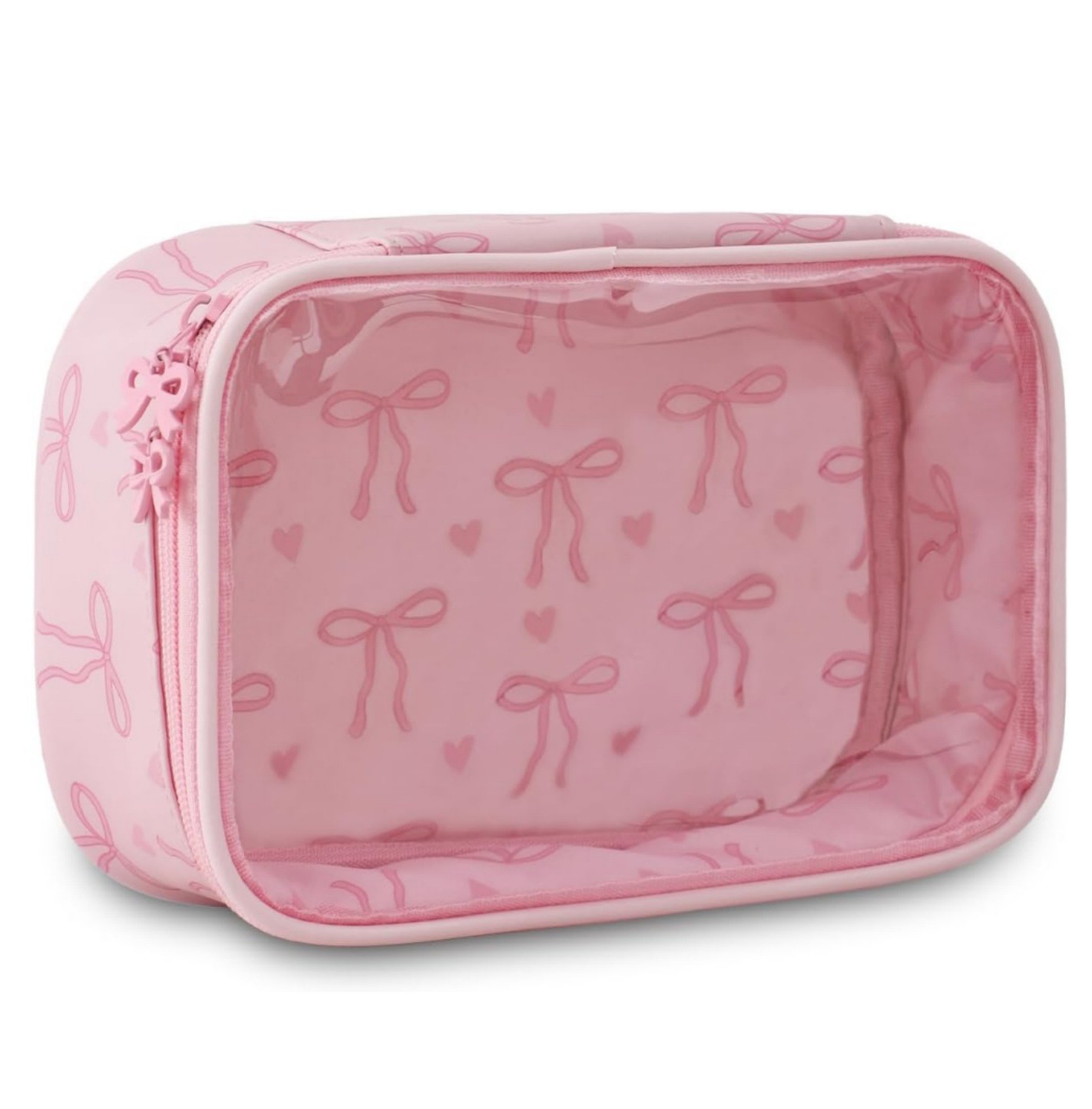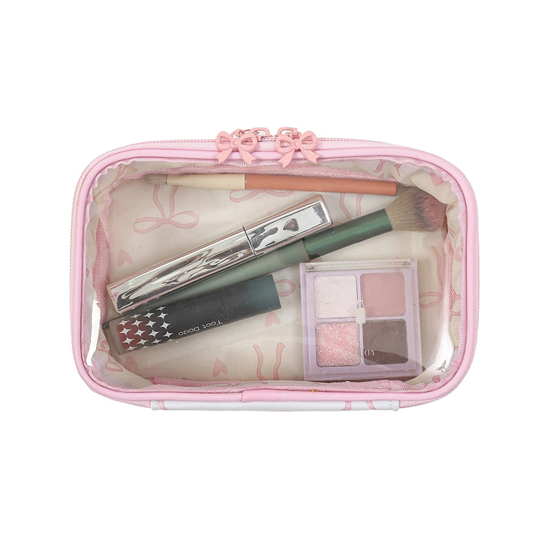 맞춤형 Amazon 인기 Bow 메이크업 가방 화장품 보관 가방 외출용 휴대용 세면 용품 가방
