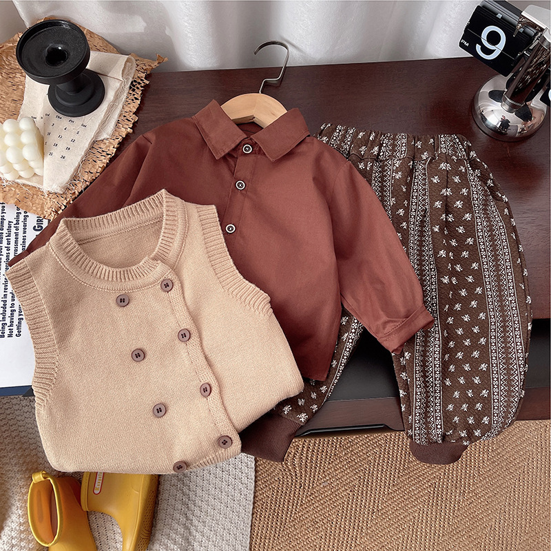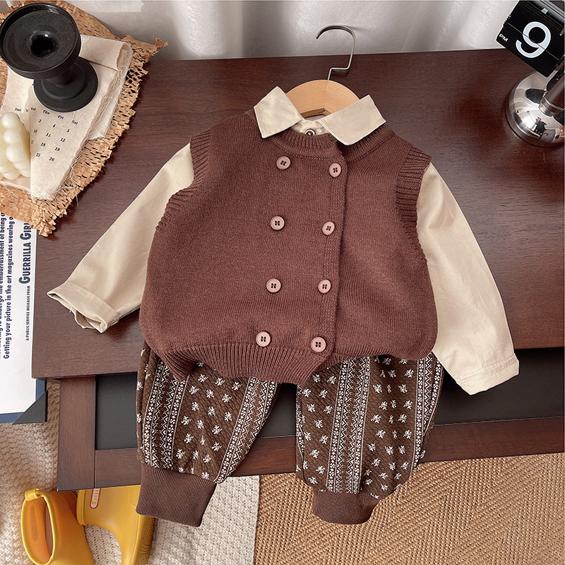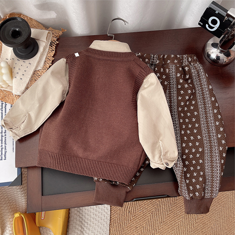 • 브라운 투브레스트 스웨터 쓰리피스 세트