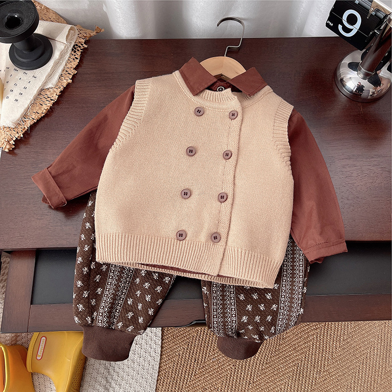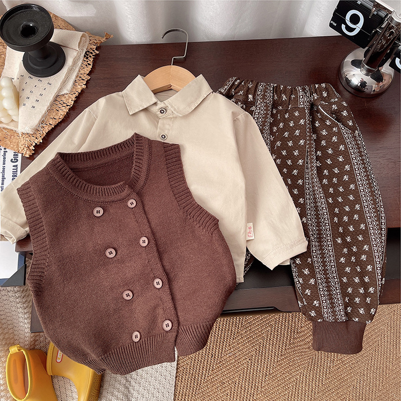 어린이 봄과 가을 긴 소매 세트 2025 봄 새로운 2 가슴 스웨터 3 피스 세트 1-5 세 어린이 의류 패션스토어 가기