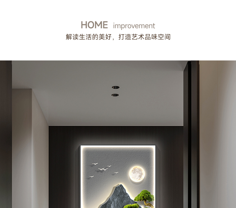 현대 빛 럭셔리 입구 복도 장식 그림 빛나는 벽 램프 그림 고급 백 복도 멀리 풍경 교수형 그림