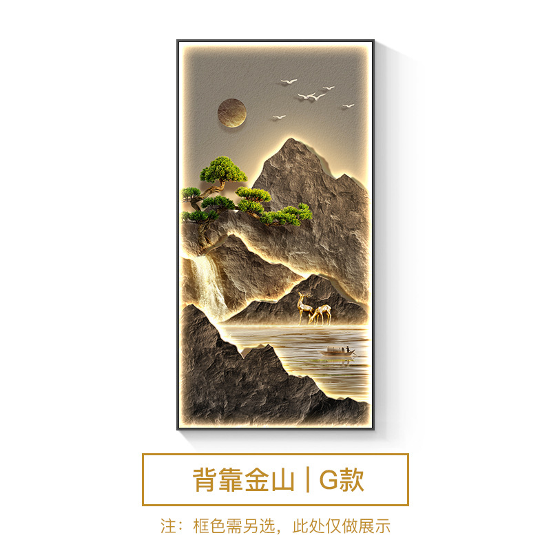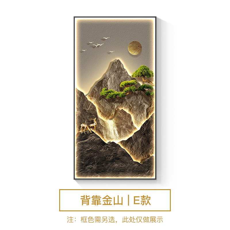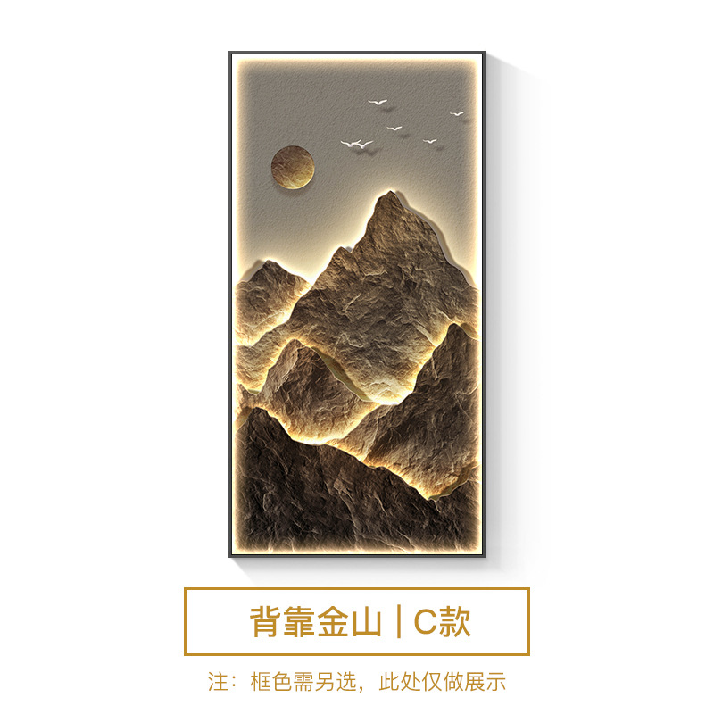 • 70x140CM - 리모콘 라이트 프레임 페인팅 [전원 220V + 리모콘 스위치 + 크리스탈 도자기 페인팅 코어] - 브라이트 골드(알루미늄 합금 브러시 프레임)