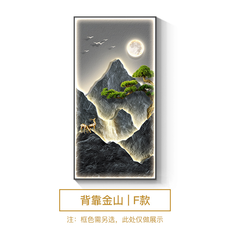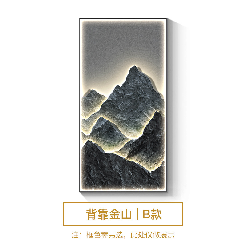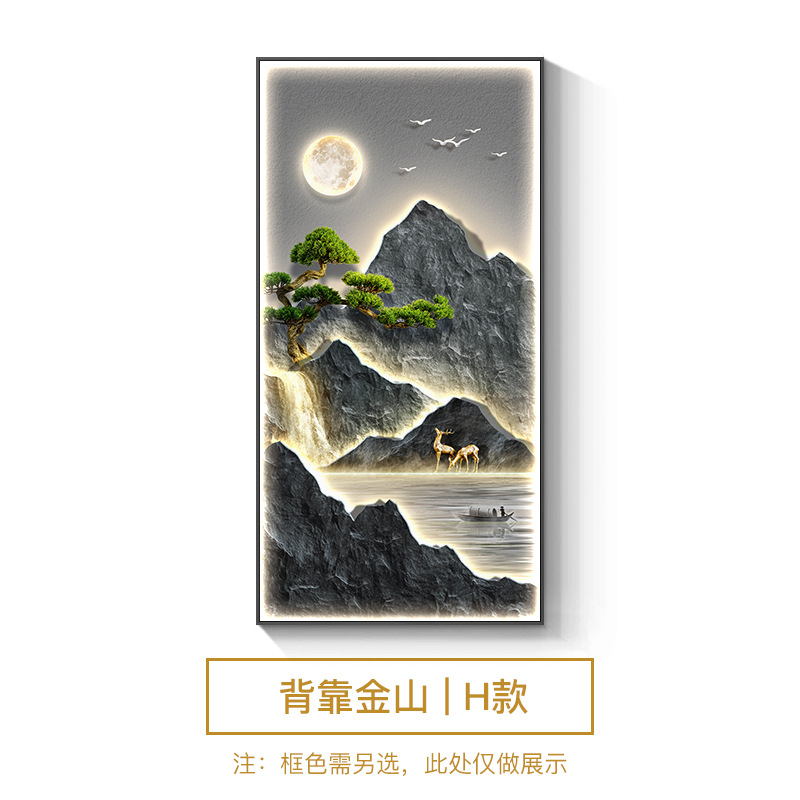 • 80x160CM - 리모콘 라이트 프레임 페인팅 [전원 220V + 리모콘 스위치 + 크리스탈 도자기 페인팅 코어] - 재즈 블랙(알루미늄 합금 브러시 프레임)