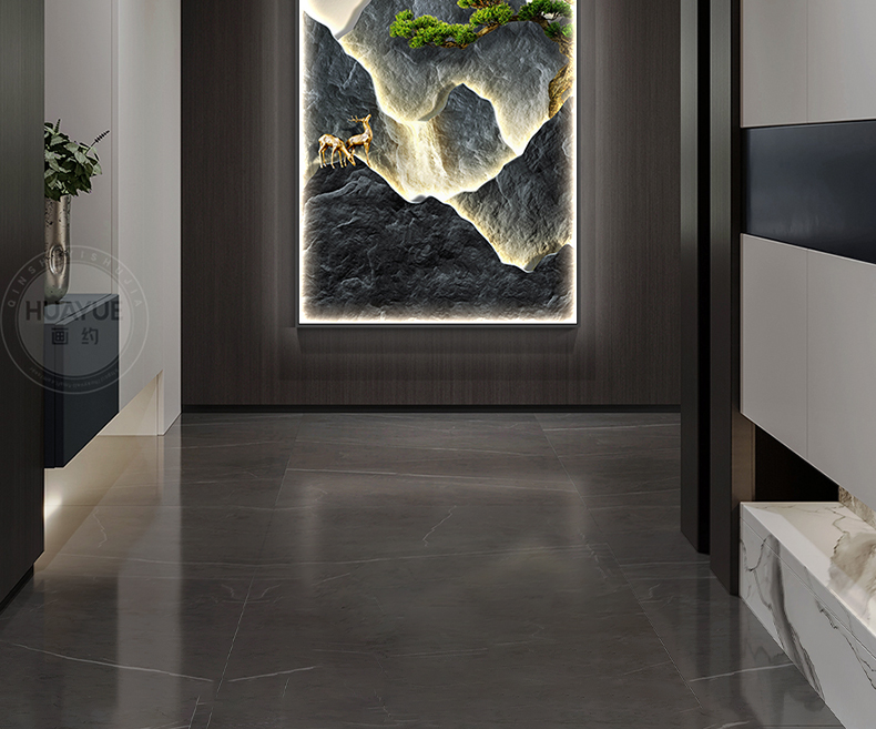 • 60x120CM - 인체 센서 라이트 프레임 페인팅 [전원 220V + 자동 스위치 + 크리스탈 도자기 페인팅 코어] - 재즈 블랙(알루미늄 합금 브러시 프레임)
