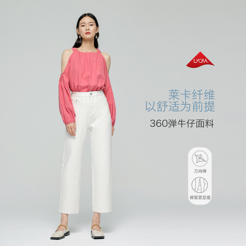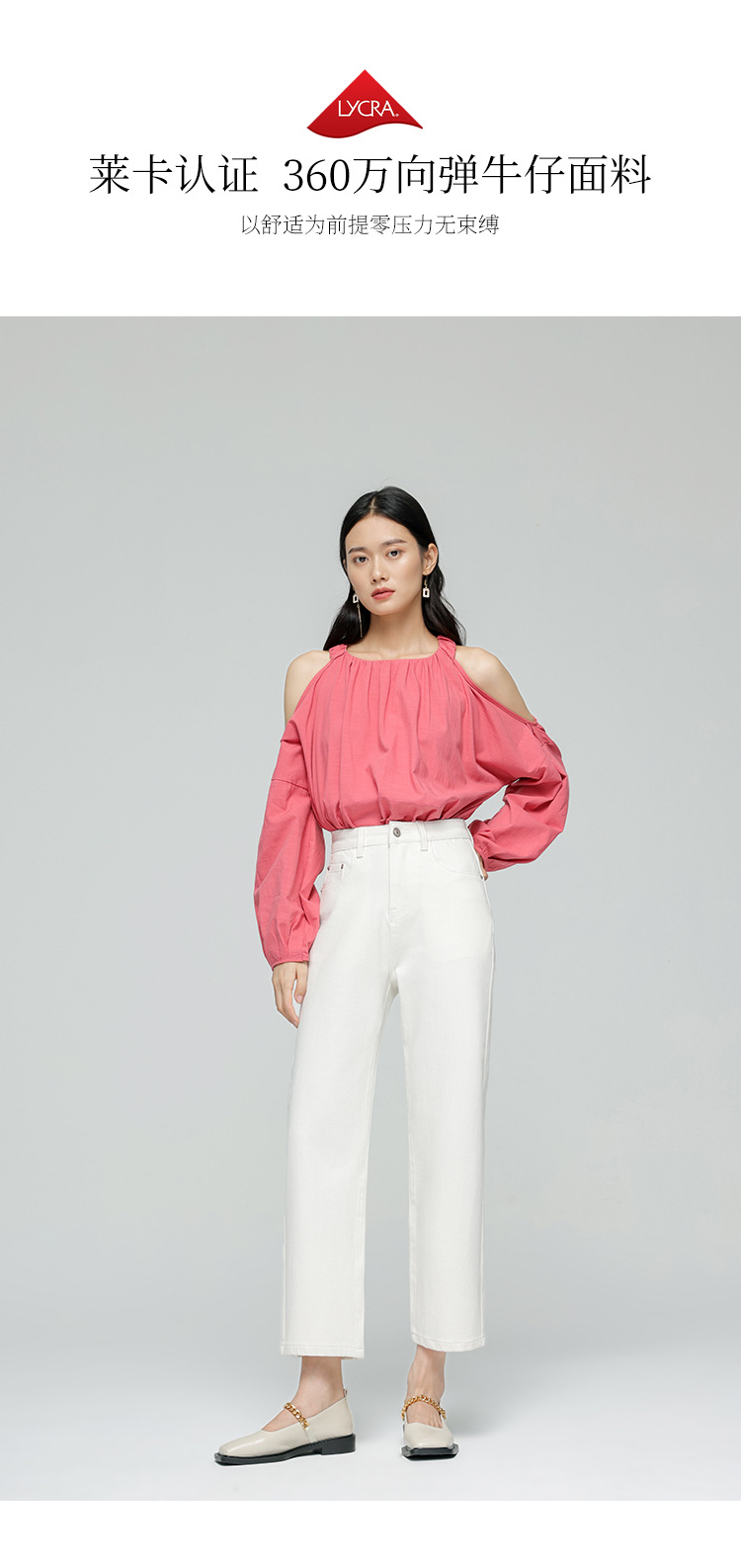 쿨 뷰티 2025 하이 퀄리티 9 포인트 아이보리 청바지 여성 가을 4 면 총알 프렌치 스틱 파이프 작은 직선 튜브스토어 가기