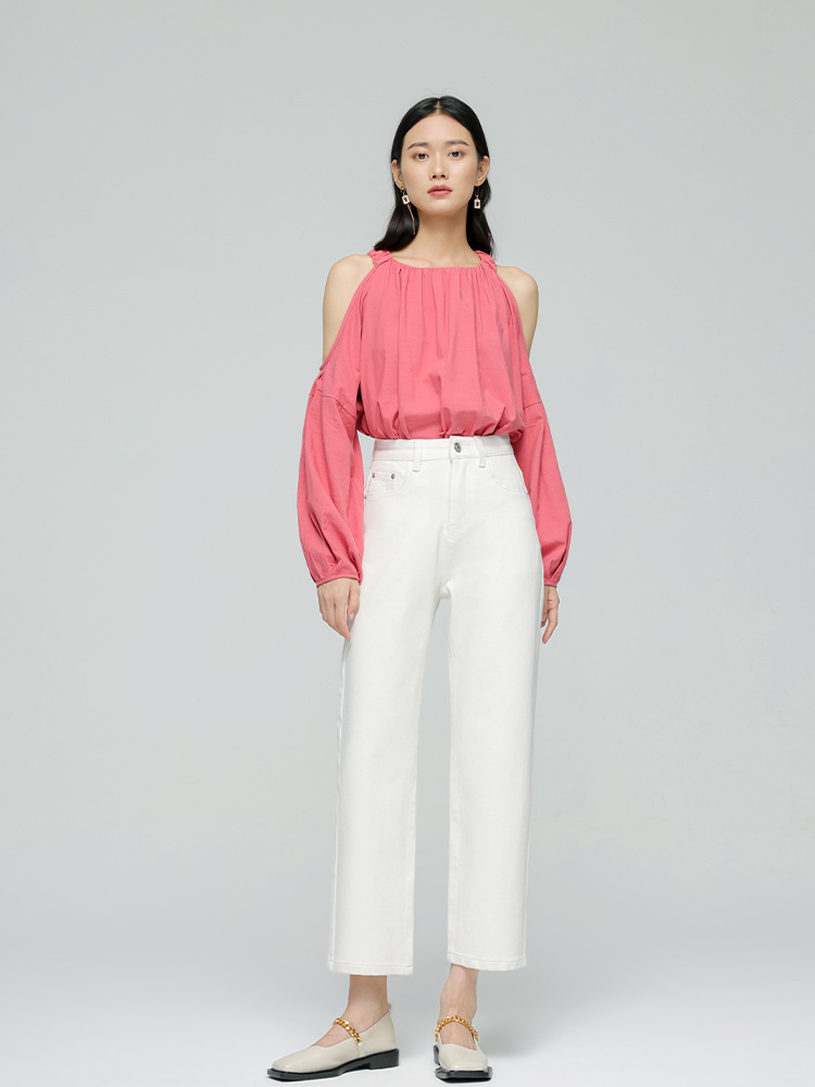 쿨 뷰티 2025 하이 퀄리티 9 포인트 아이보리 청바지 여성 가을 4 면 총알 프렌치 스틱 파이프 작은 직선 튜브