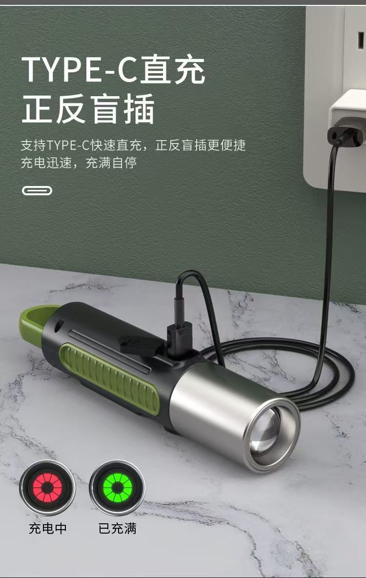 다기능 손전등 유형-C 충전식 휴대용 캠핑 라이트 야간 조명 야외 비상 조명 야외 장거리