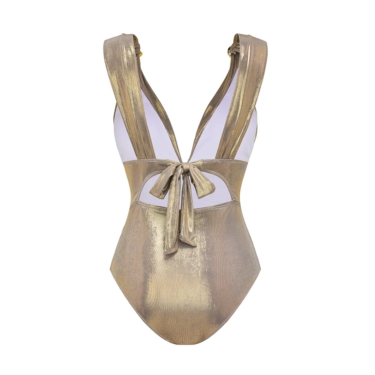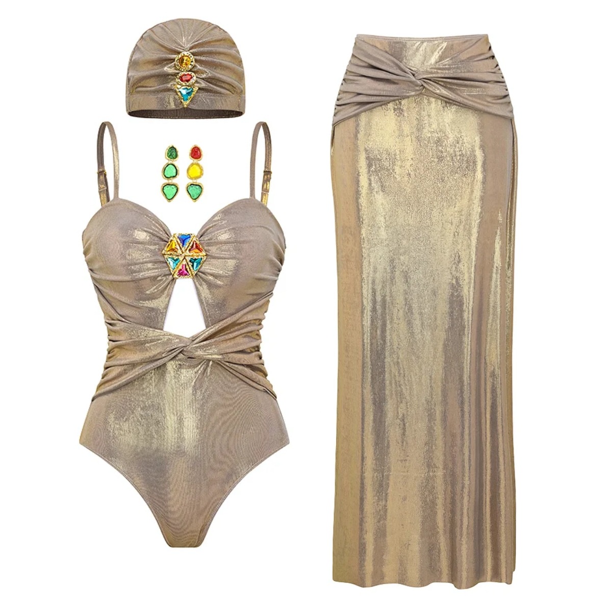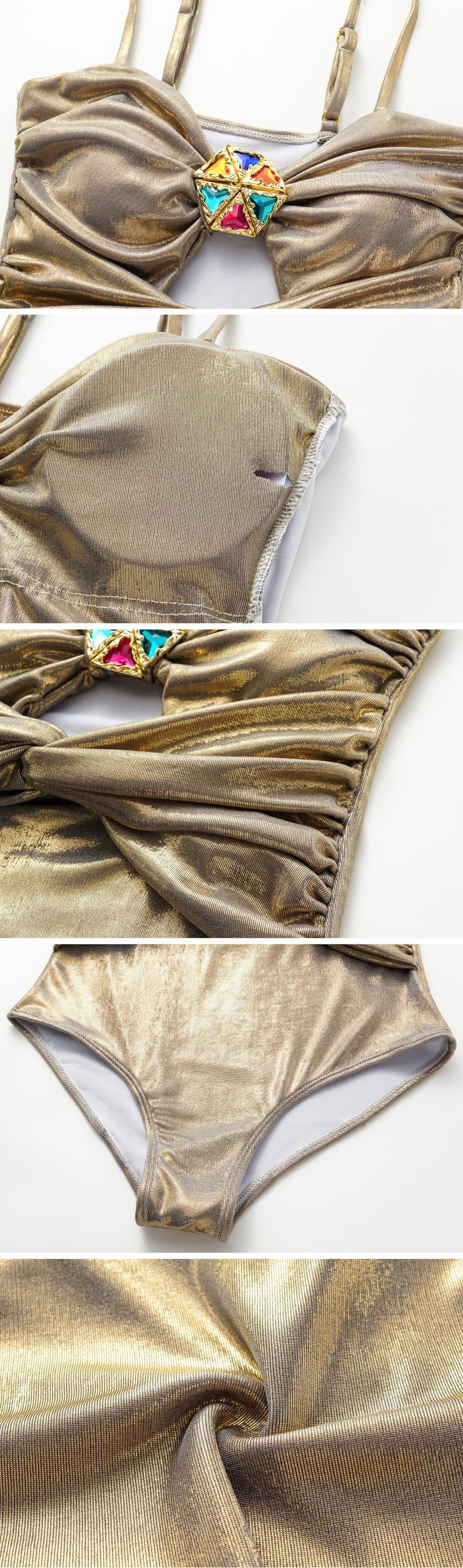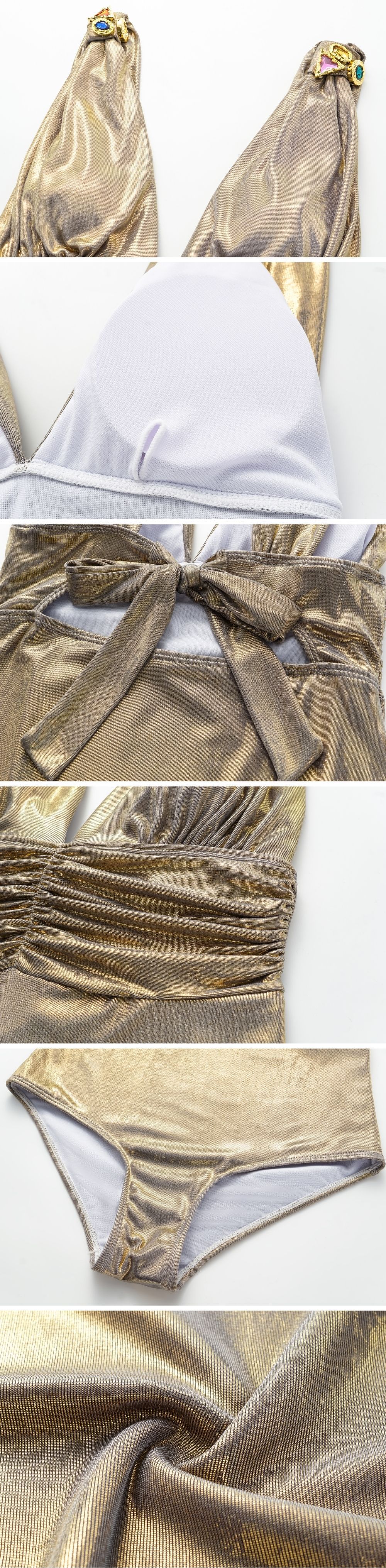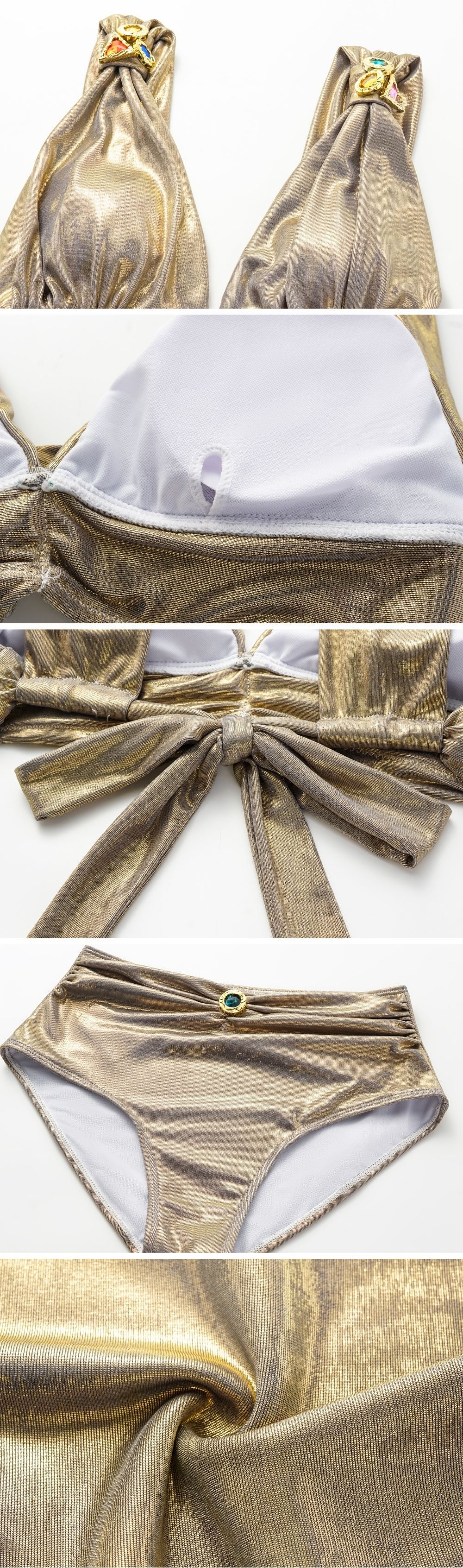 2025 유럽과 미국의 비키니 뉴 컬러 다이아몬드 V-칼라 브라이트 플리츠 하이 허리 스플릿 수영복 세트 여성 국경 수영복스토어 가기