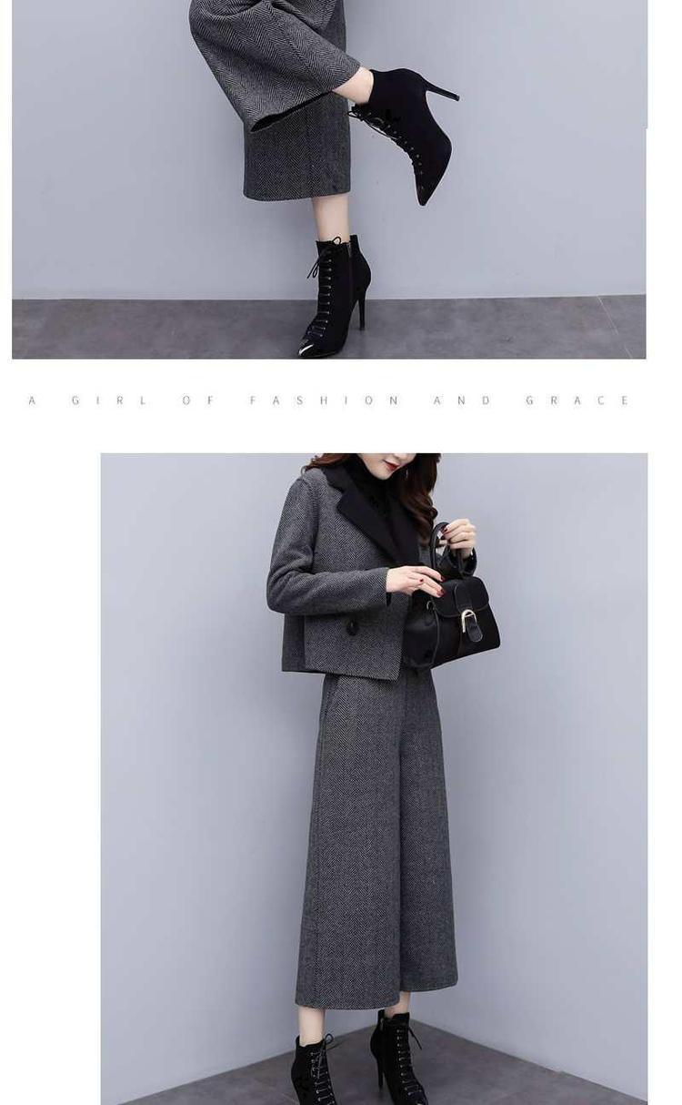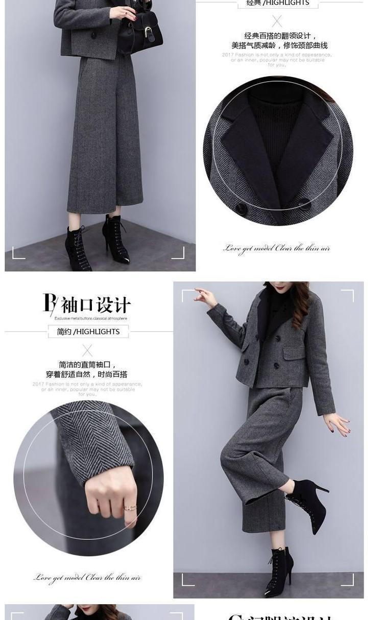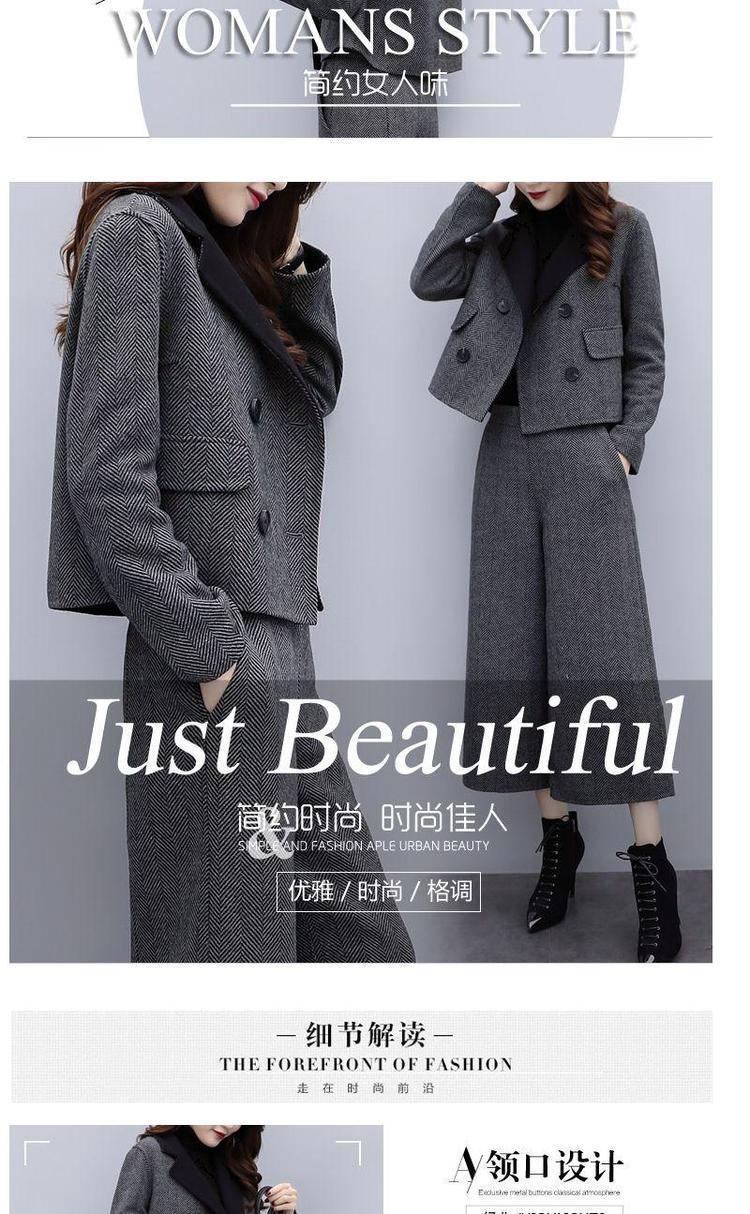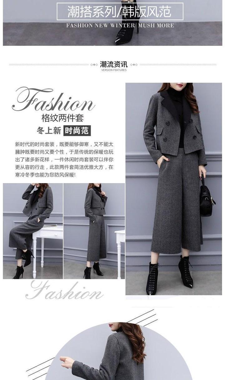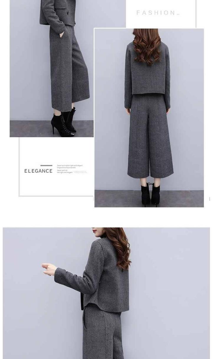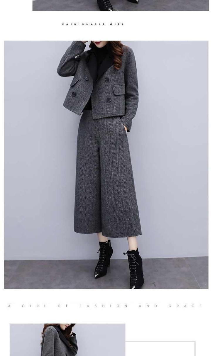 신상 여성복 2025 가을 겨울 투피스 세트 헤링본 패턴 모직 재킷 와이드 팬츠 캐주얼 패션 세트 여성 트렌드스토어 가기