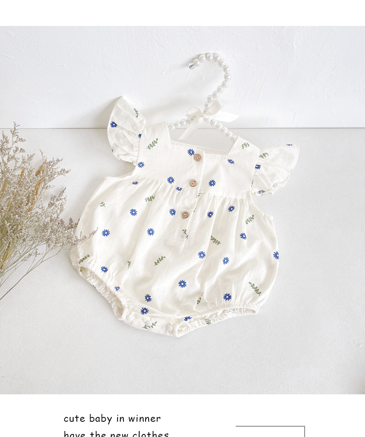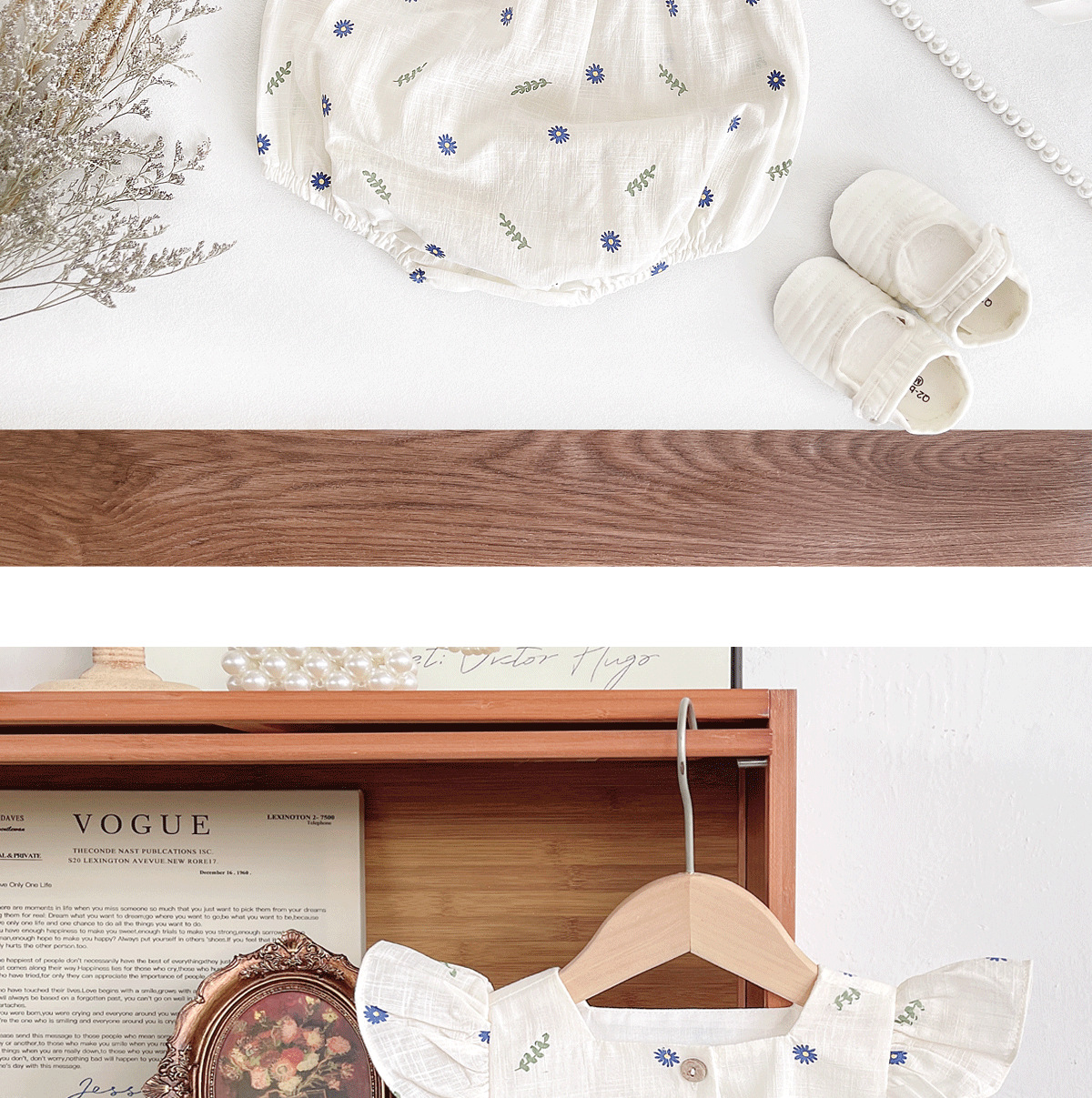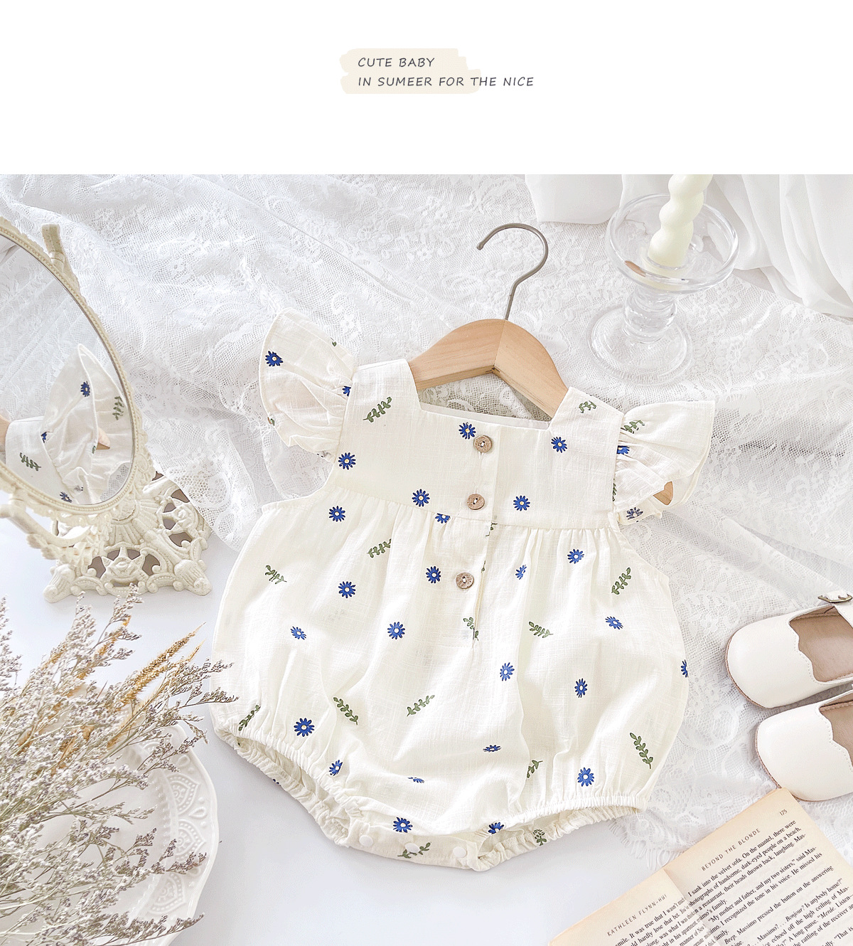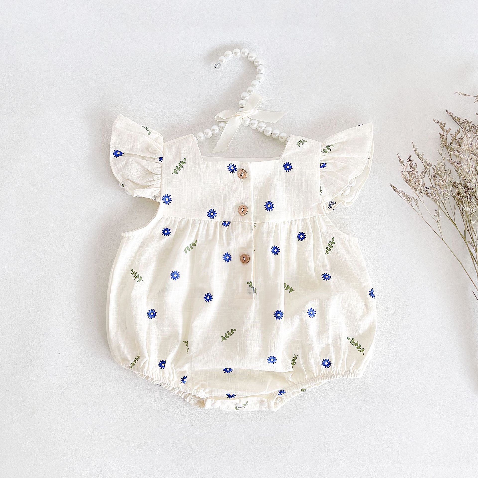 여름 아기의 비행 소매 목회 스타일 세트 여성의 아기 면 작은 꽃과 작은 잎 토끼 삼각형 등반 세트스토어 가기