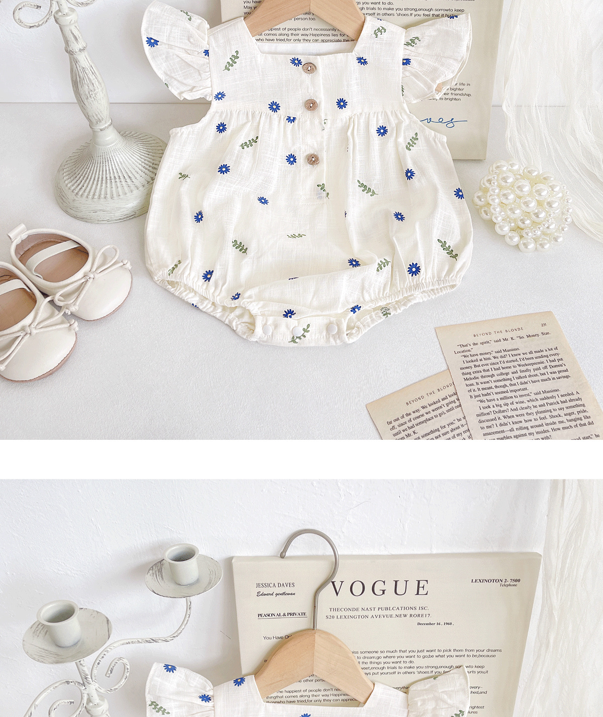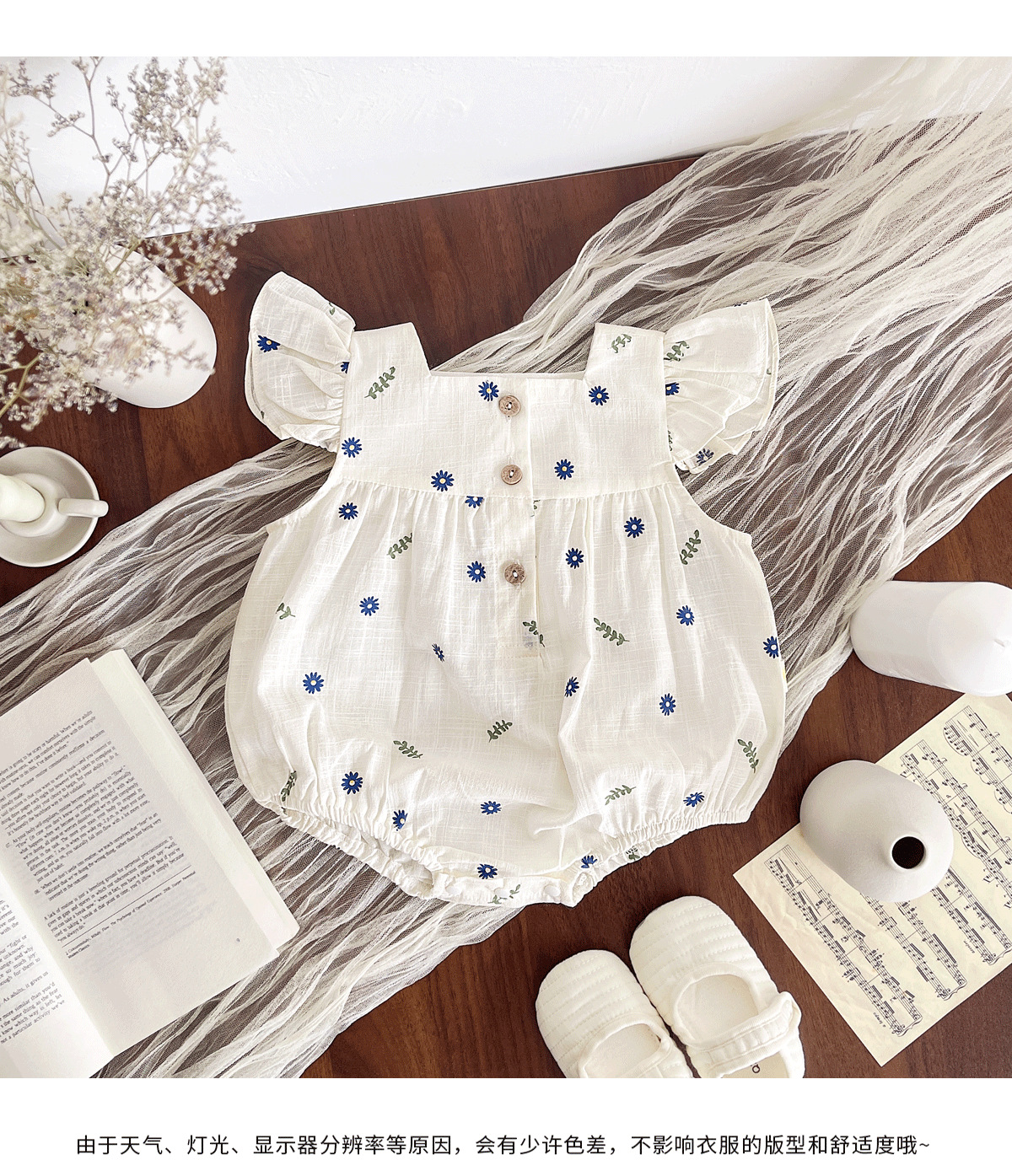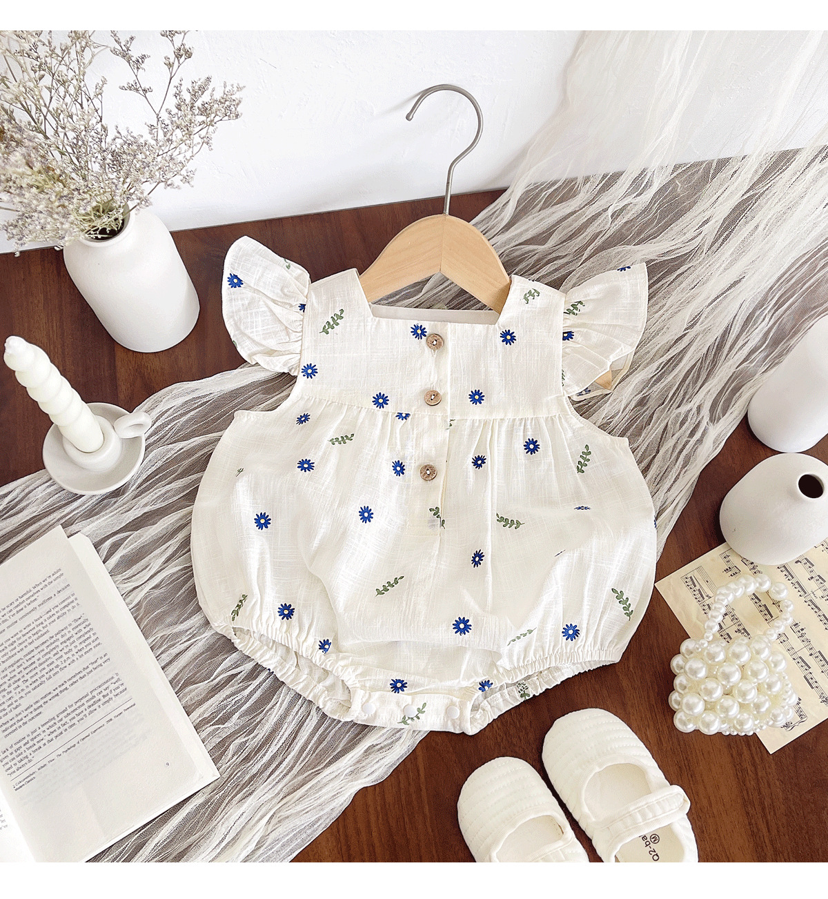 여름 아기의 비행 소매 목회 스타일 세트 여성의 아기 면 작은 꽃과 작은 잎 토끼 삼각형 등반 세트스토어 가기