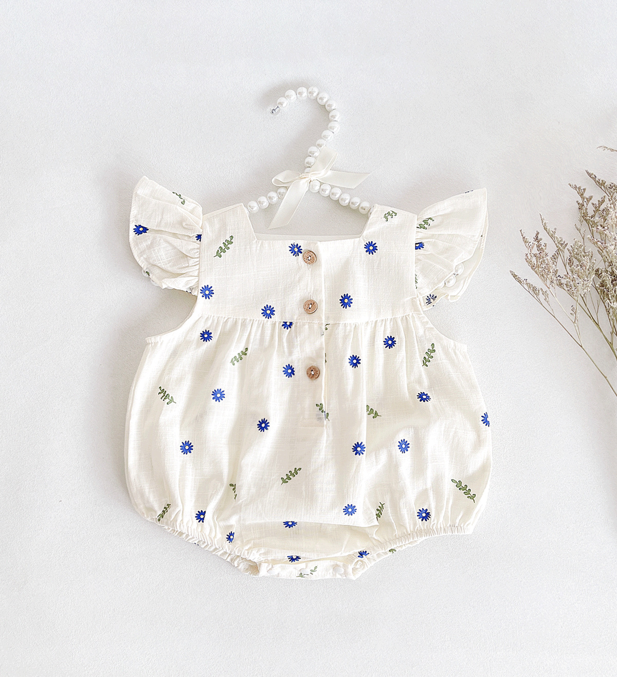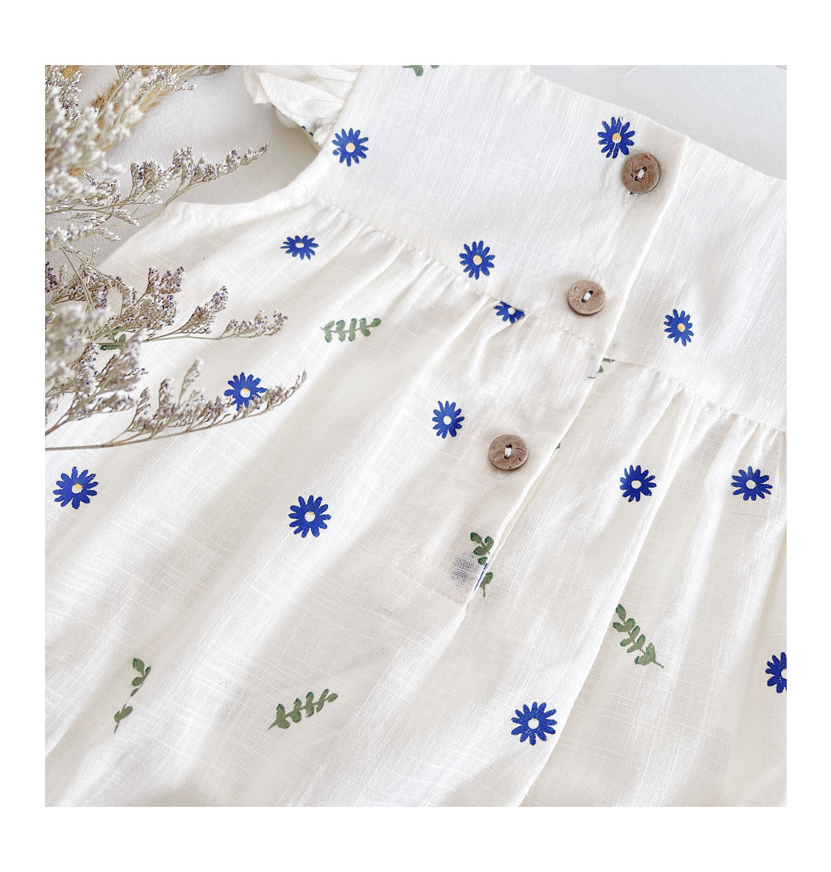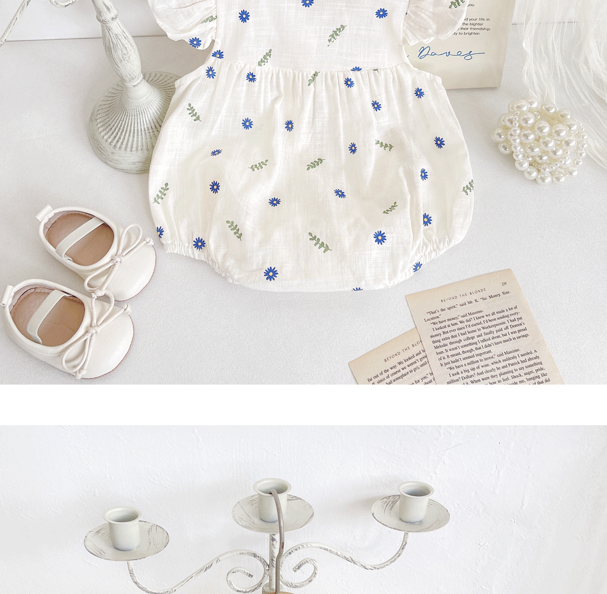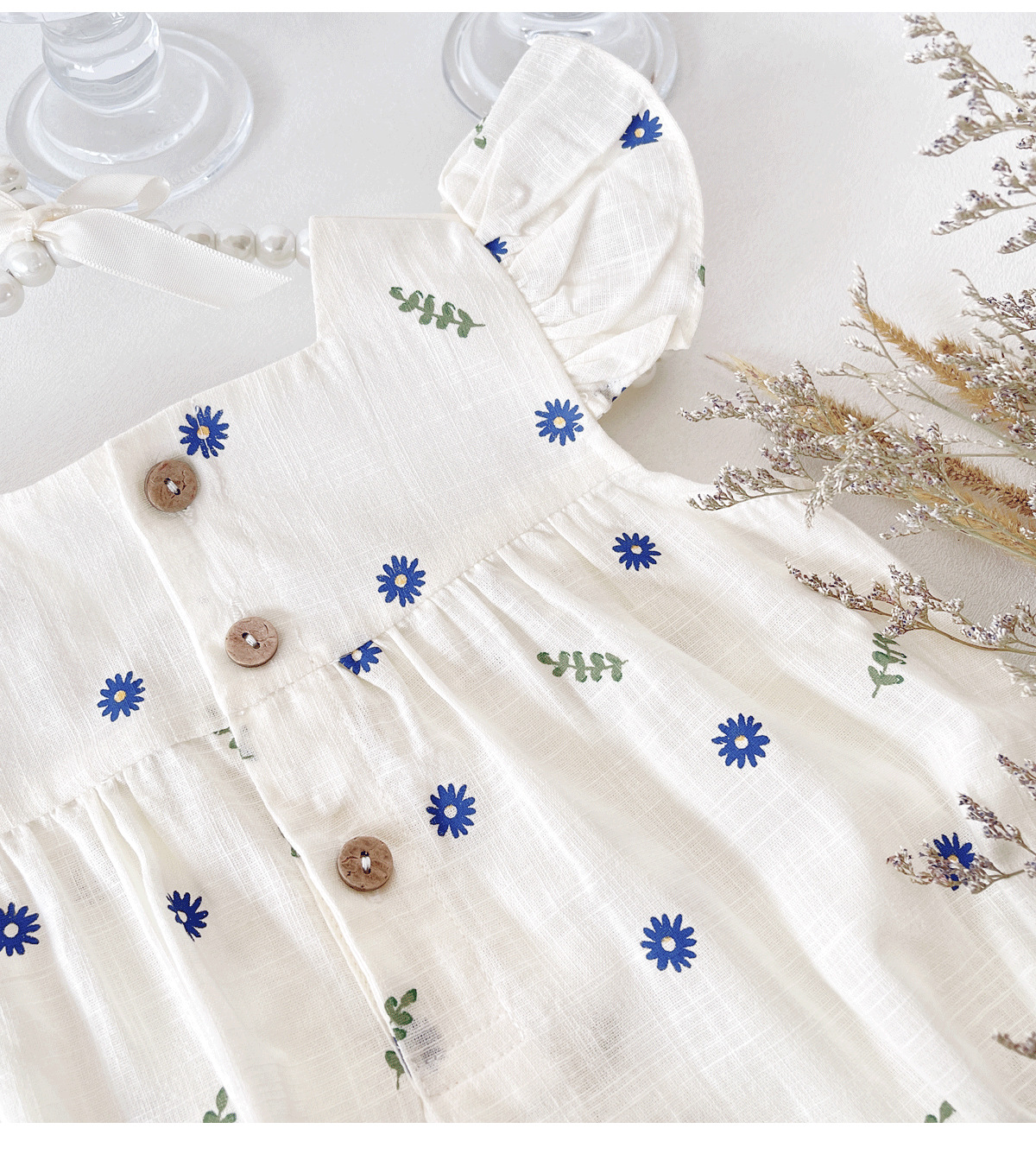 여름 아기의 비행 소매 목회 스타일 세트 여성의 아기 면 작은 꽃과 작은 잎 토끼 삼각형 등반 세트스토어 가기