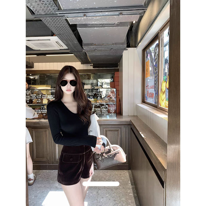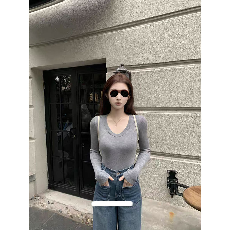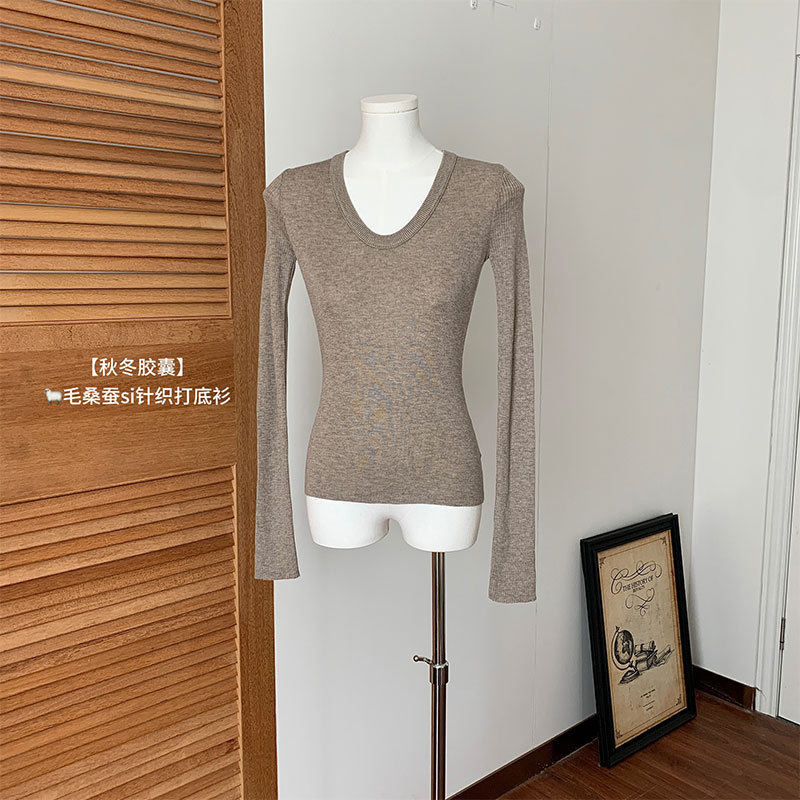 가을과 겨울 캡슐 양모 뽕나무 실크 니트베이스 셔츠 여성의 2024 가을과 겨울 새로운 구덩이 탑스토어 가기