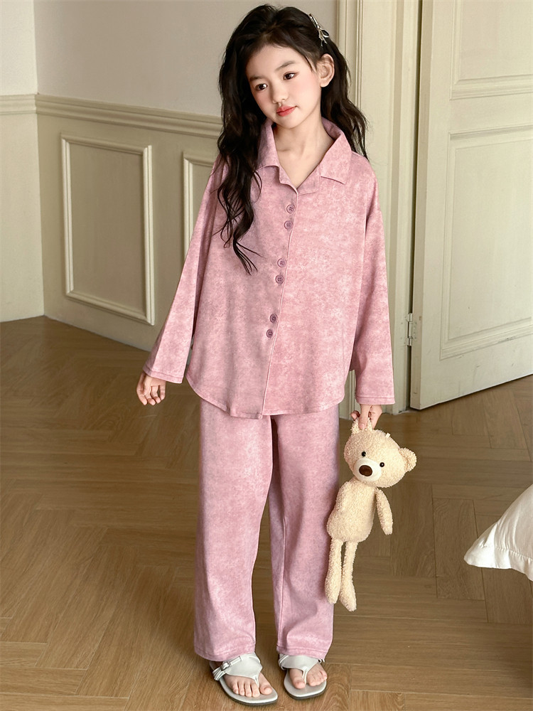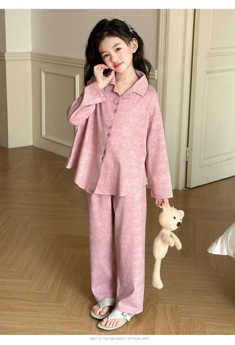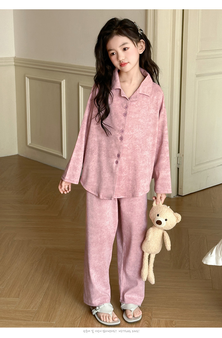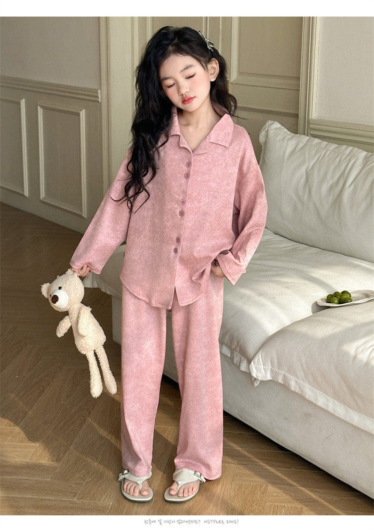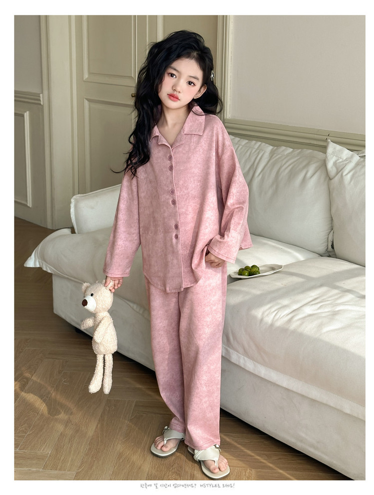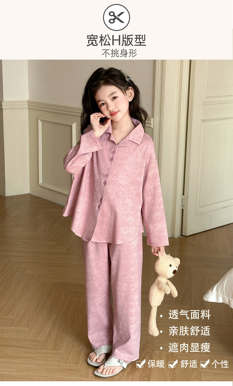소녀 잠옷 세트 서양식 봄과 가을 소녀 달콤한 긴 소매 옷깃 카디건 홈 옷 투피스 세트스토어 가기