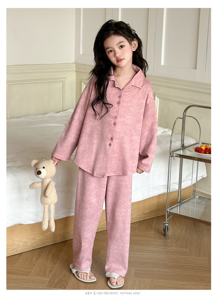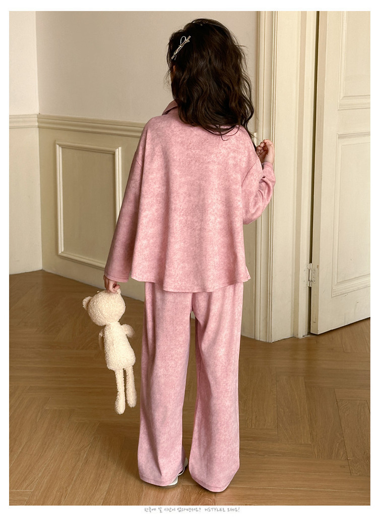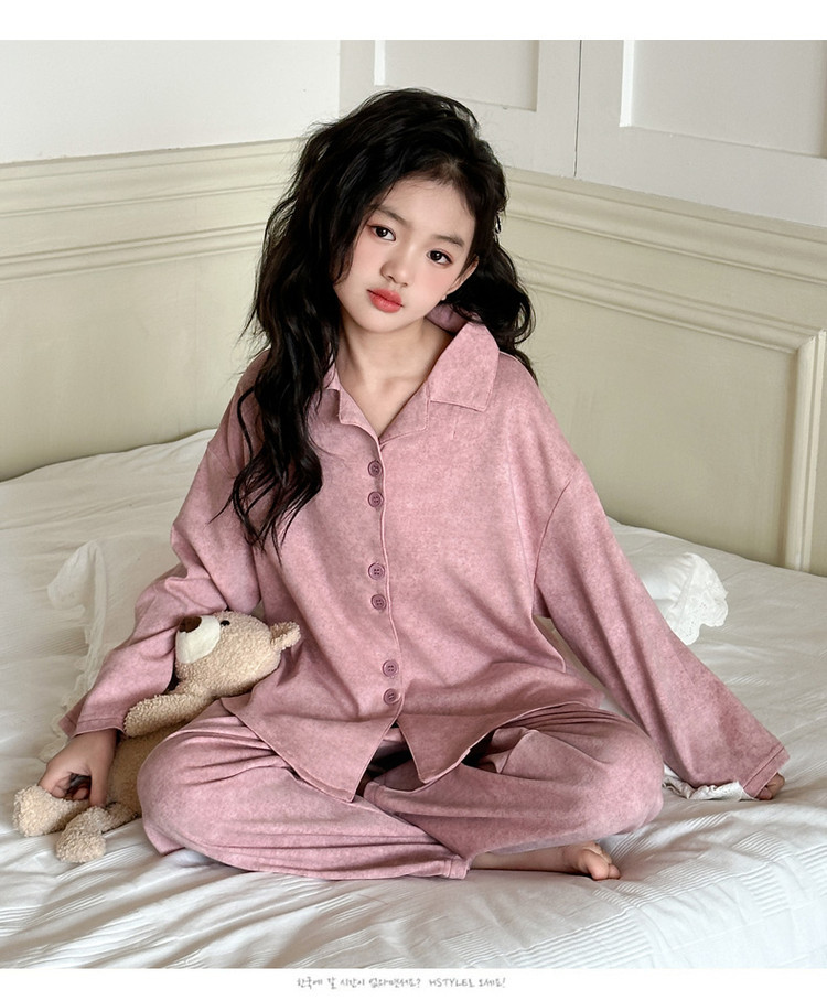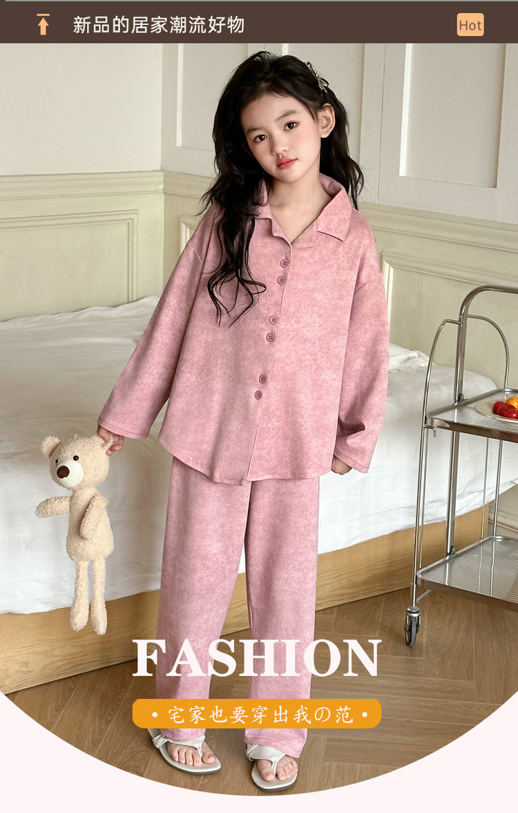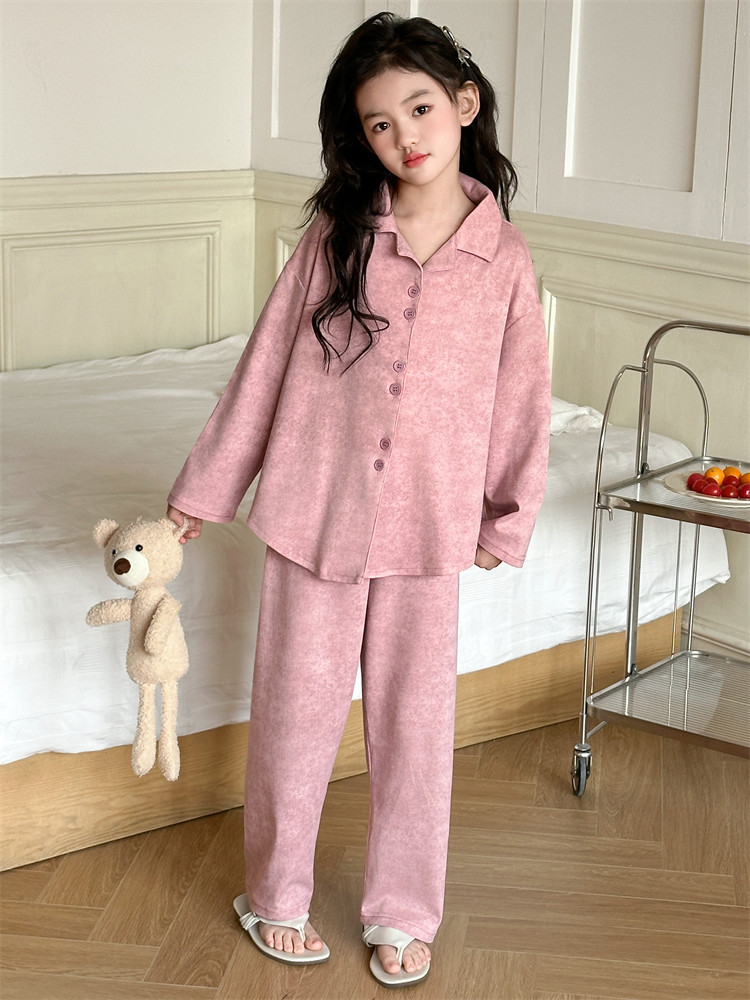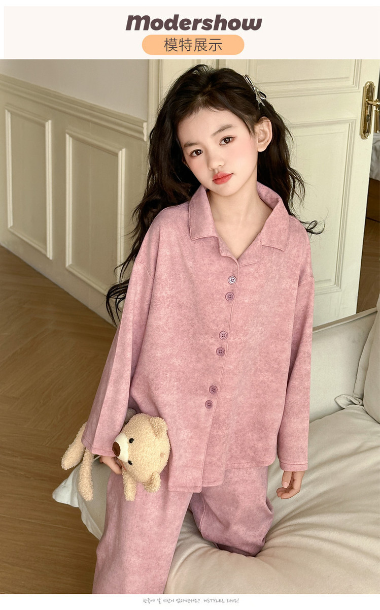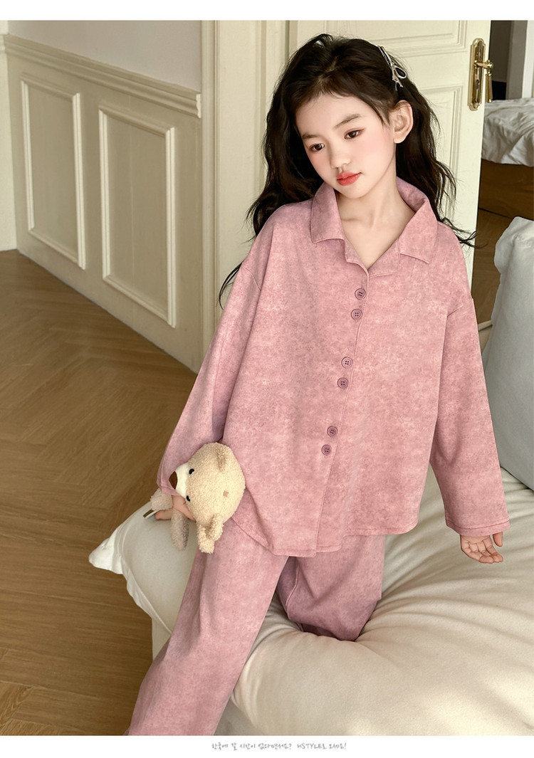 소녀 잠옷 세트 서양식 봄과 가을 소녀 달콤한 긴 소매 옷깃 카디건 홈 옷 투피스 세트스토어 가기