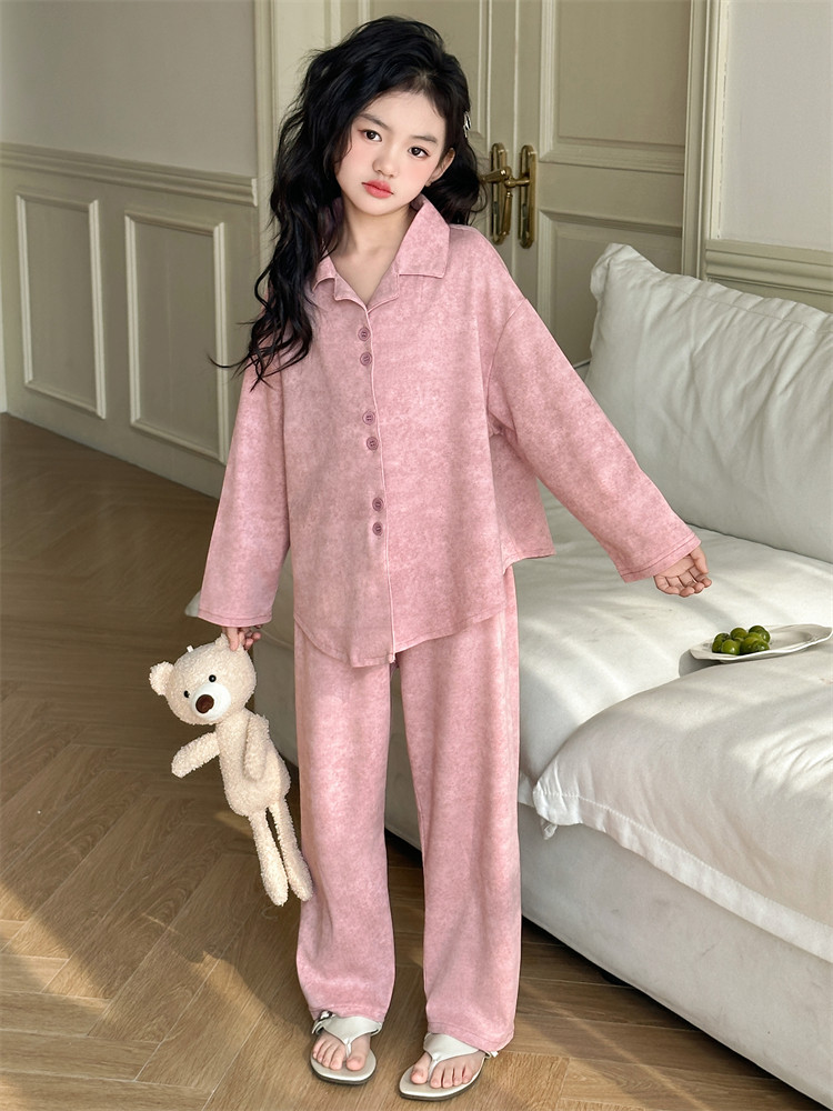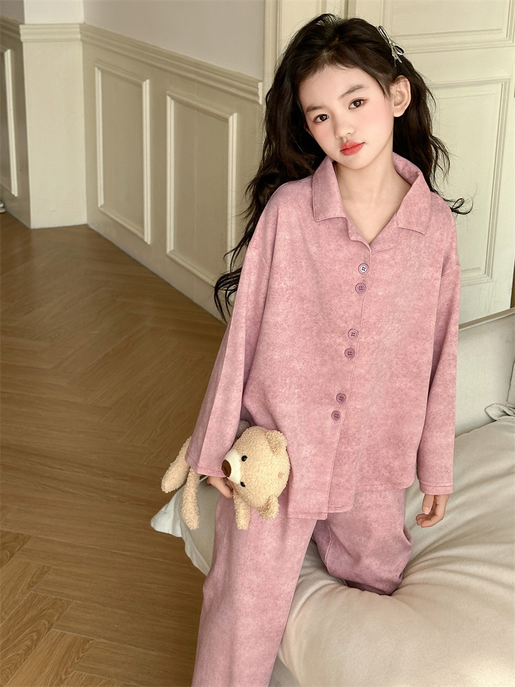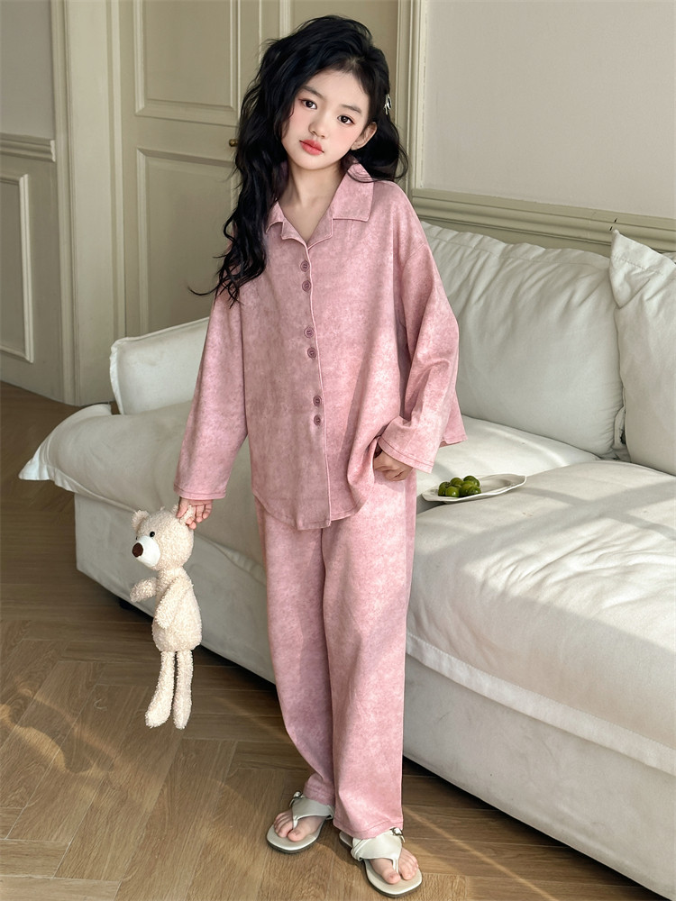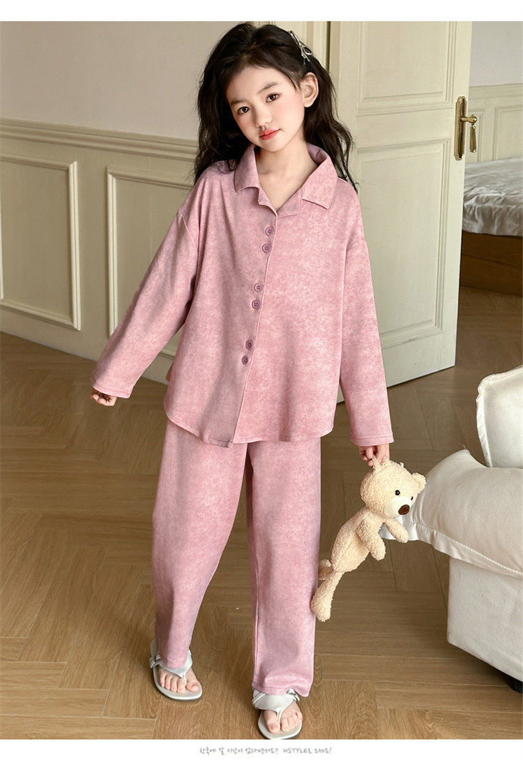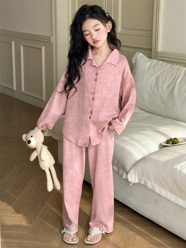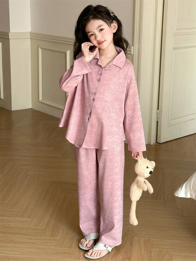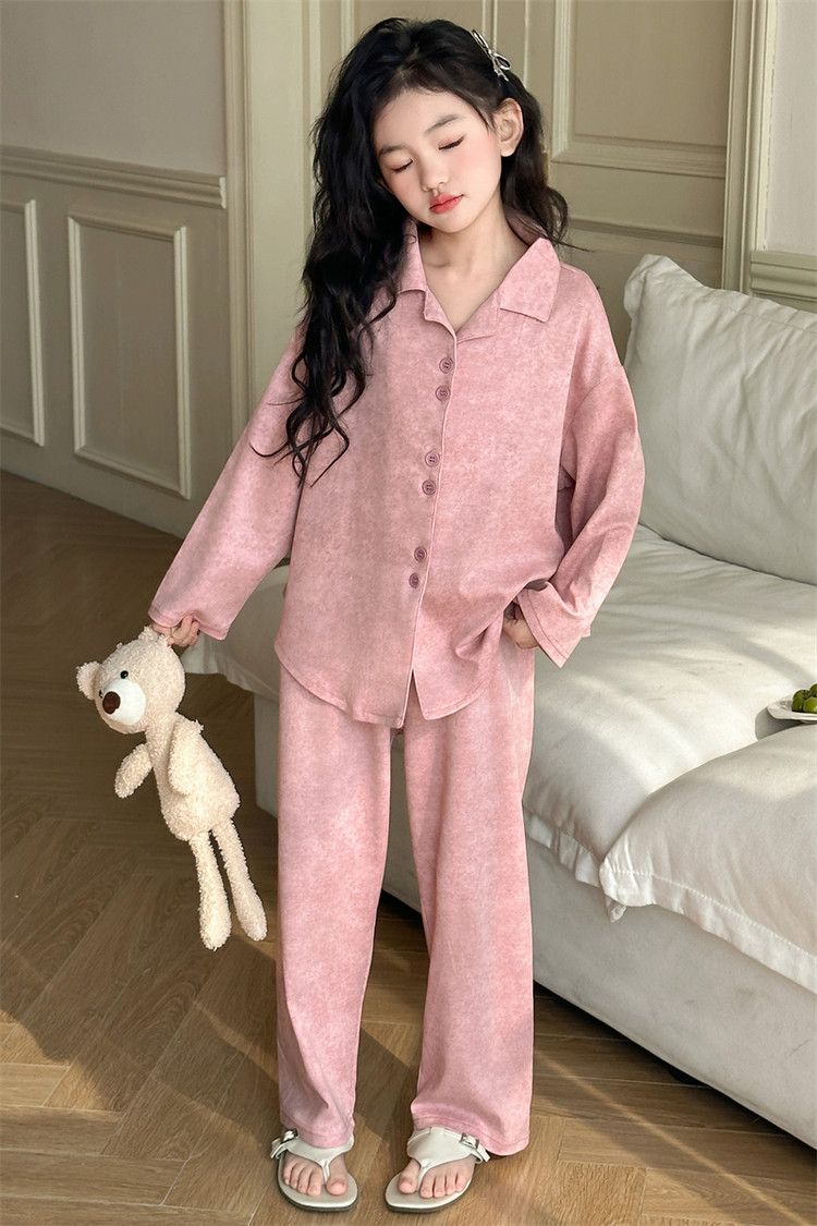 소녀 잠옷 세트 서양식 봄과 가을 소녀 달콤한 긴 소매 옷깃 카디건 홈 옷 투피스 세트