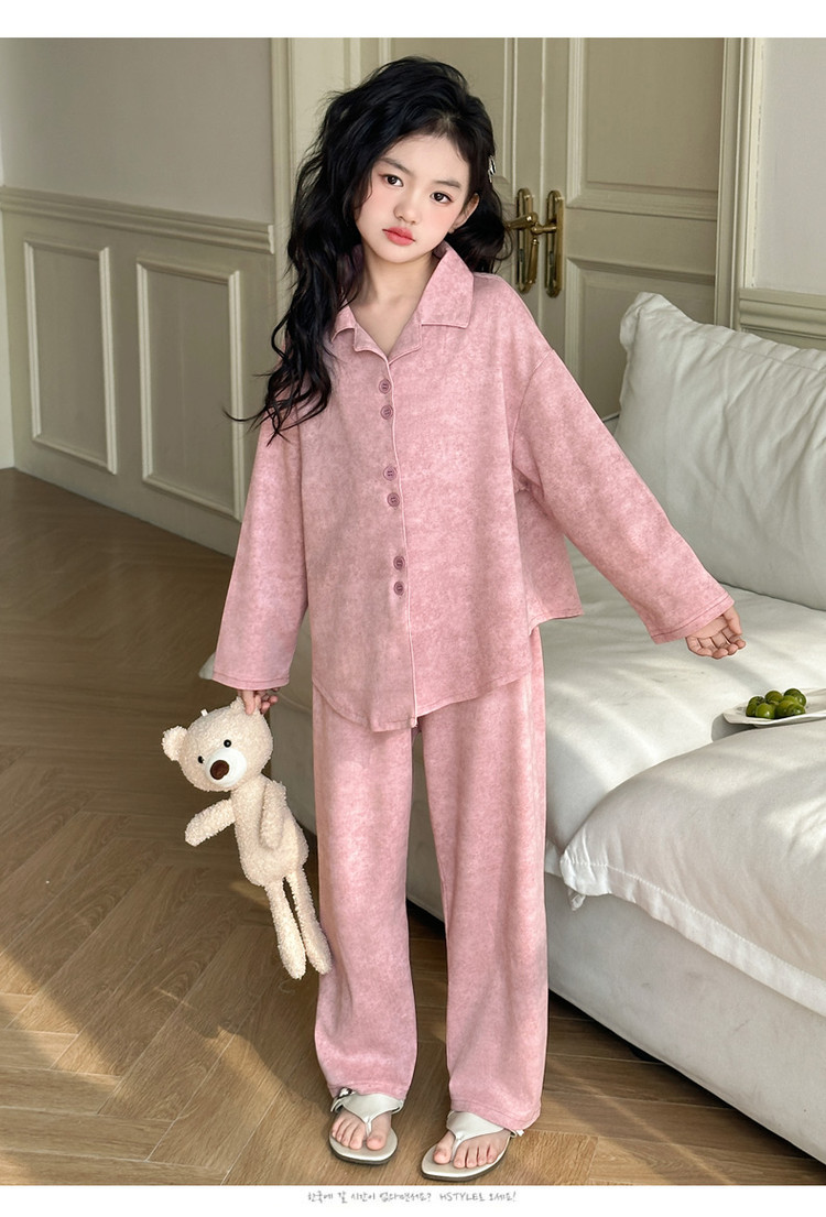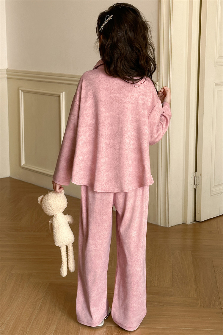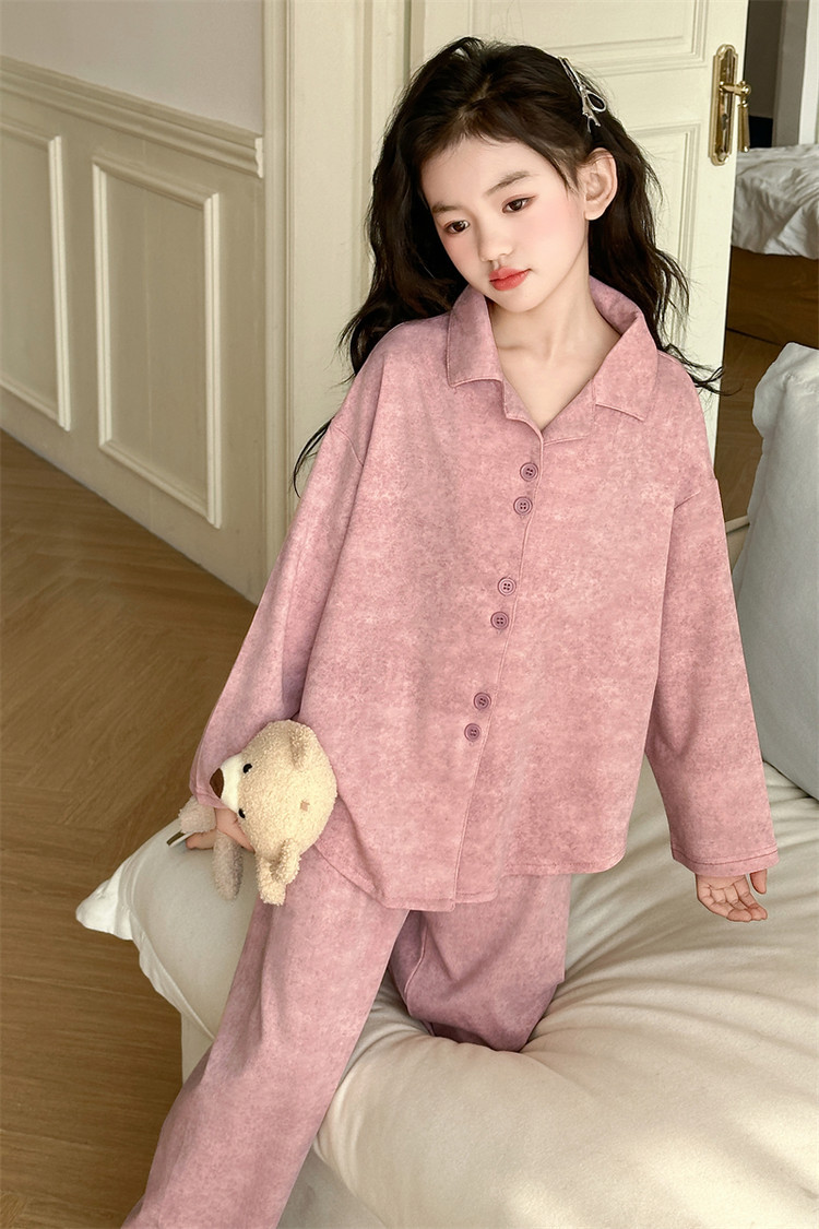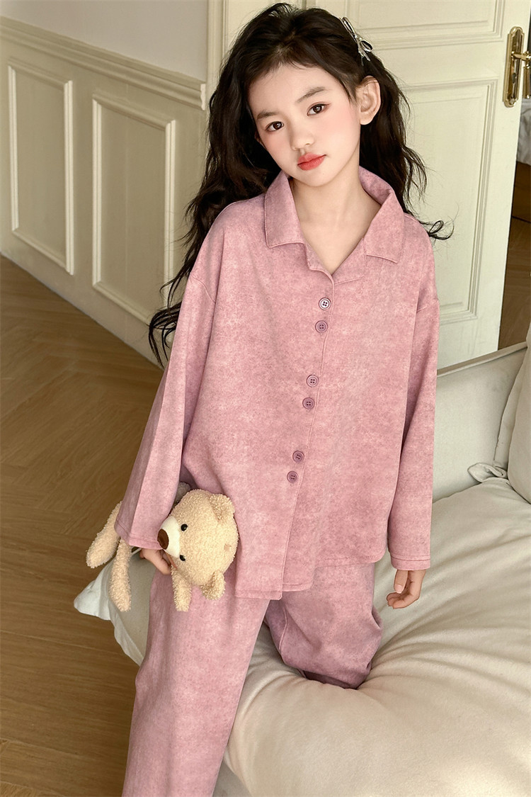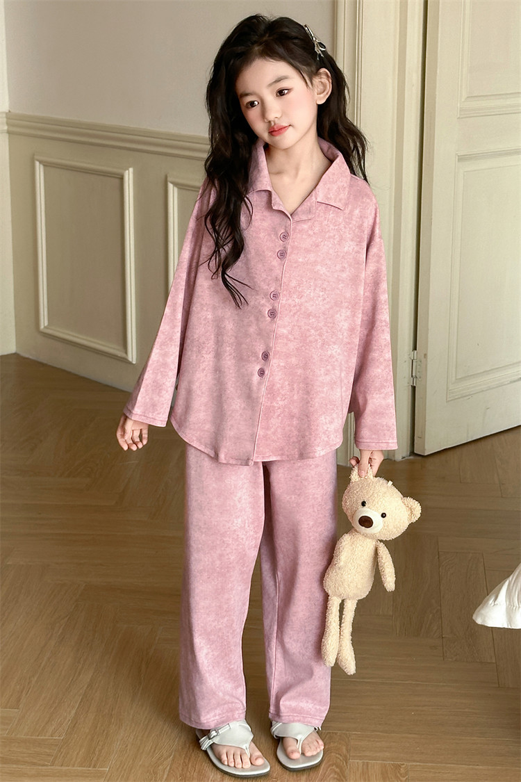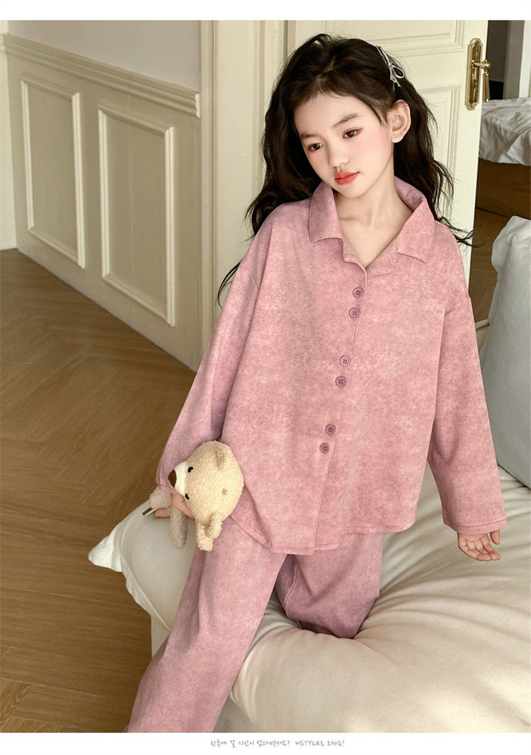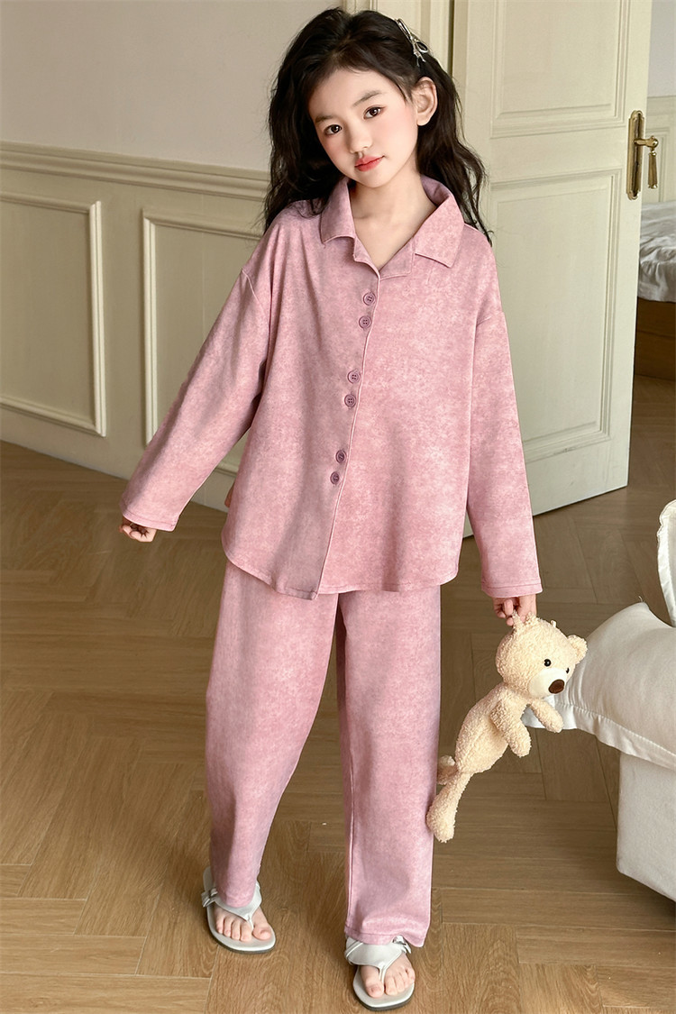 소녀 잠옷 세트 서양식 봄과 가을 소녀 달콤한 긴 소매 옷깃 카디건 홈 옷 투피스 세트