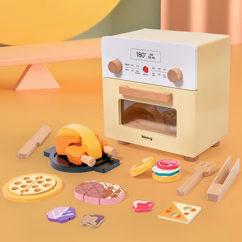 키부러니 가족 시뮬레이션 주방 나무 장난감 피자 오븐 작은 소년과 소녀 빵과 빵 절단 요리스토어 가기