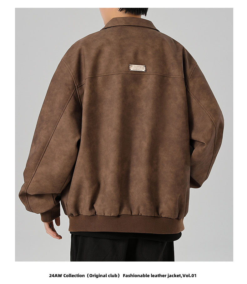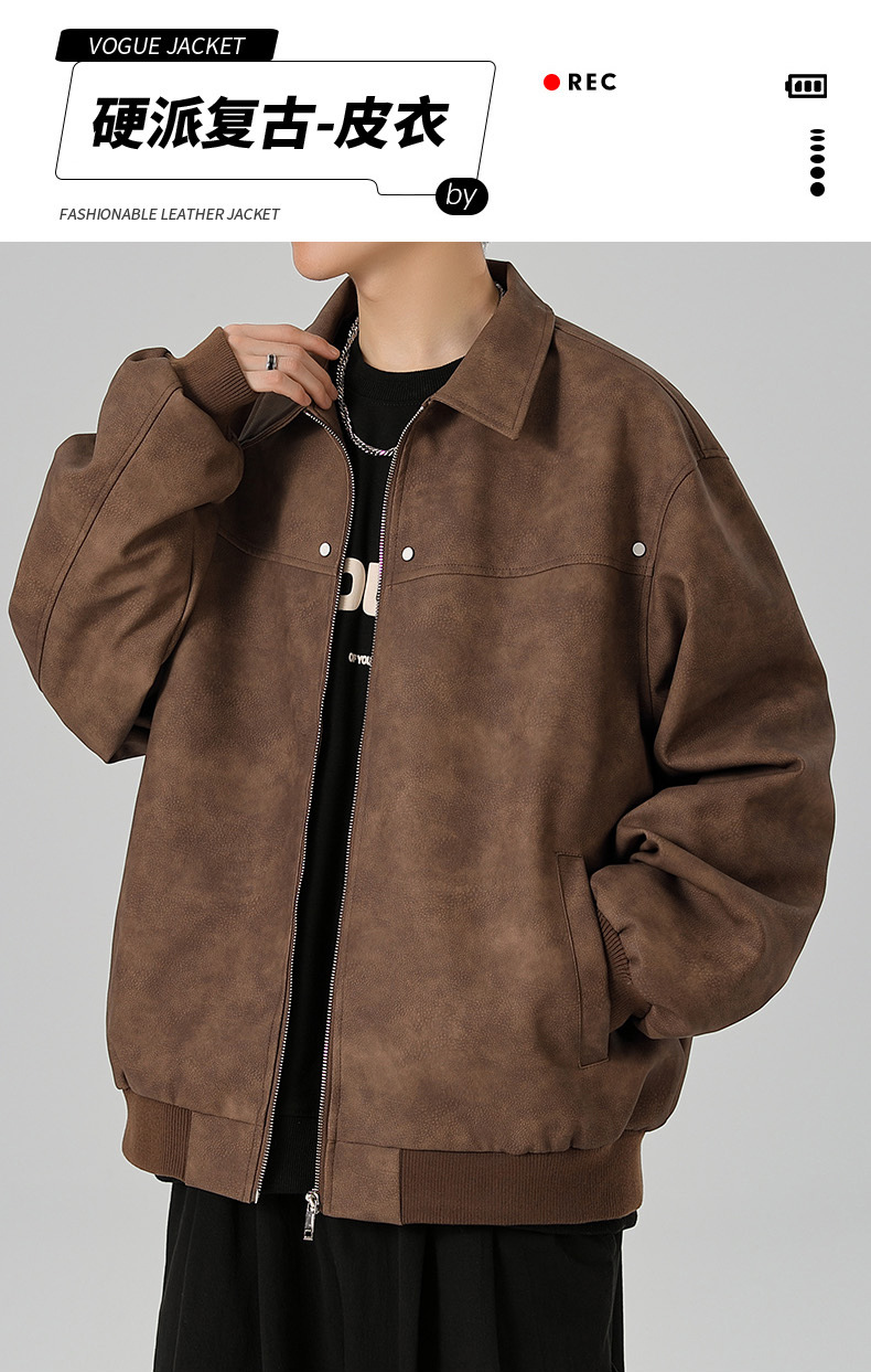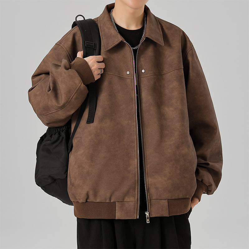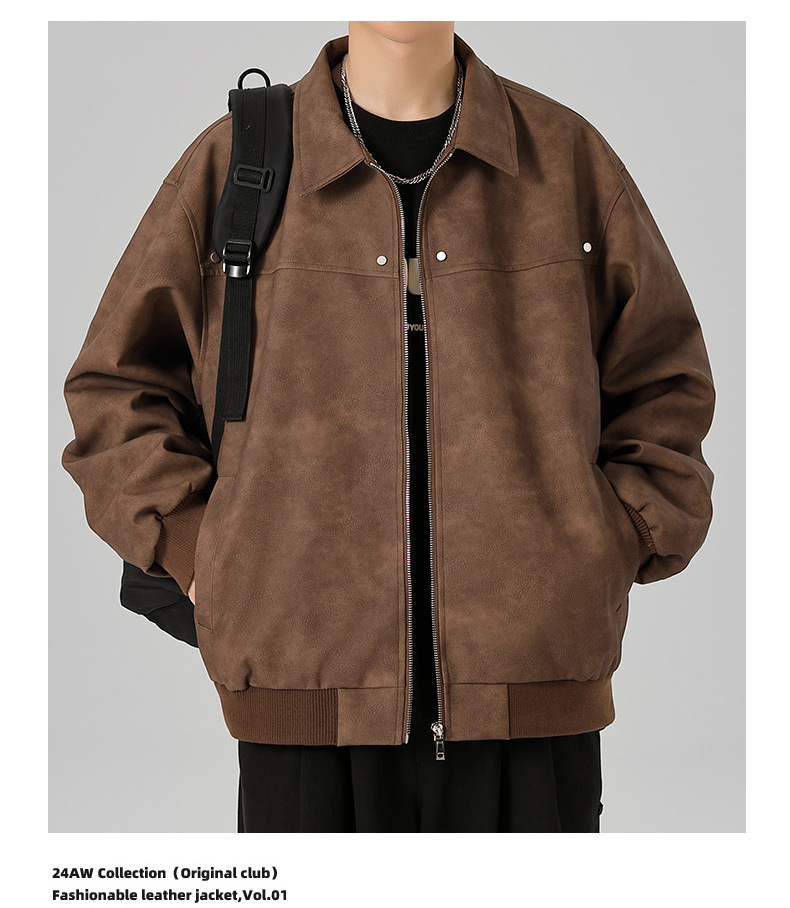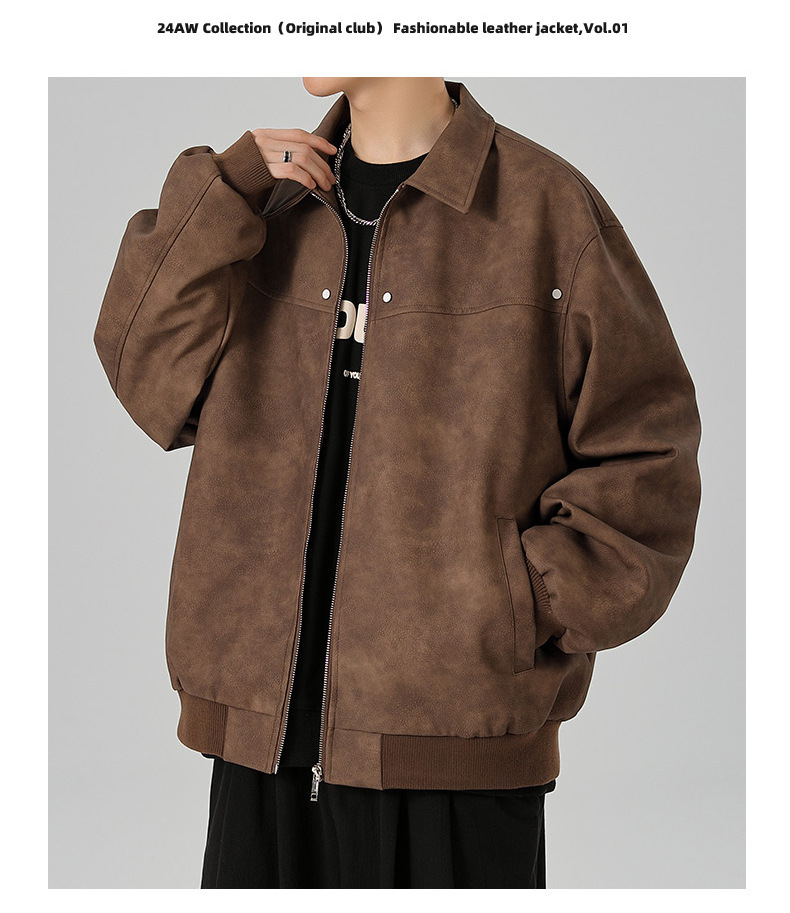 봄과 가을 아메리칸 스타일 레트로 다크 브라운 옷깃 가죽 자켓 남자 마일 라드 하이 엔드 스웨이드 커플 재킷 플러스 사이즈스토어 가기