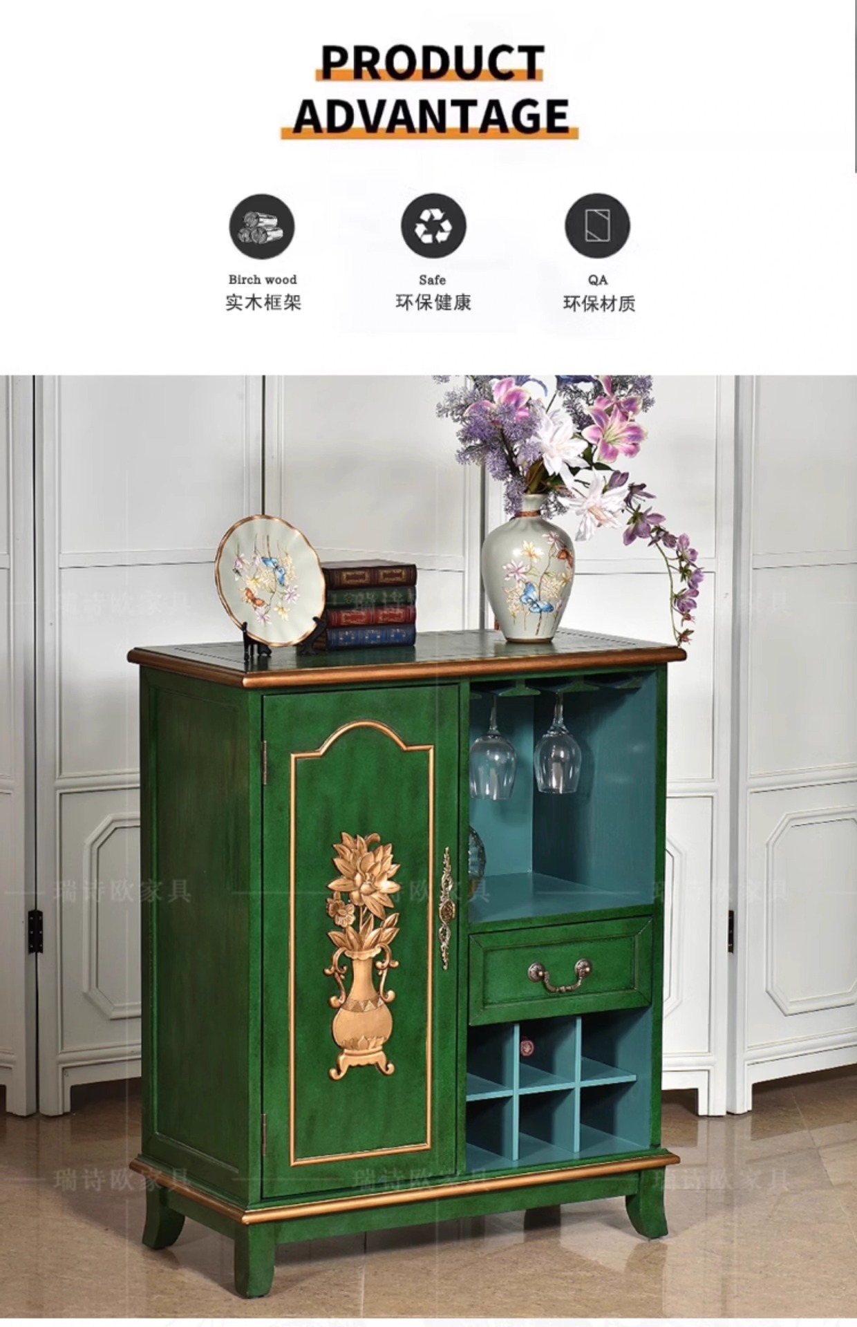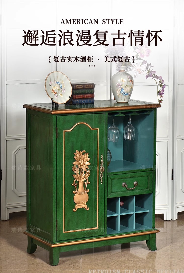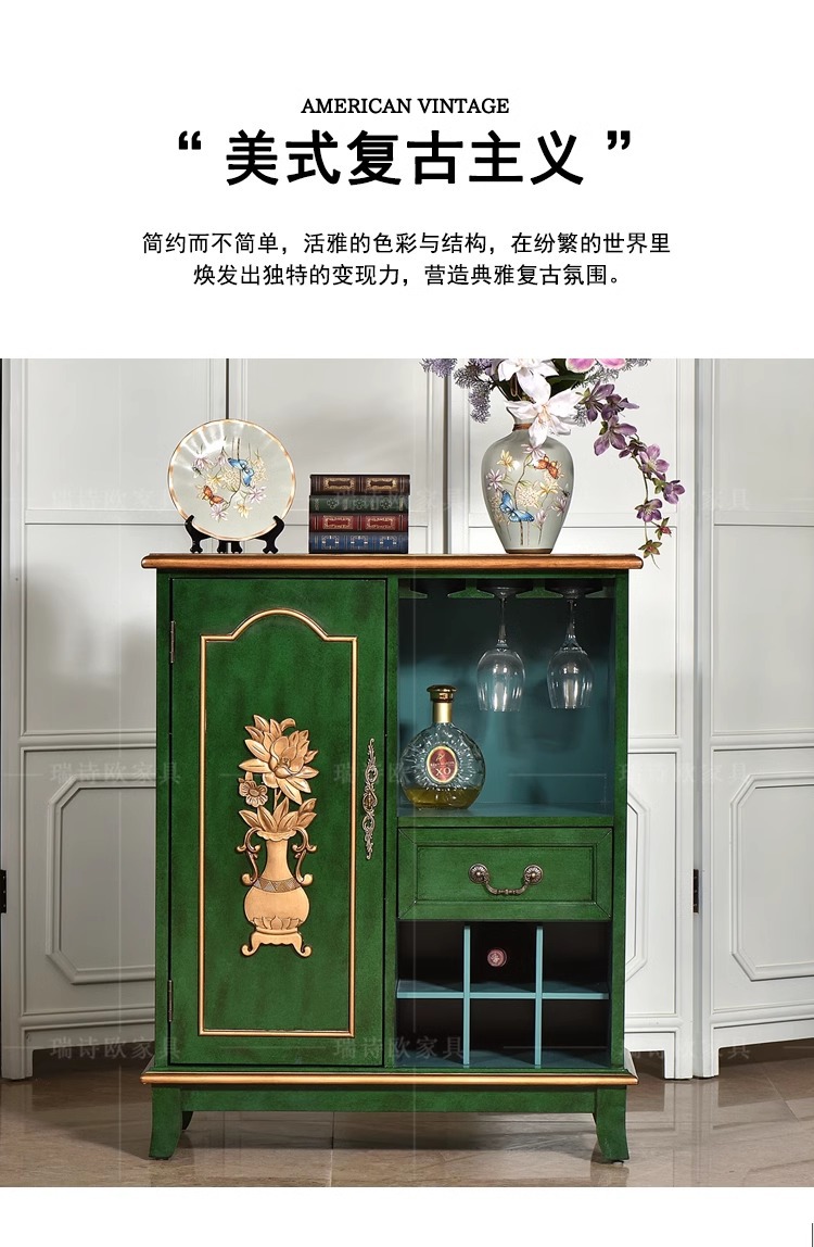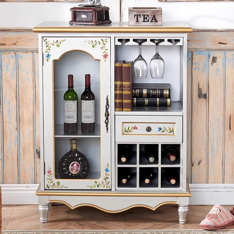 미국 스타일 컨트리 빈티지 사이드 보드 솔리드 우드 페인트 스토리지 통합 와인 캐비닛 티 캐비닛 캐비닛 소파 사이드 캐비닛스토어 가기