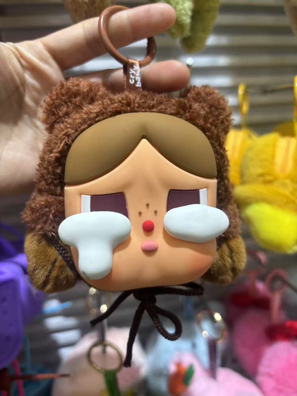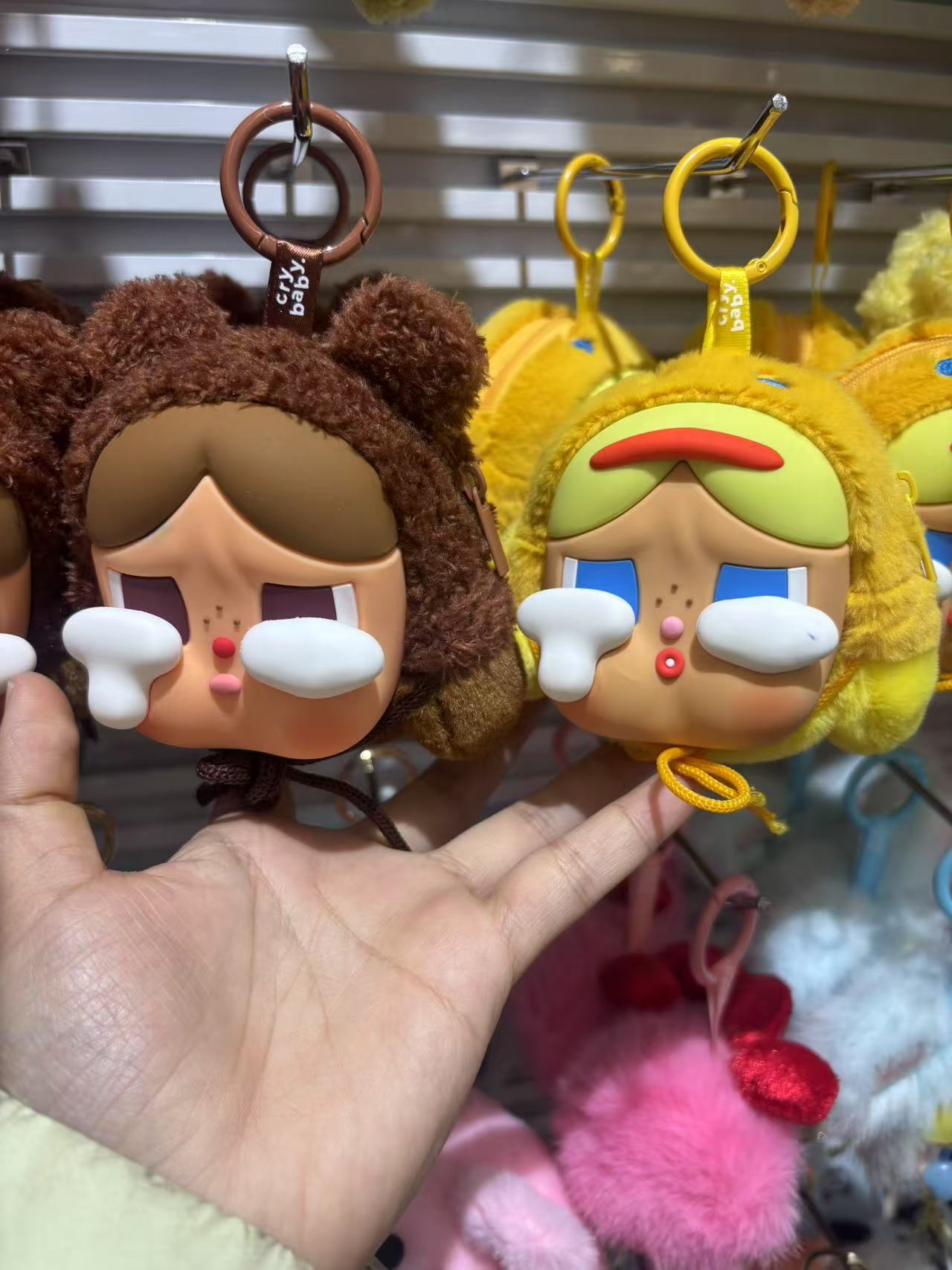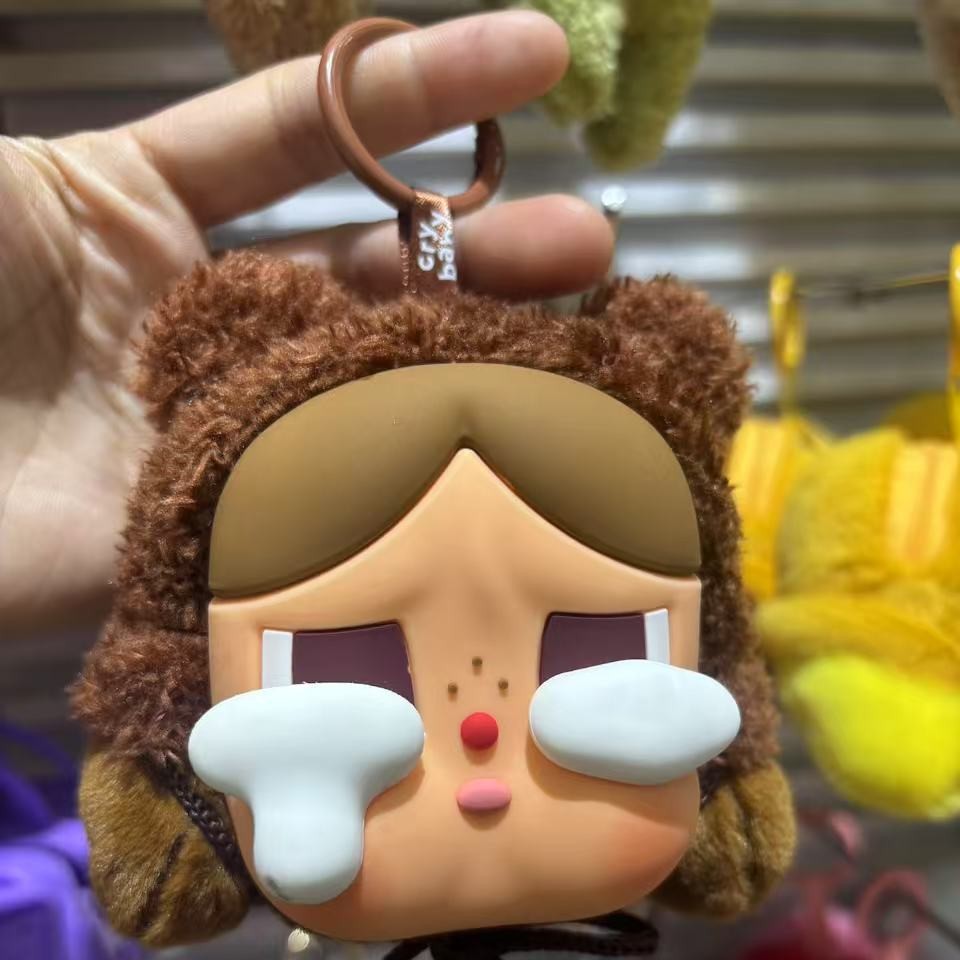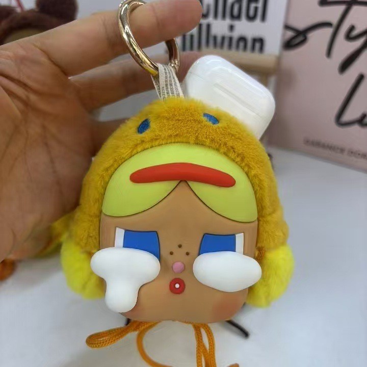 울고 있는 아기 인형 이어폰 가방, 비닐 얼굴 플러시 키체인, 인형 장식품, 차키 보관, 스트레스 해소, 귀여운스토어 가기